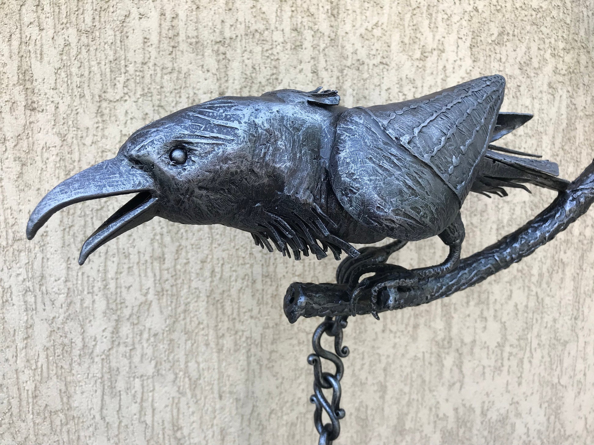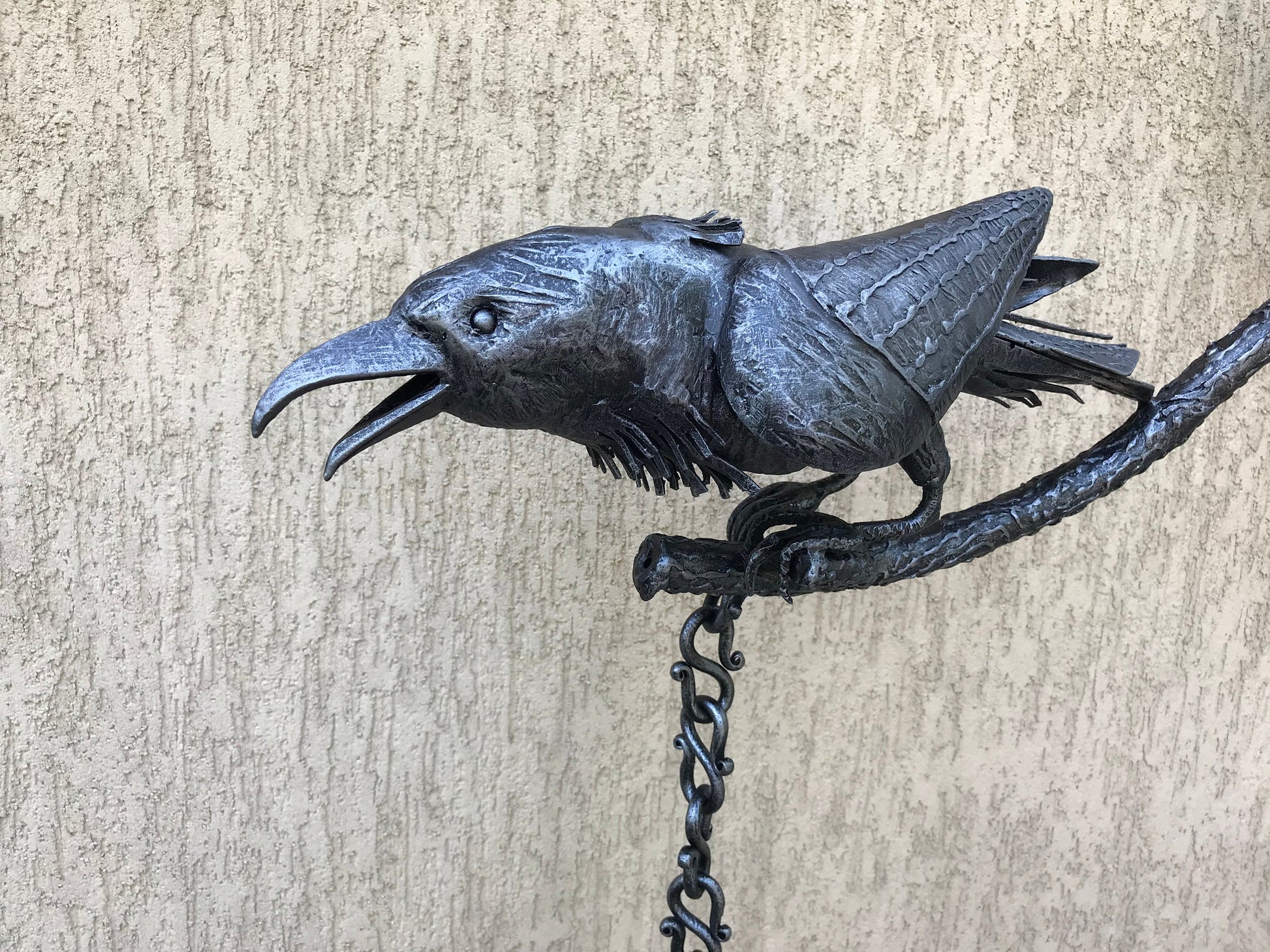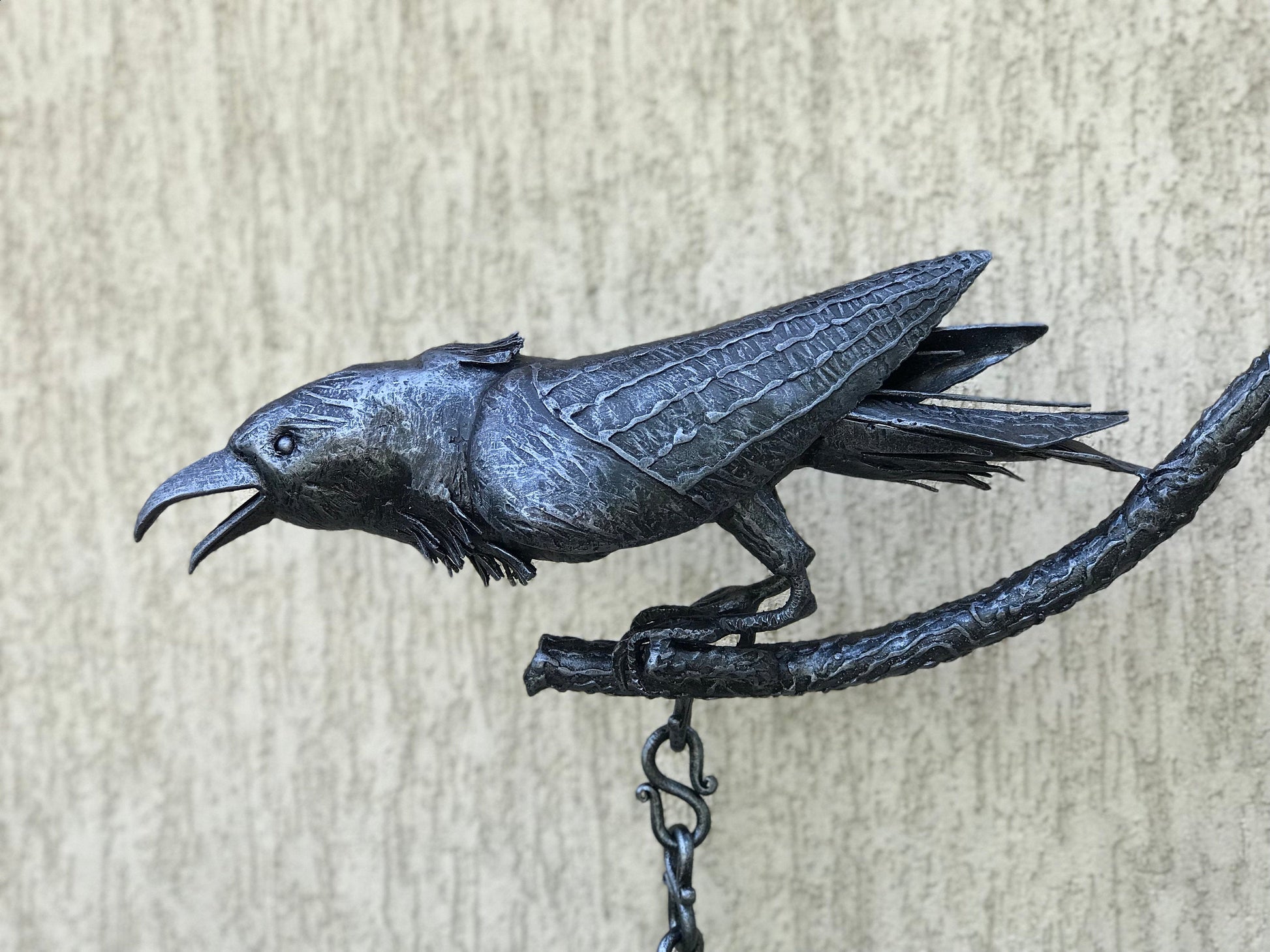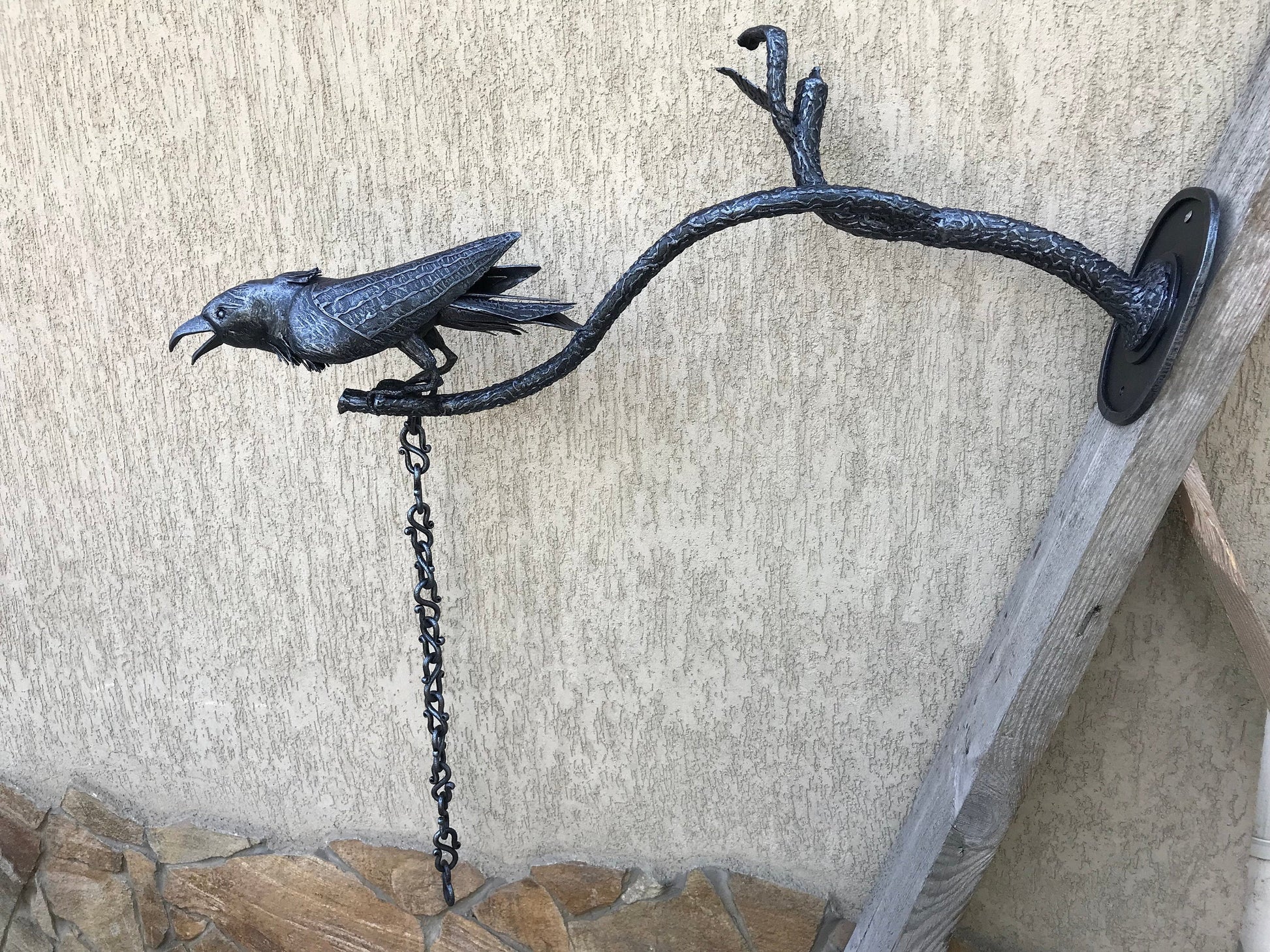 A wall lamp can be not a usual lamp but a masterpiece which can decorate your home and outlines the features of your home interior/exterior. Here is a hand forged hook for a lamp consisting of a branch, crow, chain. A crow keeps a chain by a talon. You can hang your beautiful lamp/sconce/candle holder on this decorstive chain with scrolls. You will not find anything similar to it. It is very decorative! It can serve as a support for your wall sconce. A branch has a nice surface texture (like a real bark). This branch with a nice chain and a bird creates a unique atmosphere of wild nature!