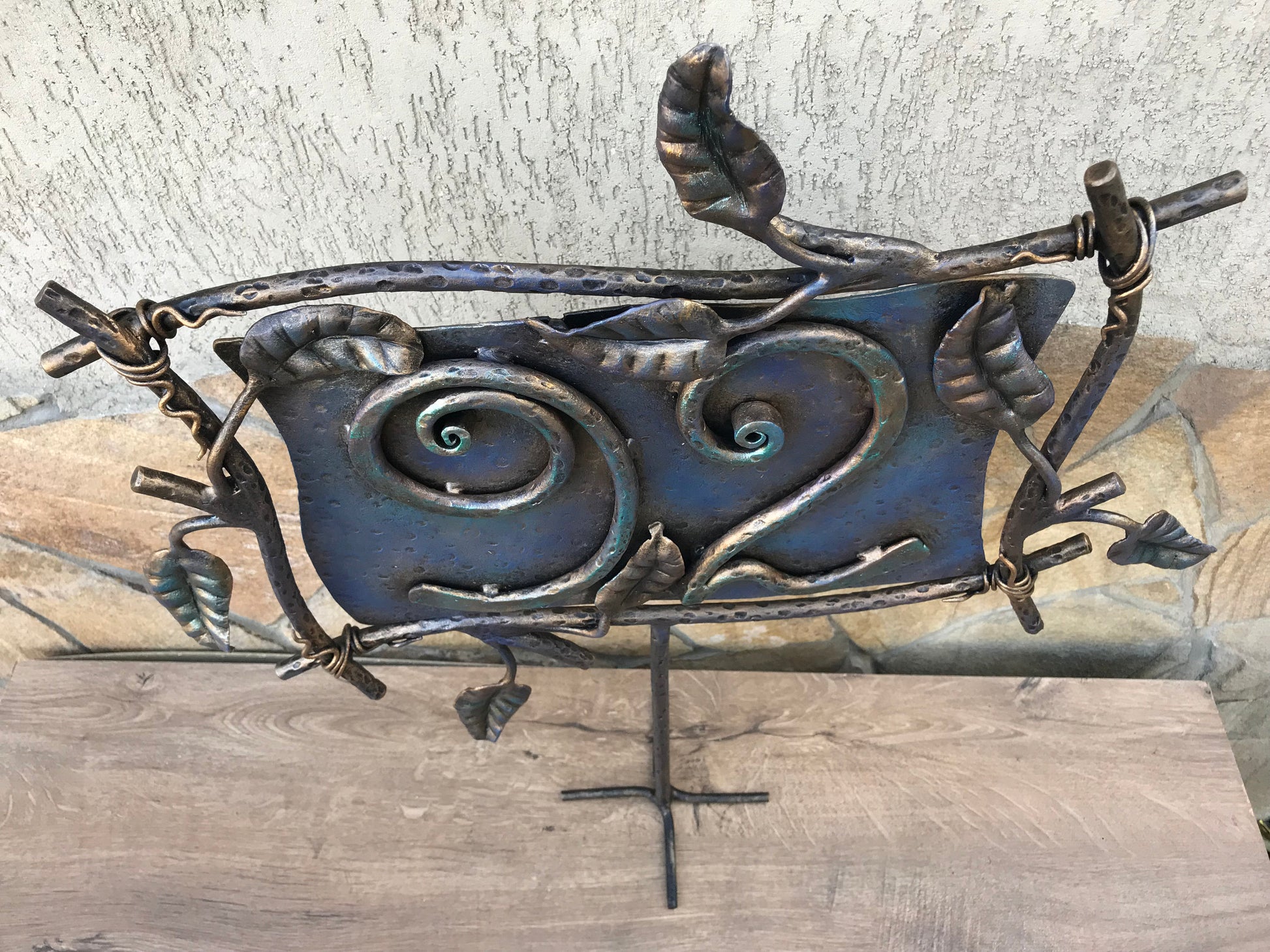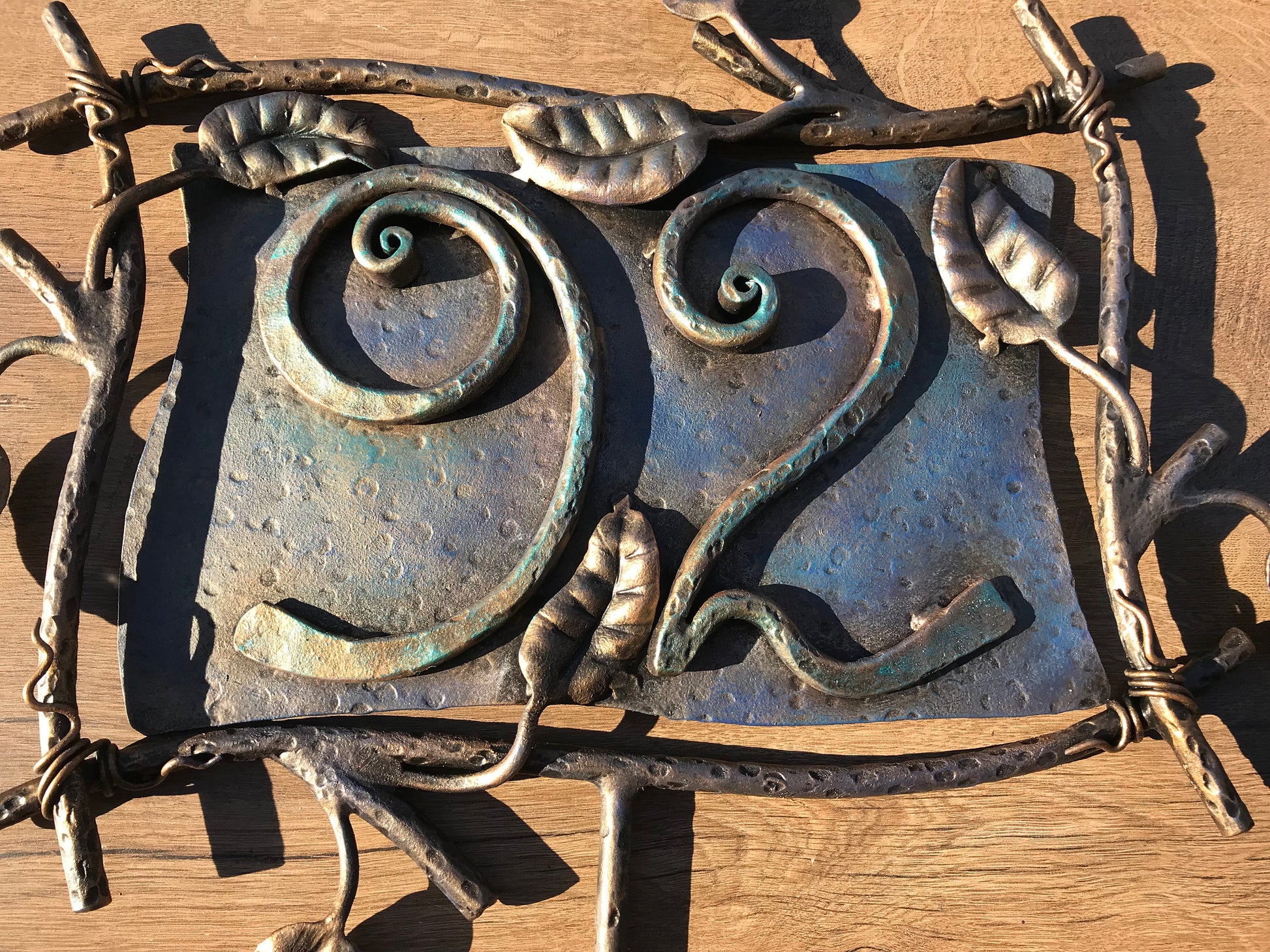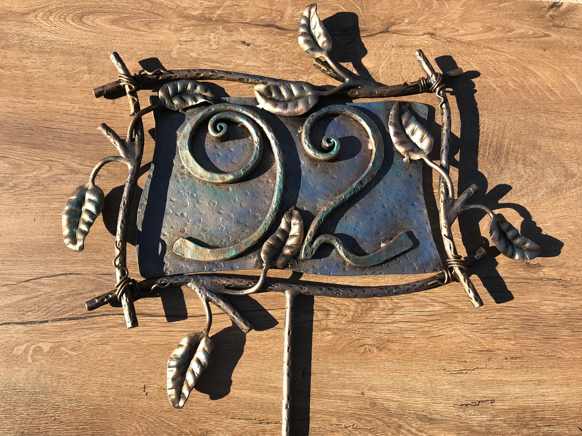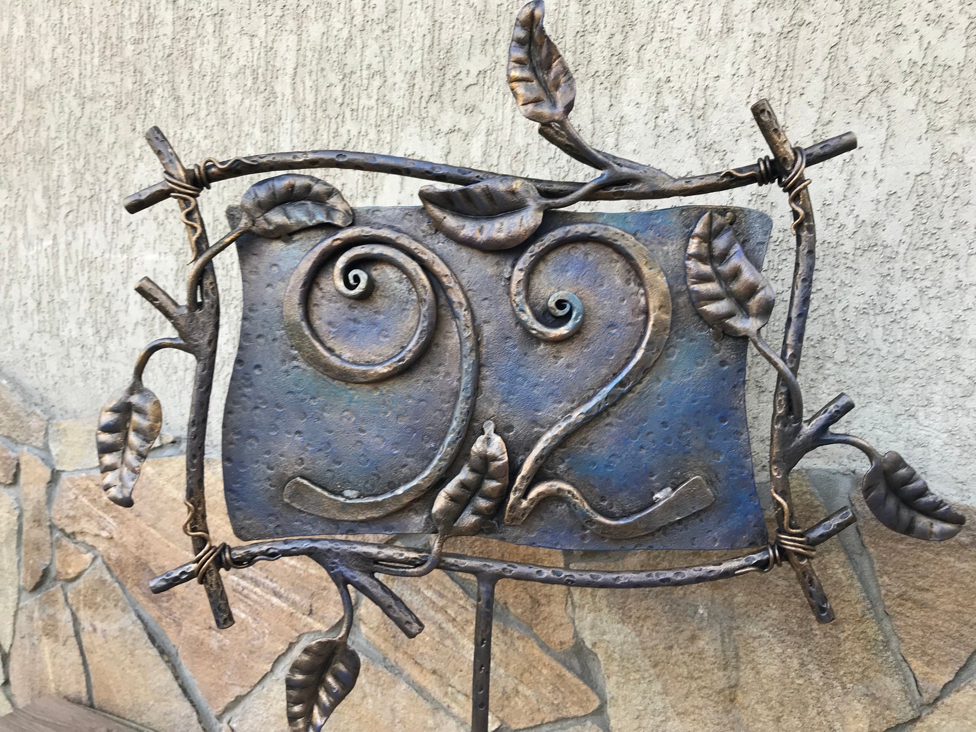 Here is a hand forged house number sign which gives much more beauty to your house and outlines its the exterior features. It is done in a view of rustic style. Numbers are nicely forged! It is handmade, art forged.
