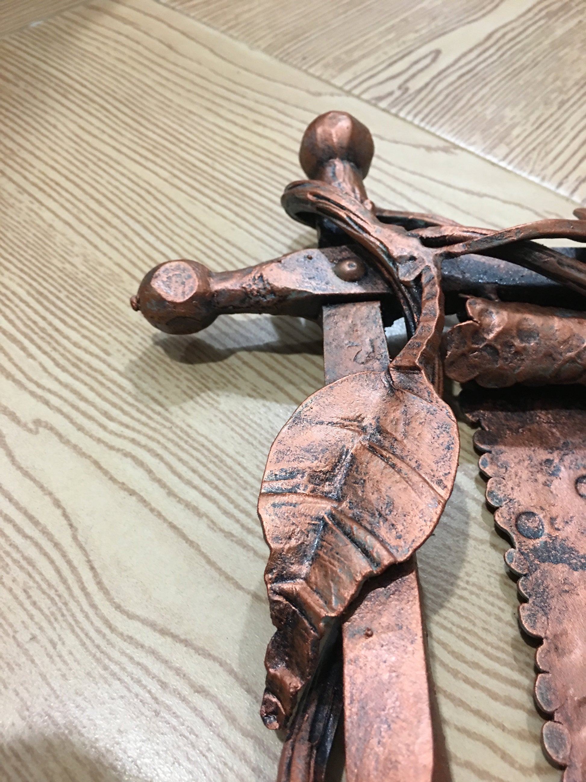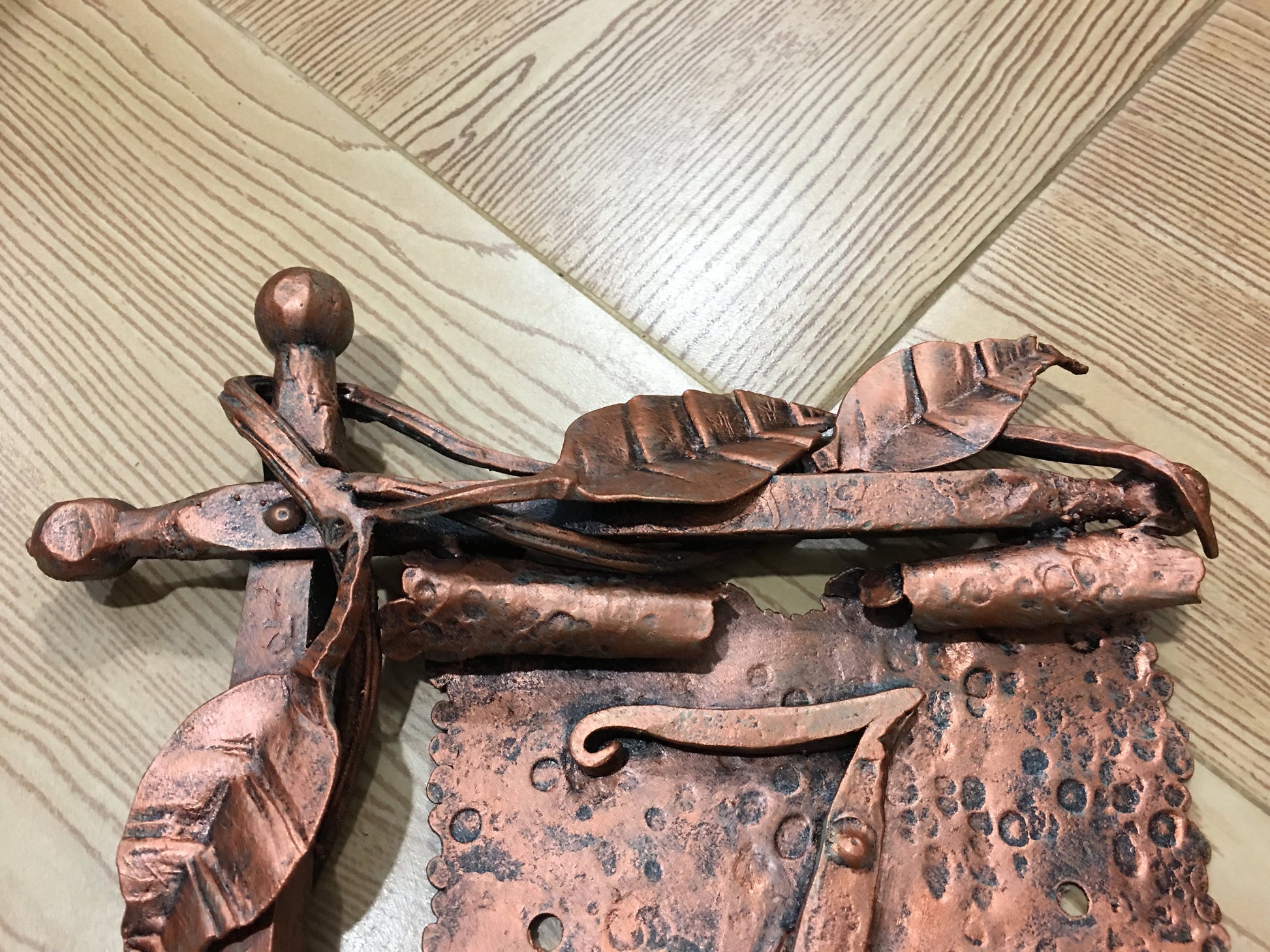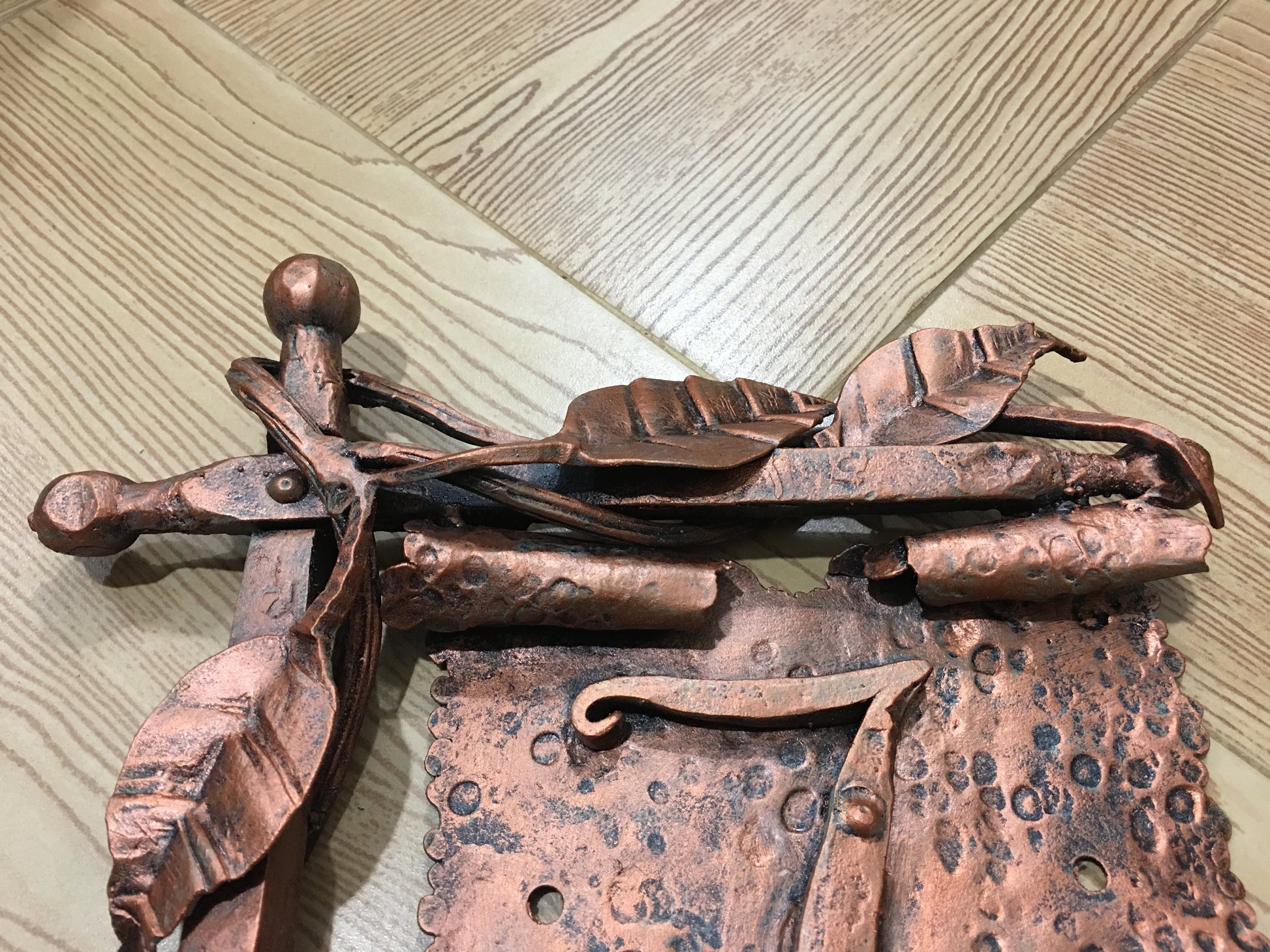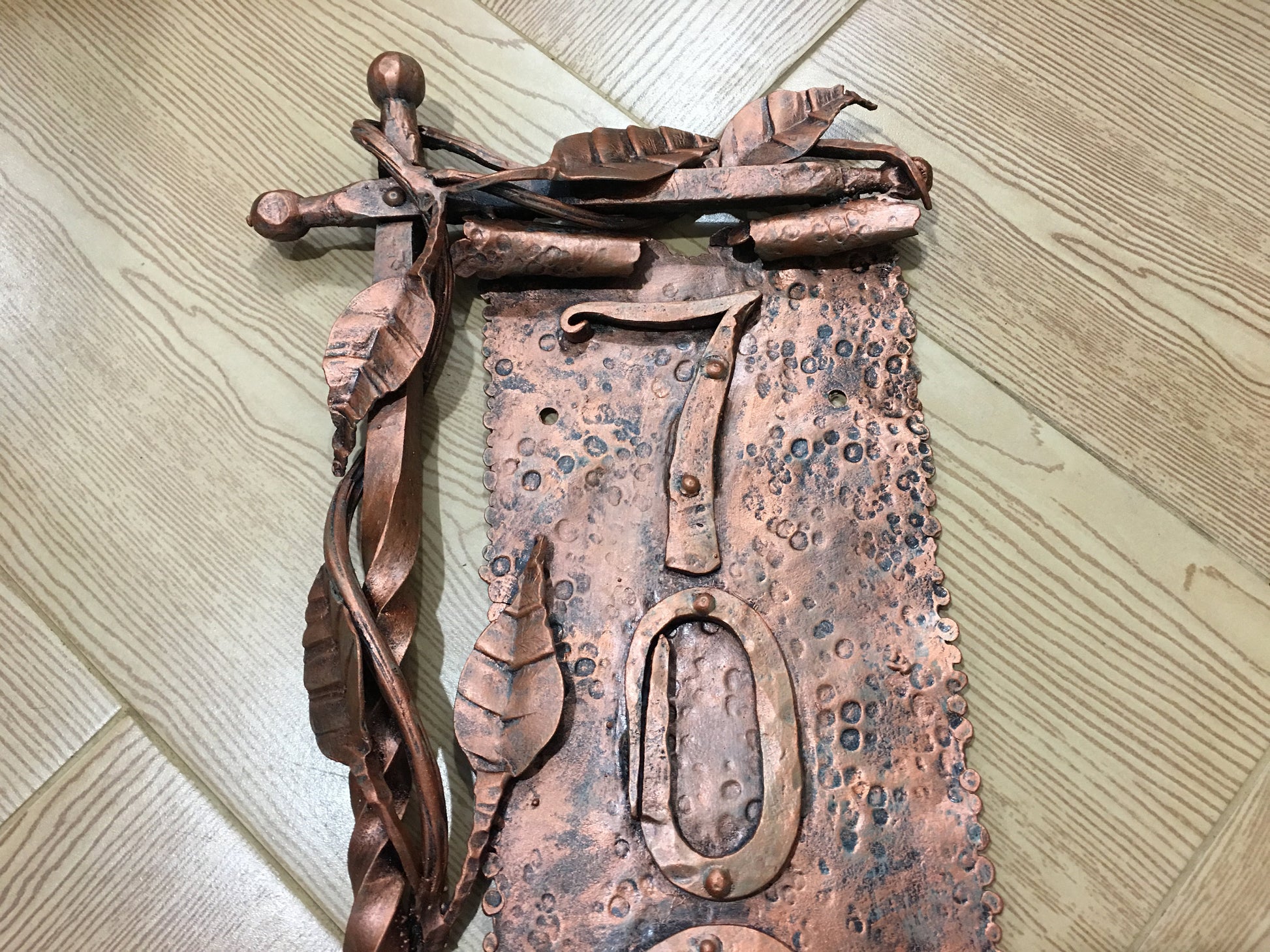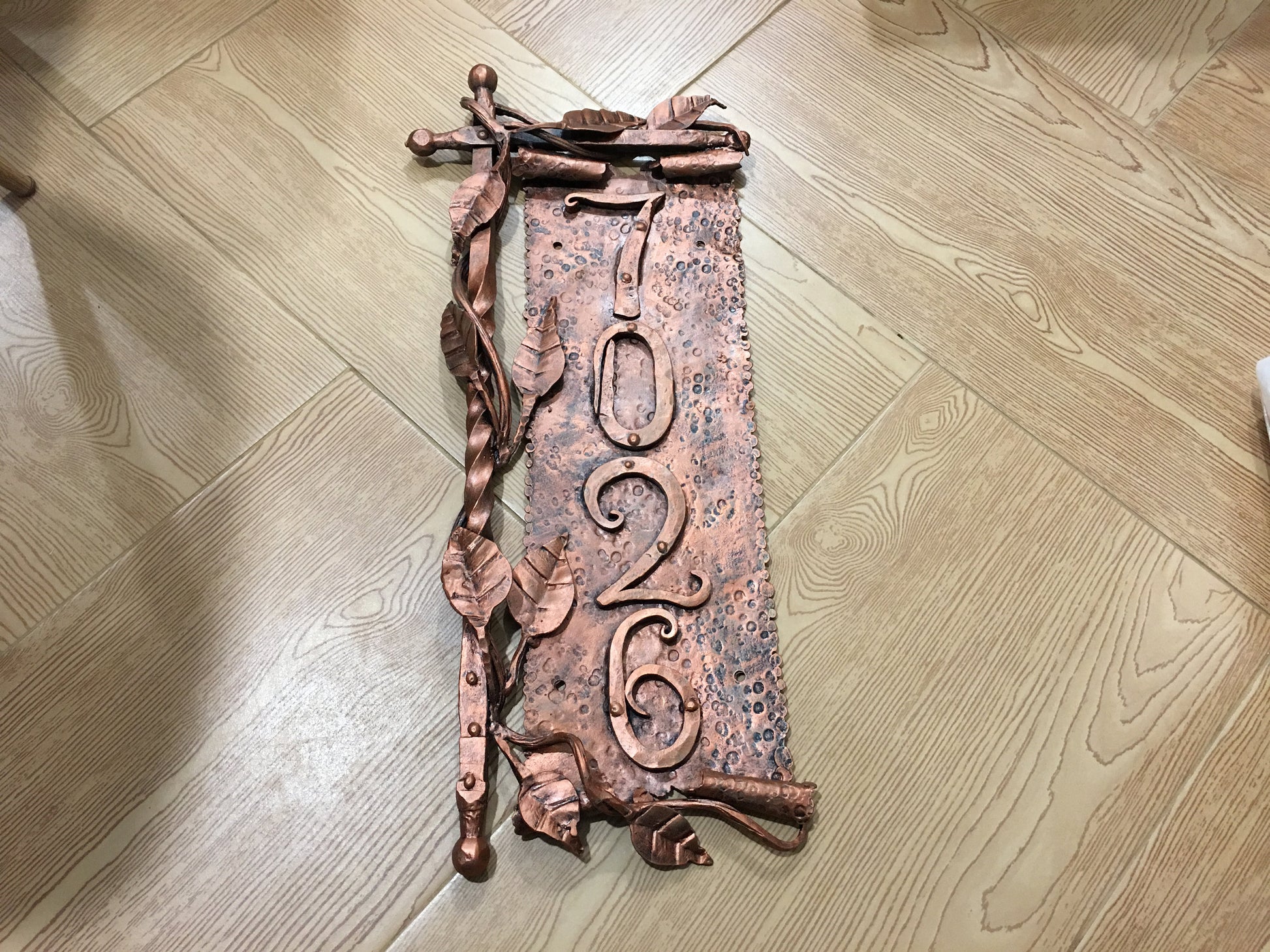 Here is a hand forged house number sign which gives much more beauty to your house and outlines its the exterior features. It is done in a view of a scroll with a branch. Numbers are nicely forged! It is handmade, art forged.
