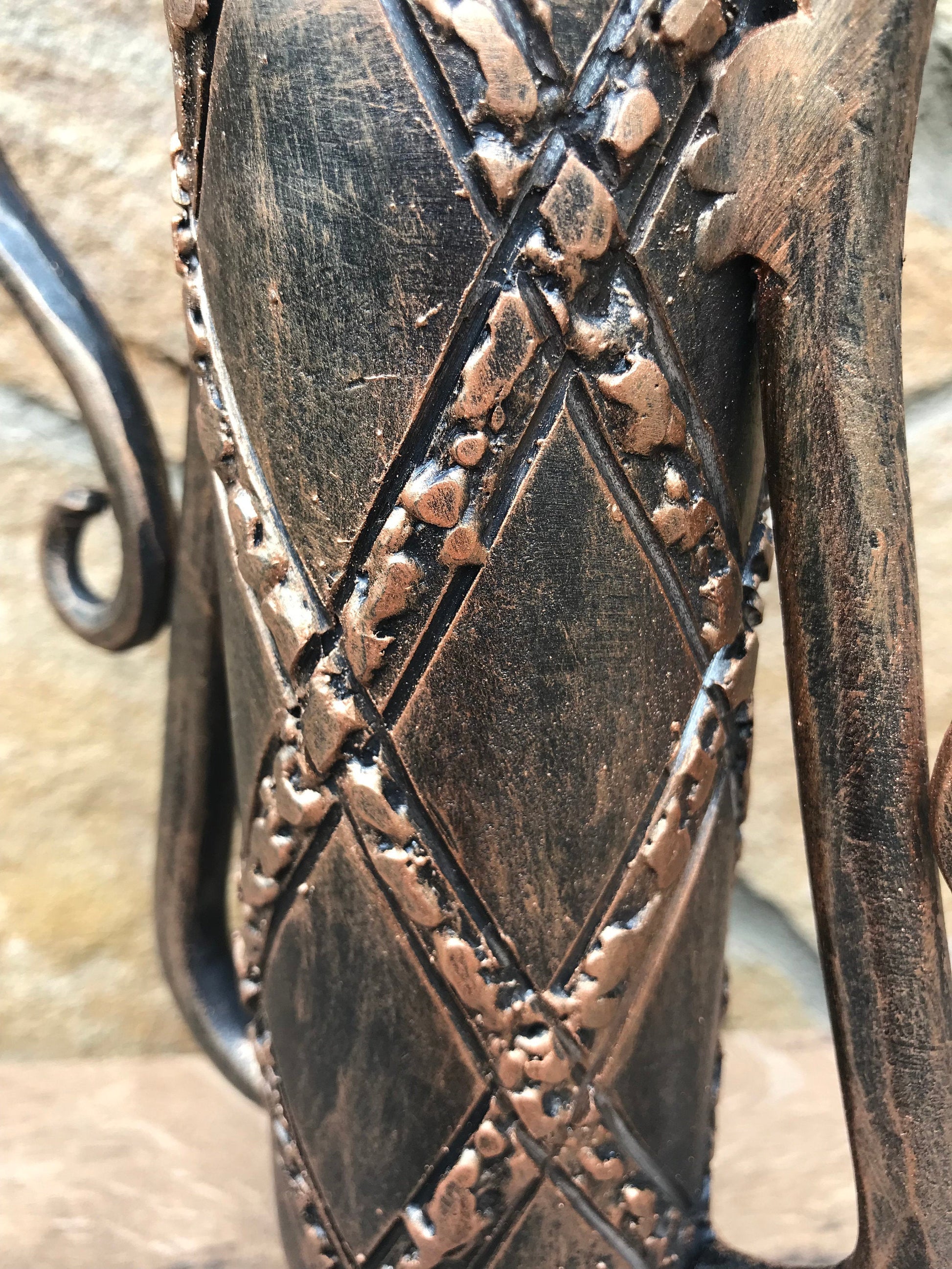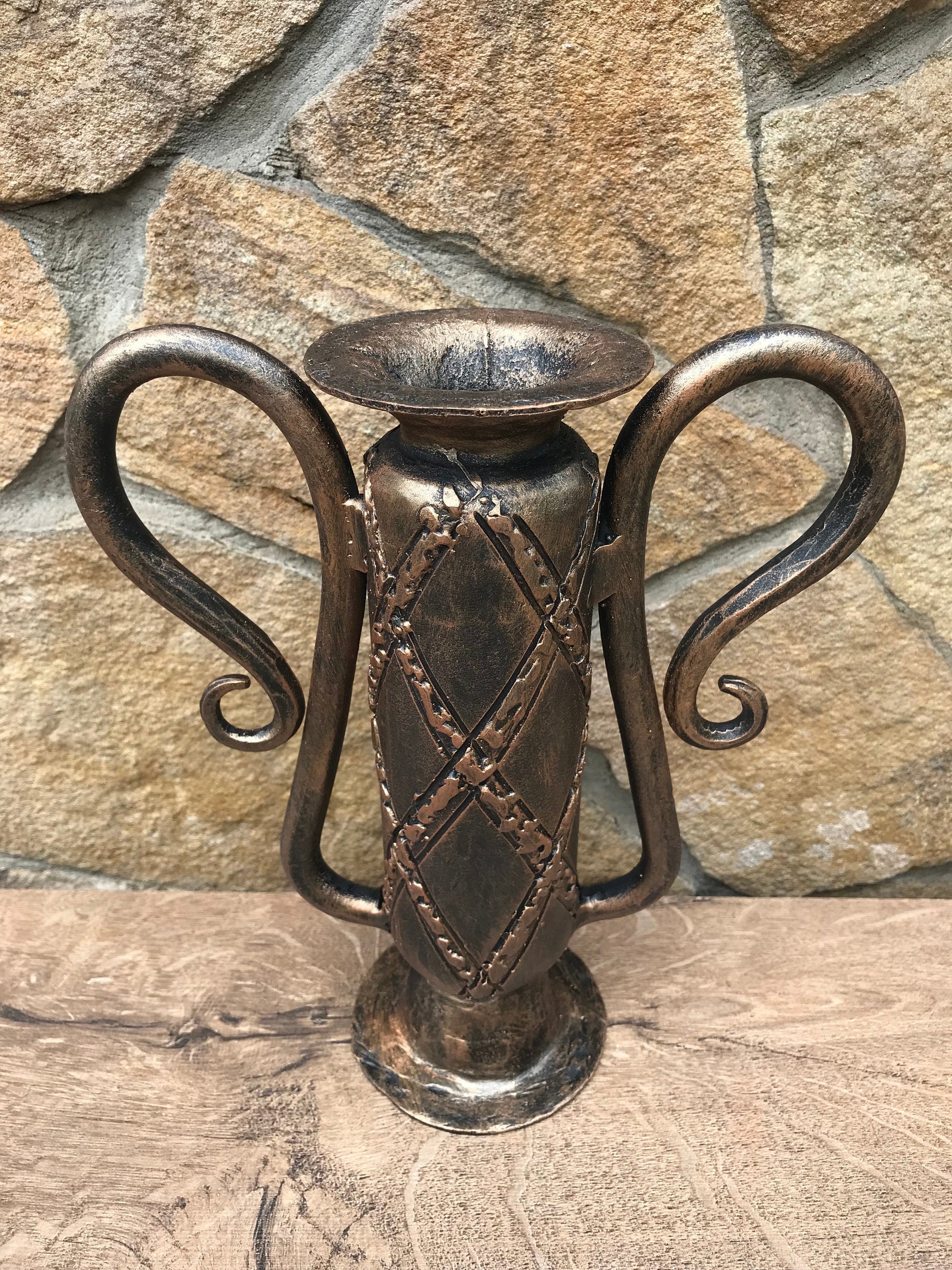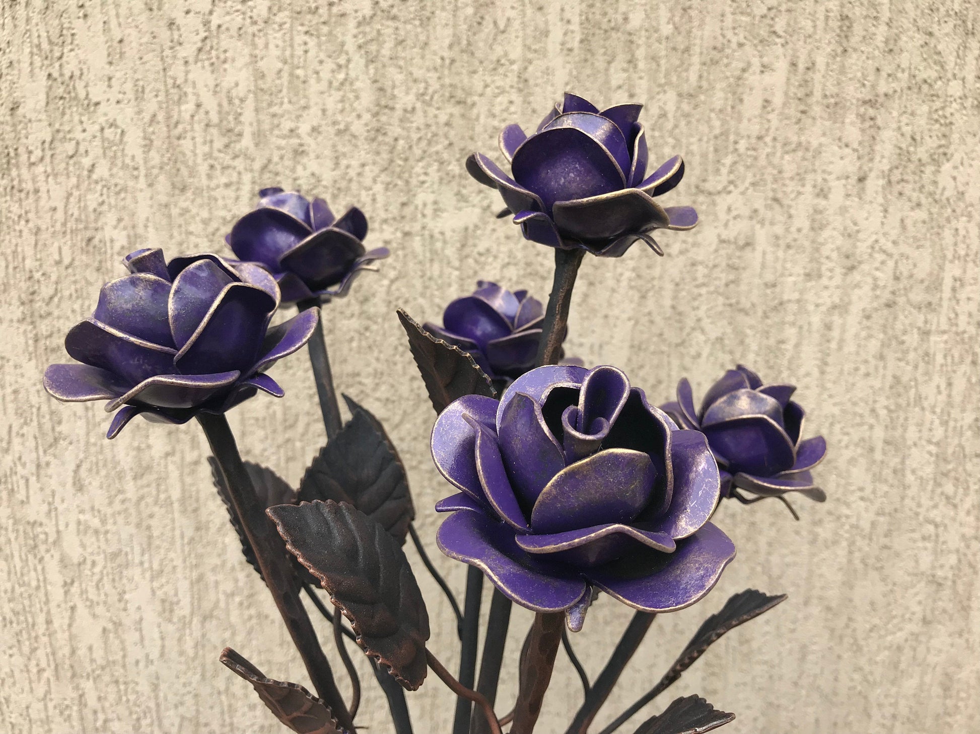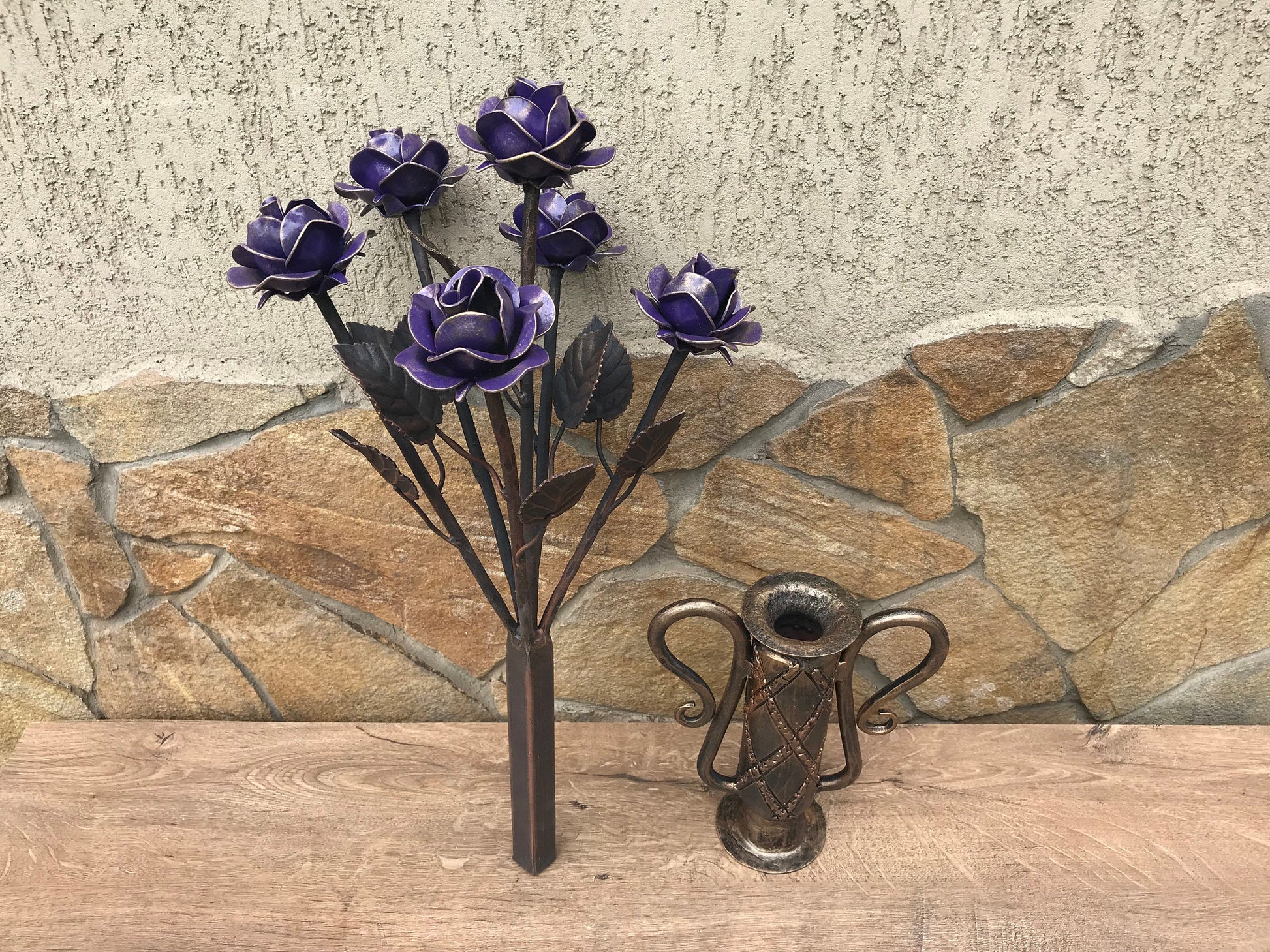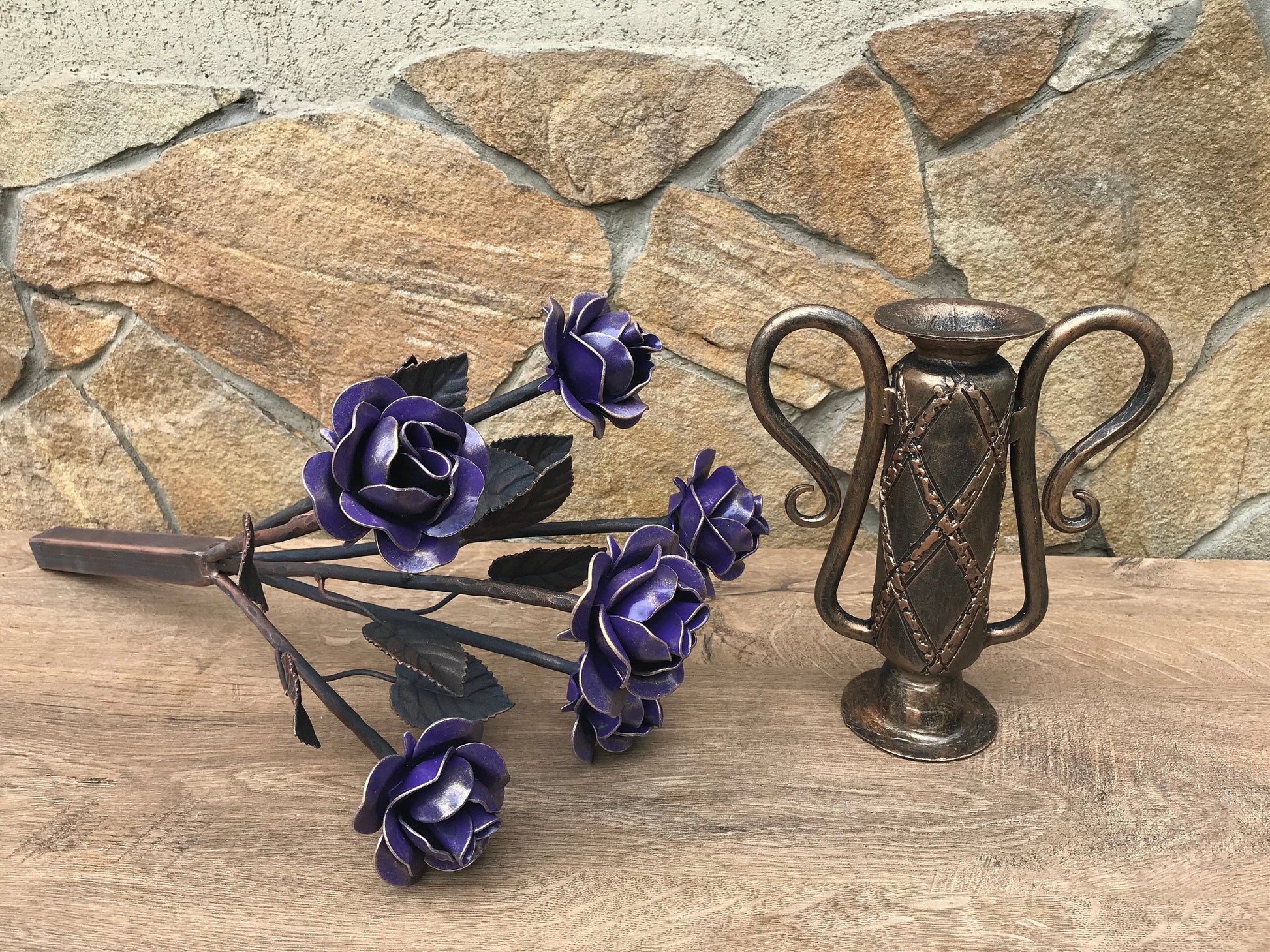 Birthday gift? Or just a home decor? Here is a forged metal bouquet with 6 purple roses in a vase which could be a nice gift for your girl friend/woman/wife. It looks very festive and decorative!