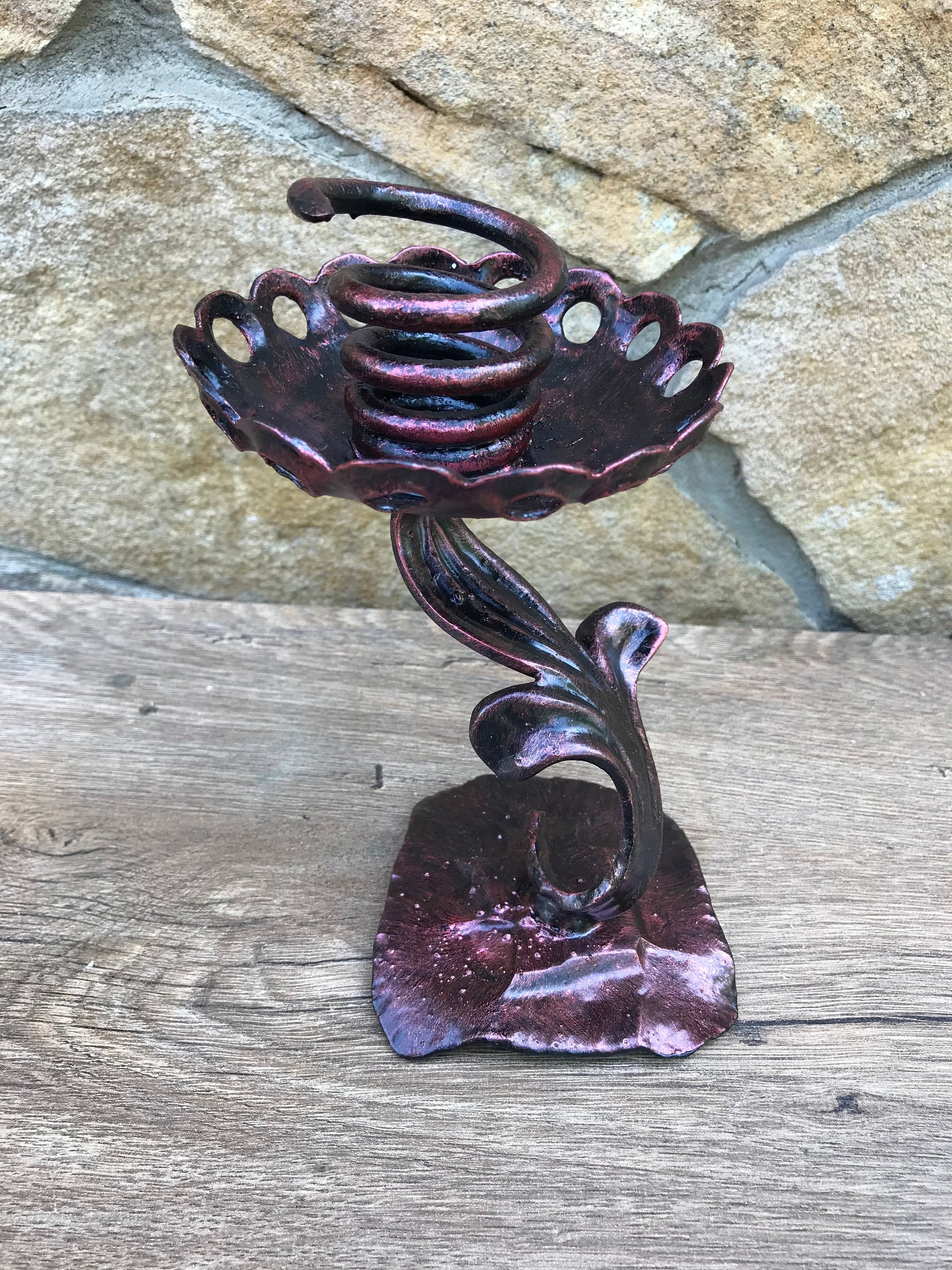 Are you looking for a nice wedding anniversary gift? Valentine's day gift? Wedding gift? Or just a home decor? Here is a forged metal candle holder which could be a nice gift for your girlfreind /woman/wife. It looks very festive and decorative! It deserves to be a cool gift! It is a functional piece of art!