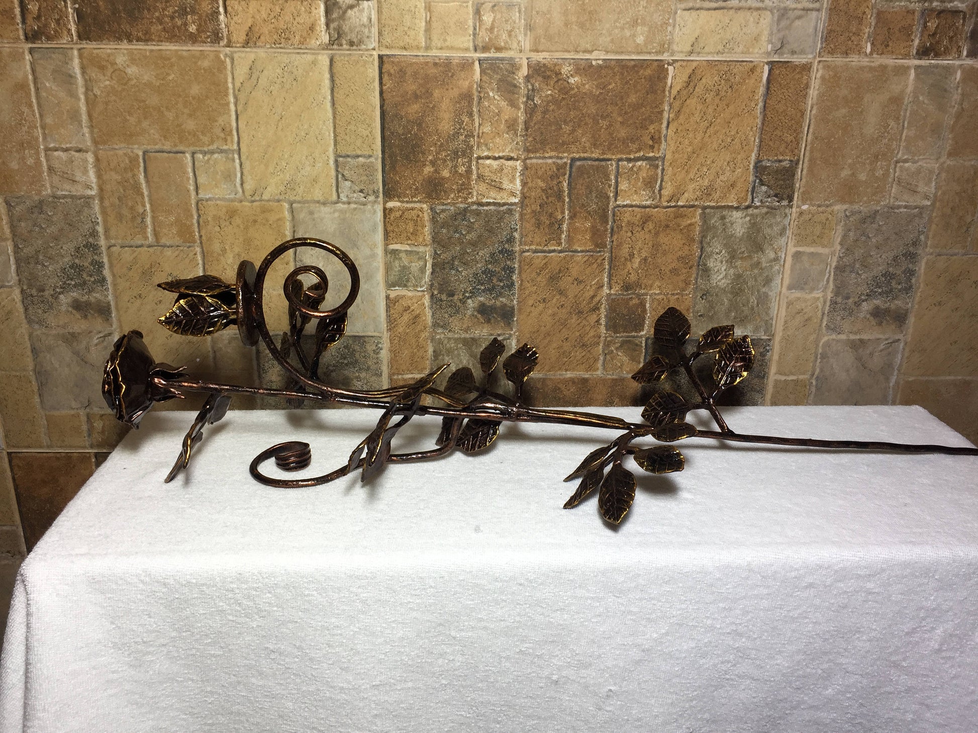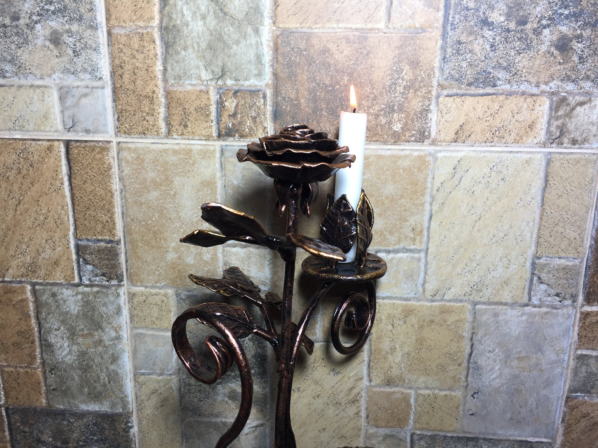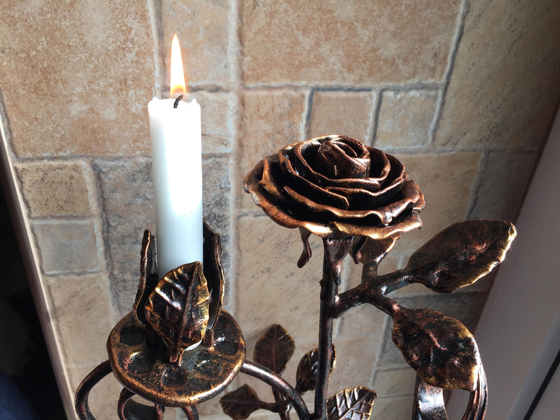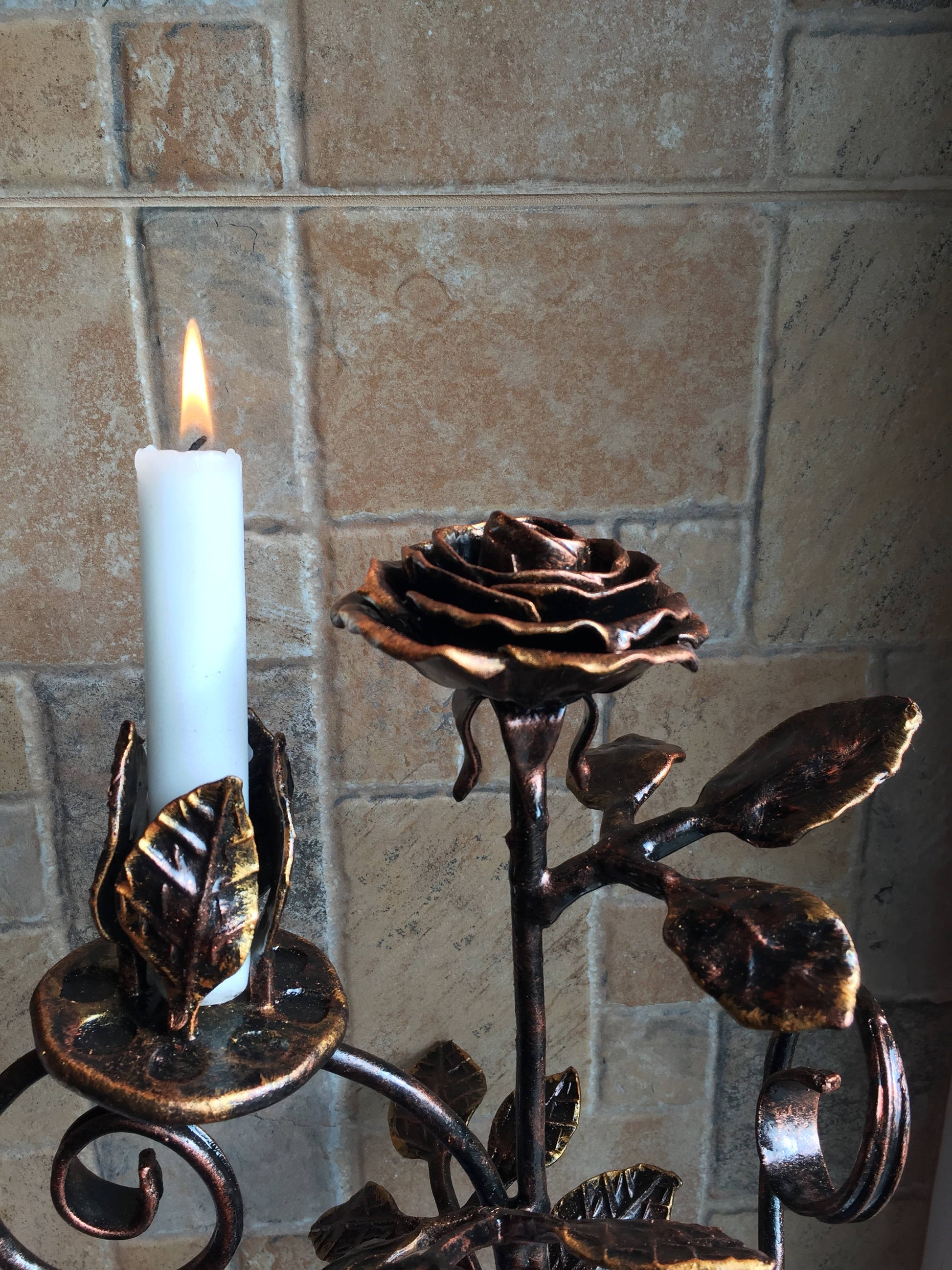 Are you looking for a nice wedding anniversary gift? Valentine's day gift? Wedding gift? Or just a home decor? Here is a forged metal rose with a candle holder which could be a nice gift for your girl/woman. It looks very festive and decorative! It deserves to be a cool gift! It is a functional piece of art!