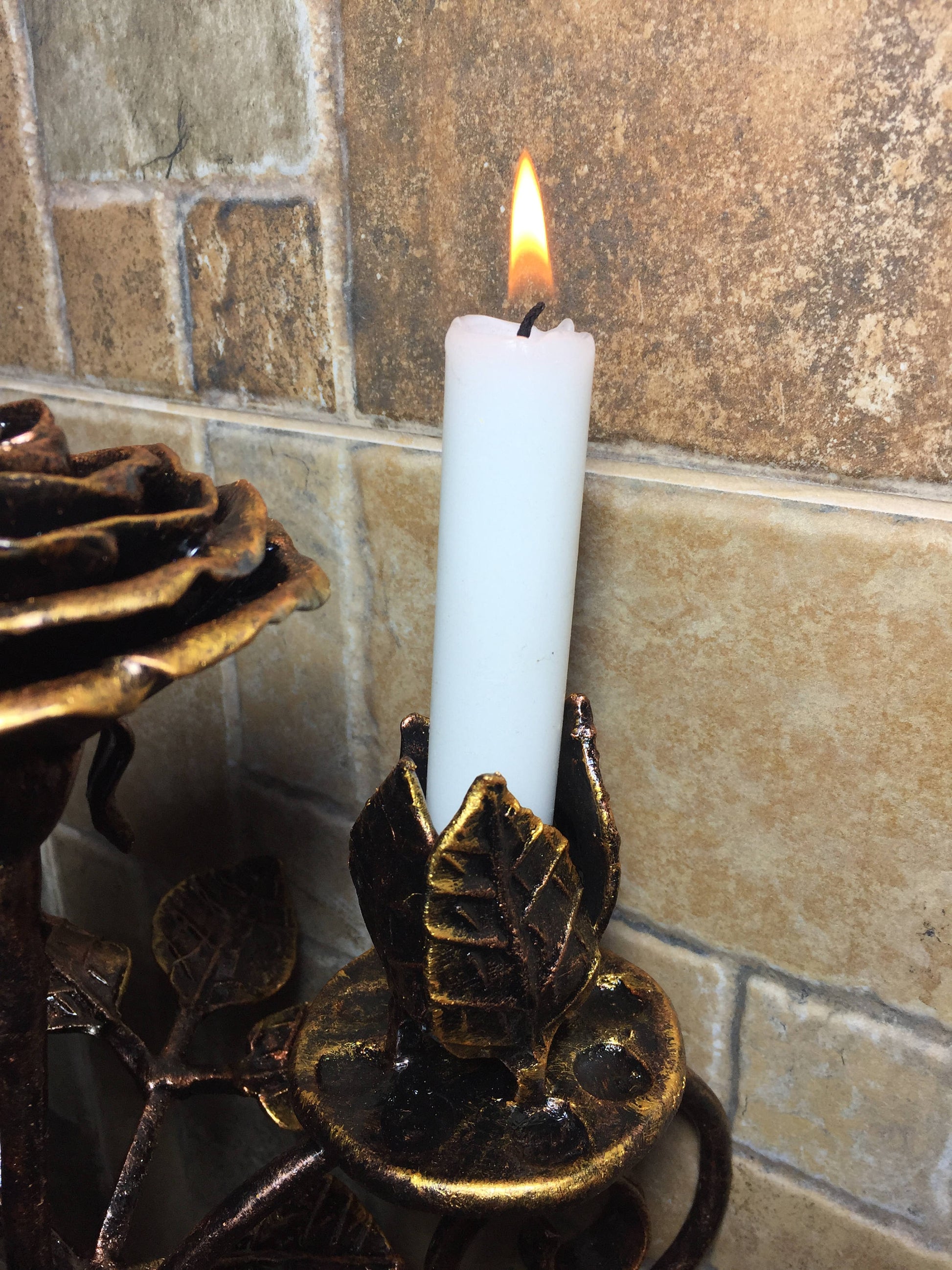 Iron candle holder, iron gift for her, forged rose, iron rose,iron anniversary gift for her,rose sculpture, wedding anniversary gift for her