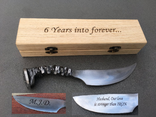 Iron gift for him, mens gifts, engraved knife, railroad spike knife, iron anniversary, knife for groomsman, knife gifts, knife gift box, axe