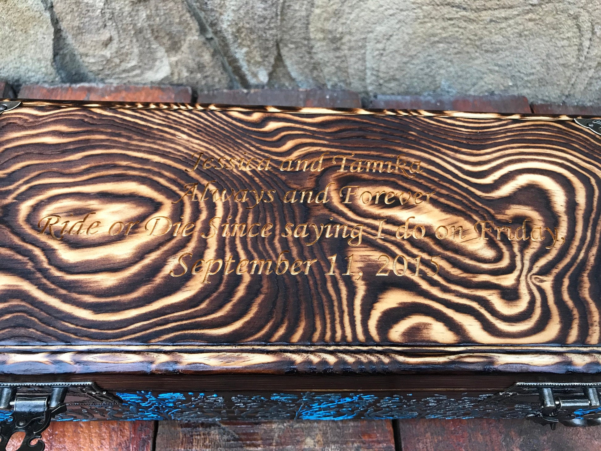 The listing price includes the engraving (date, name, message, short verse ...) on a top of a gift box.