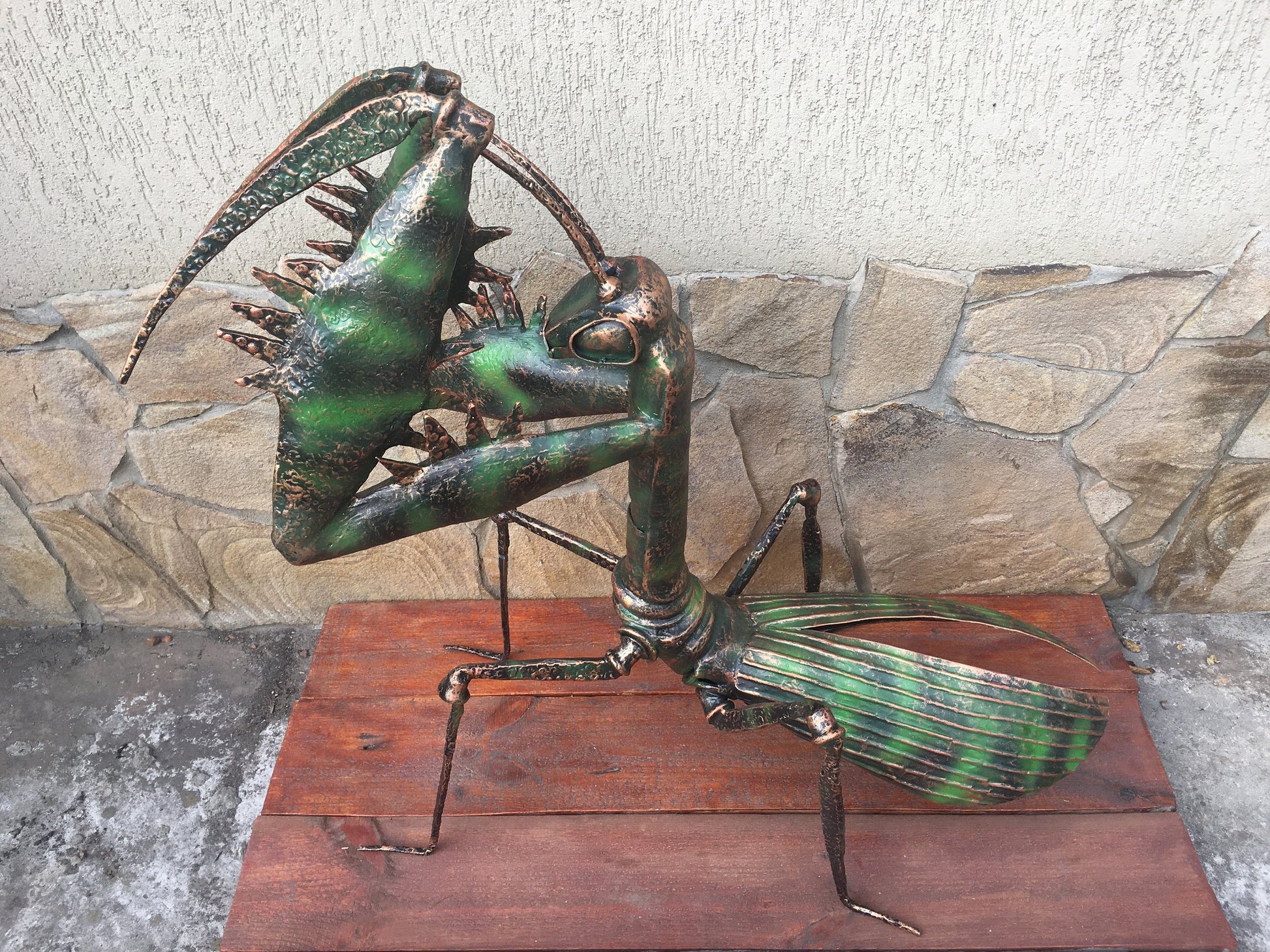 Looking for unusual hand forged sculpture for a garden? As a home decor or for a gift? You are at a right place and at a right time. Here it is! A metal sculpture "A mantis".