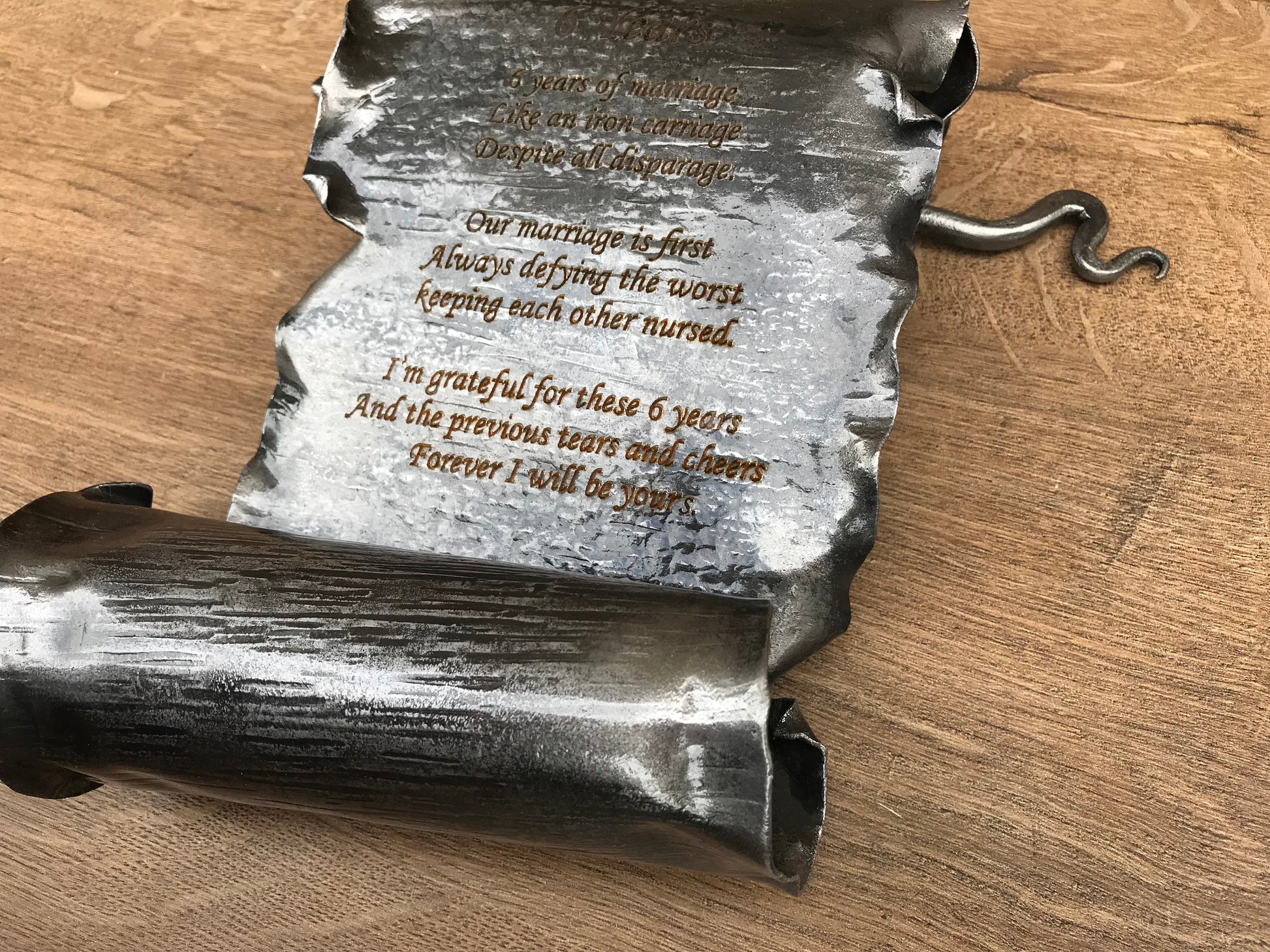 Iron scroll, personalized iron gift, 6th anniversary, iron anniversary gift, 6 year anniversary, wedding anniversary gift,iron gifts for her