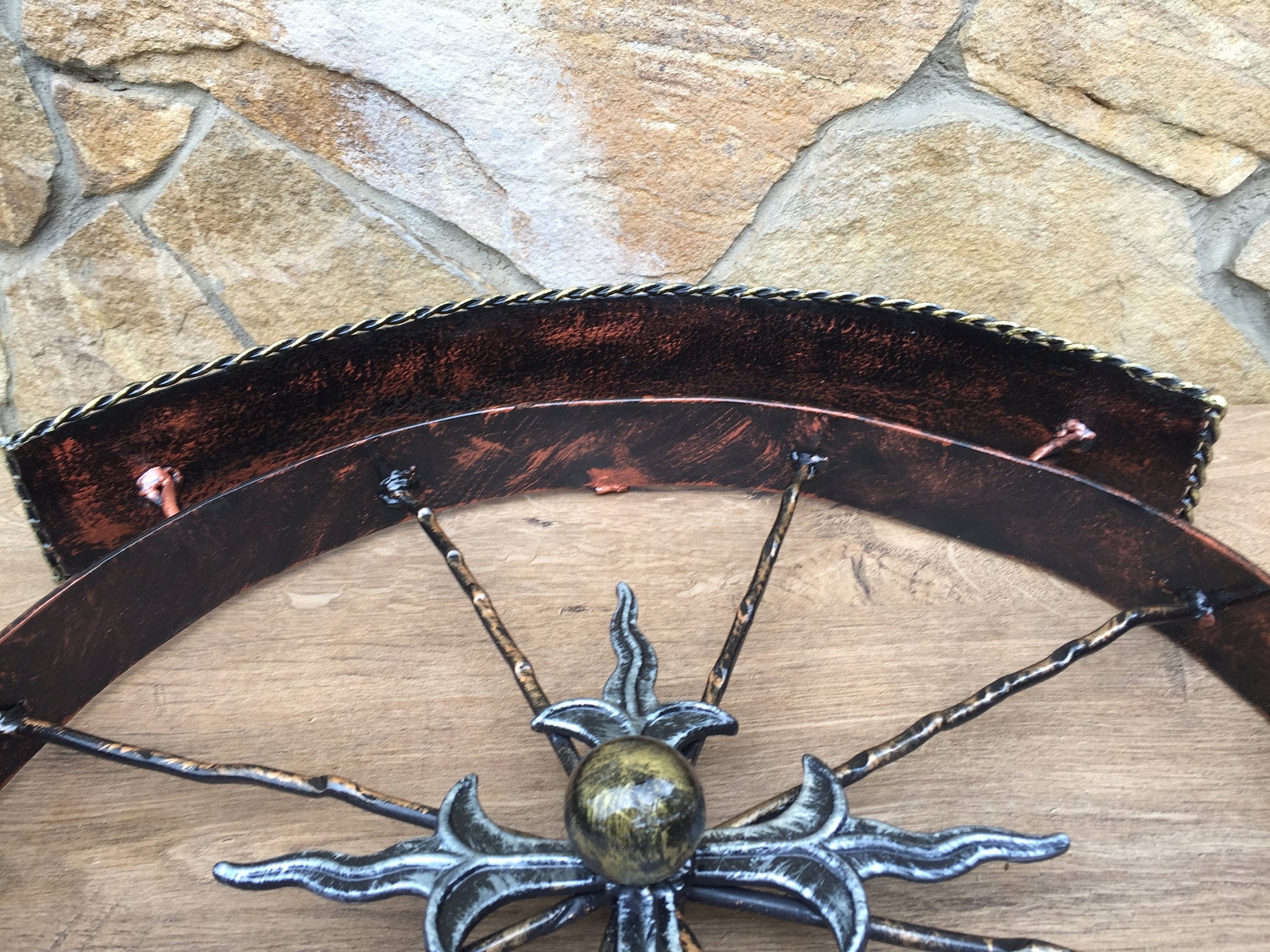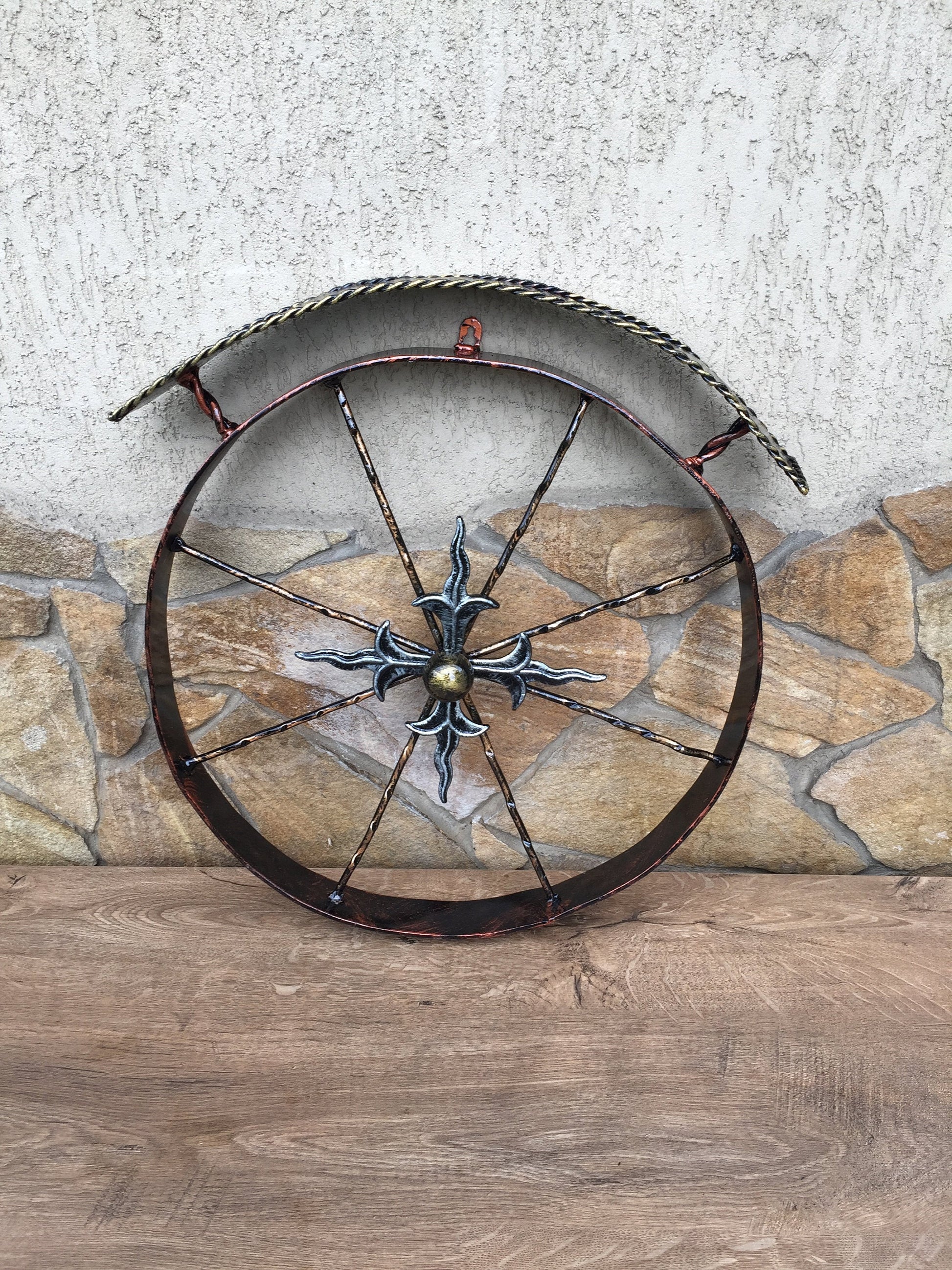 A hand forged wheel. Perfect piece to decorate your home in a rustic/farmhouse style ! It is a very decorative piece of a home interior. Forged art.