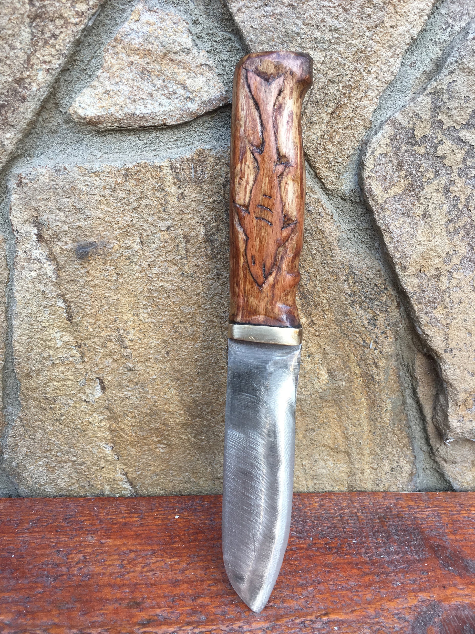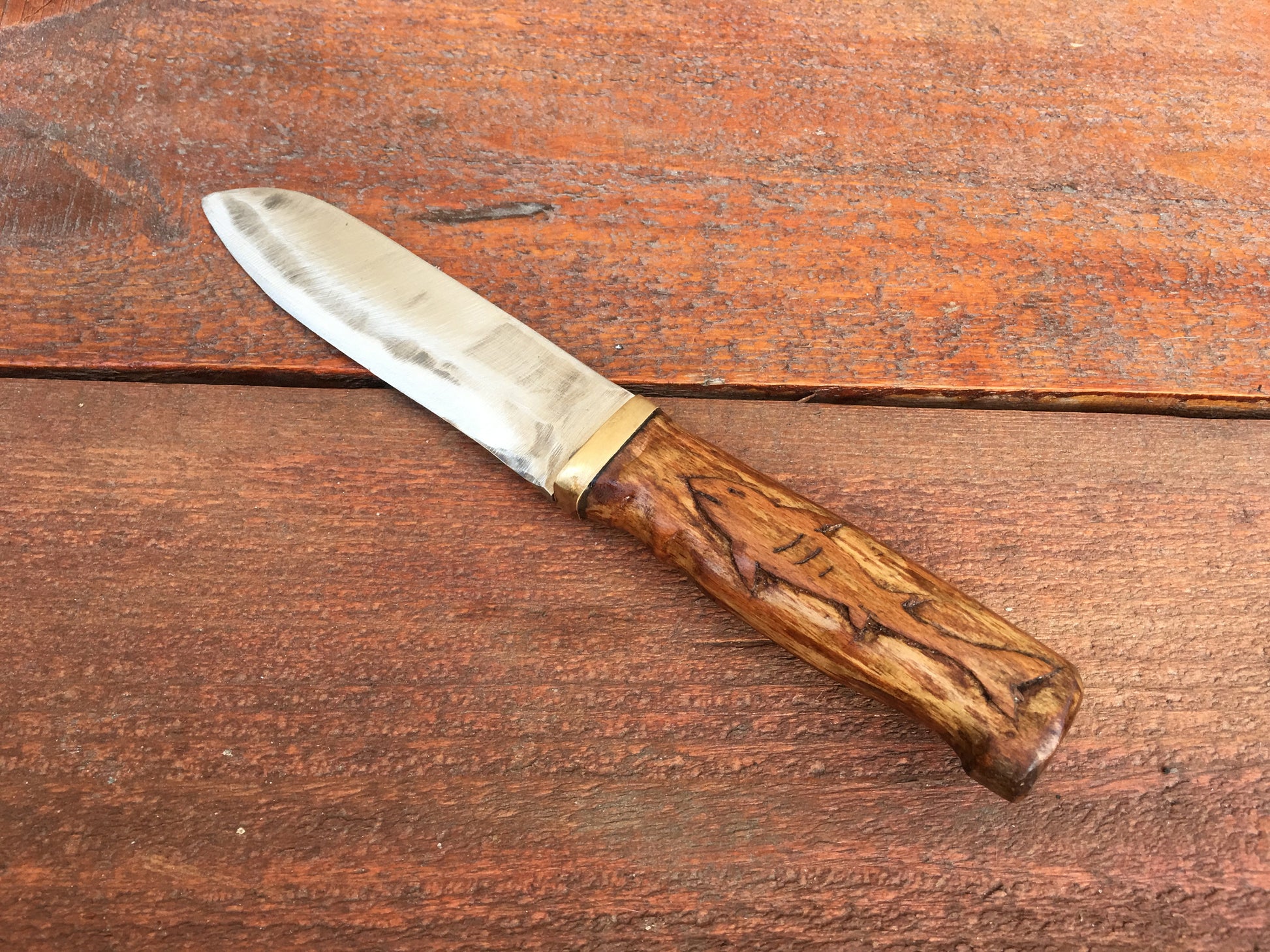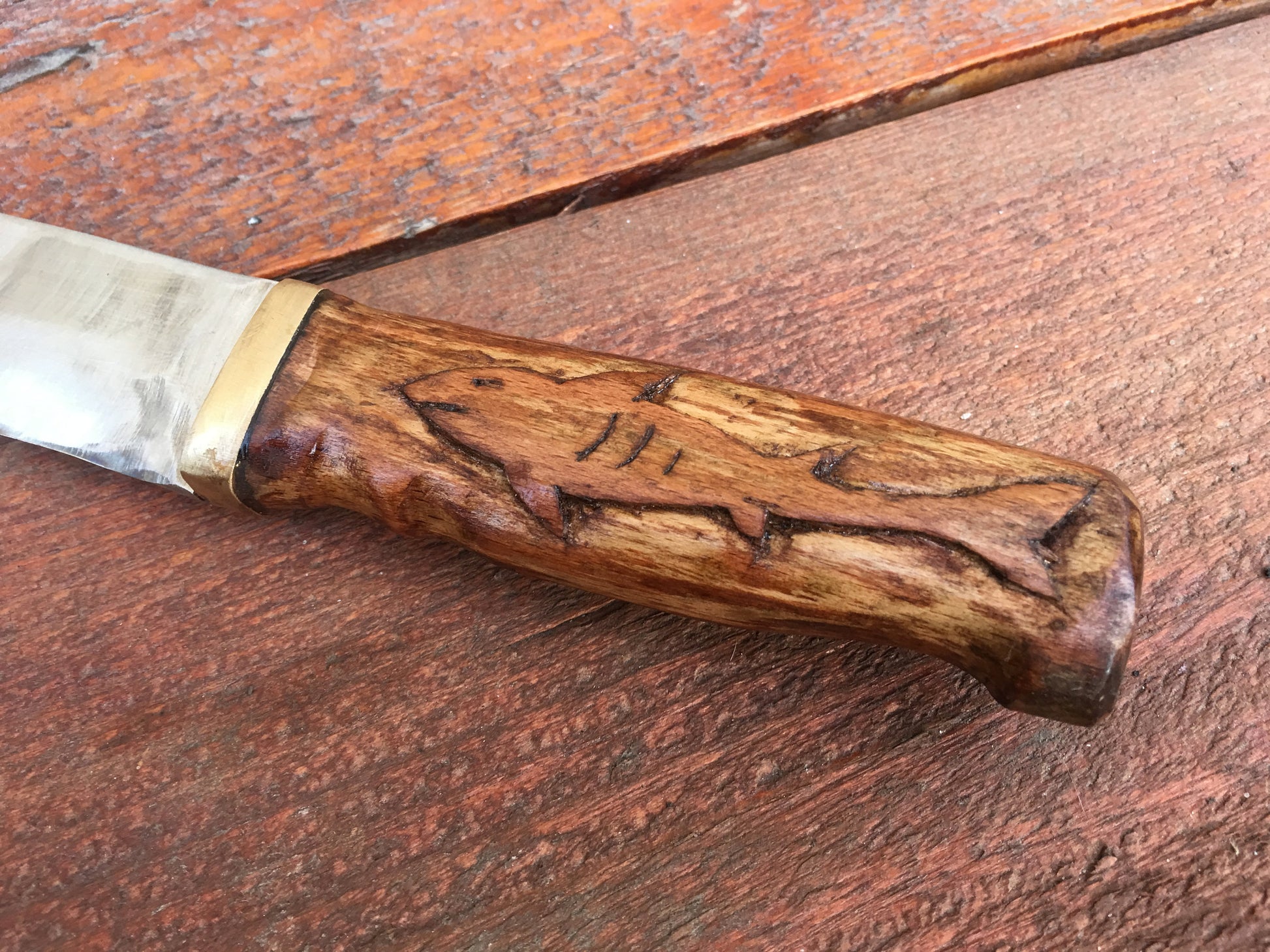 Here is a hand forged hand knife with a nicely decorated handle (engraved shark). This is a great groomsmen gift, corporate gift, usher gift, groom gift, father of the bride gift, 6th anniversary gift (iron year), 11th anniversary gift (steel year), Father's Day, Christmas gift for a grandfather or any other gifting occasion.