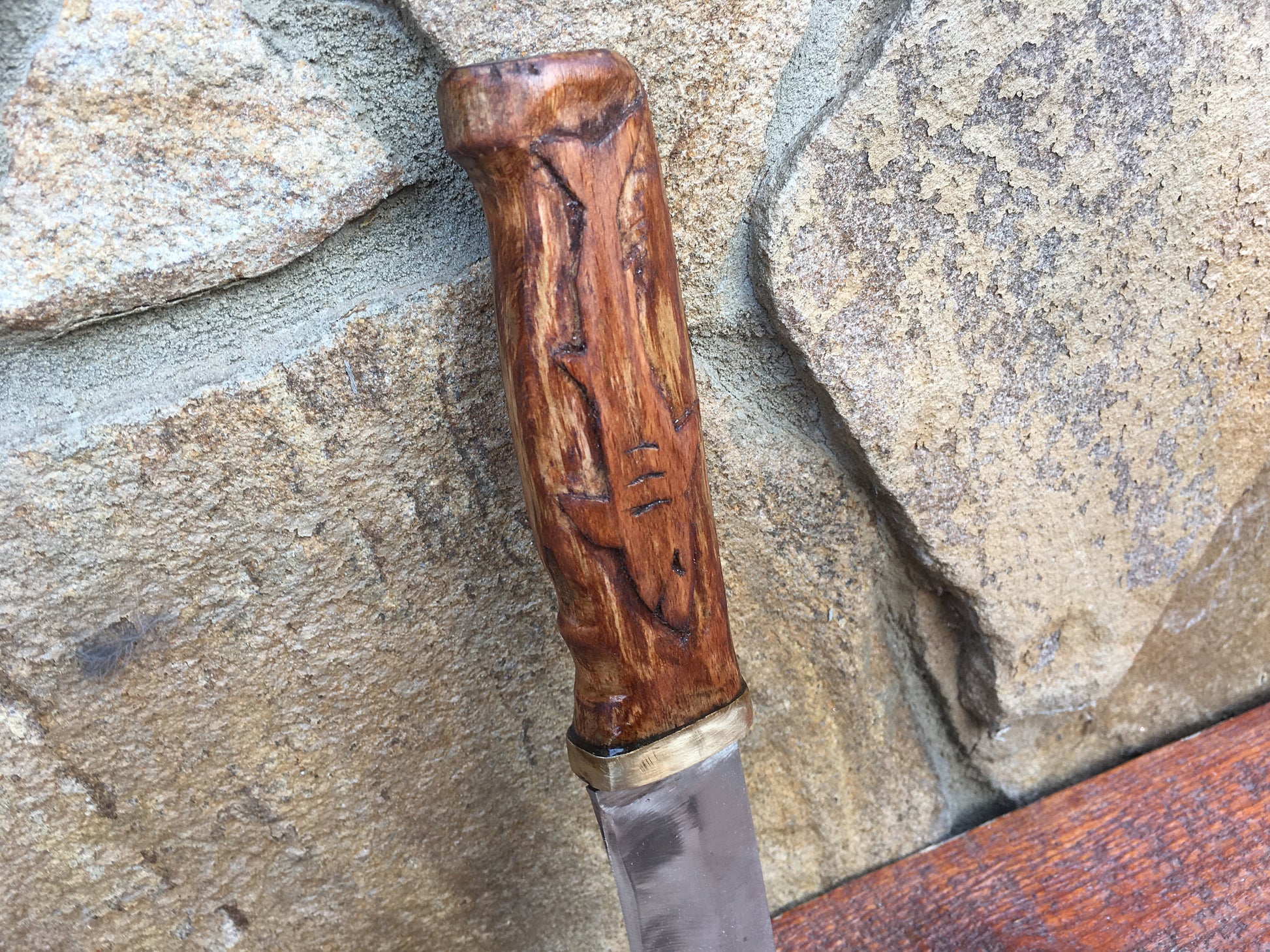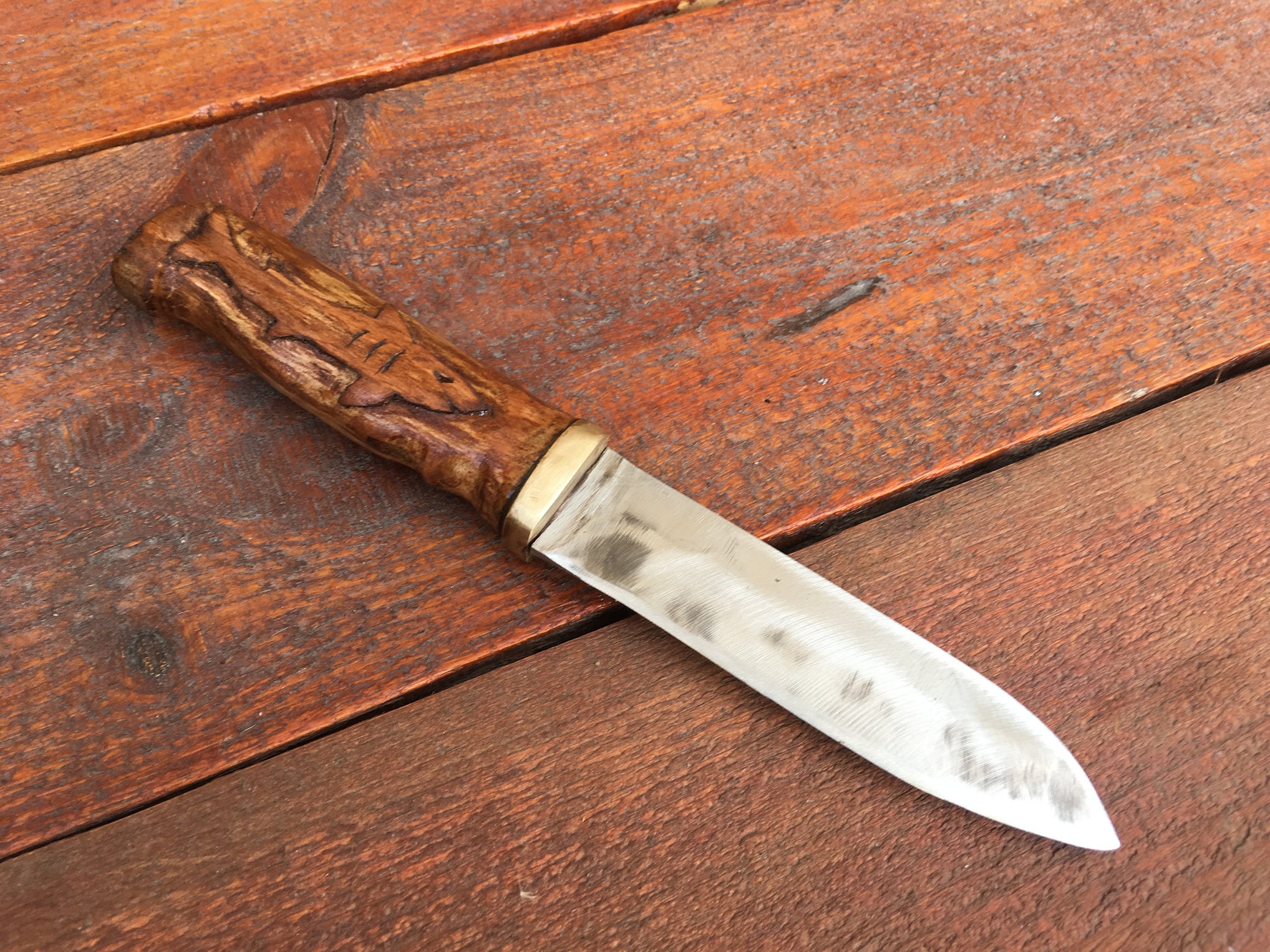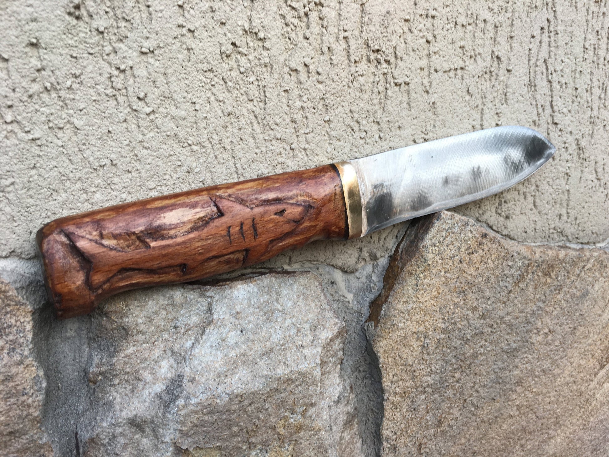 Here is a hand forged hand knife with a nicely decorated handle (engraved shark). This is a great groomsmen gift, corporate gift, usher gift, groom gift, father of the bride gift, 6th anniversary gift (iron year), 11th anniversary gift (steel year), Father's Day, Christmas gift for a grandfather or any other gifting occasion.