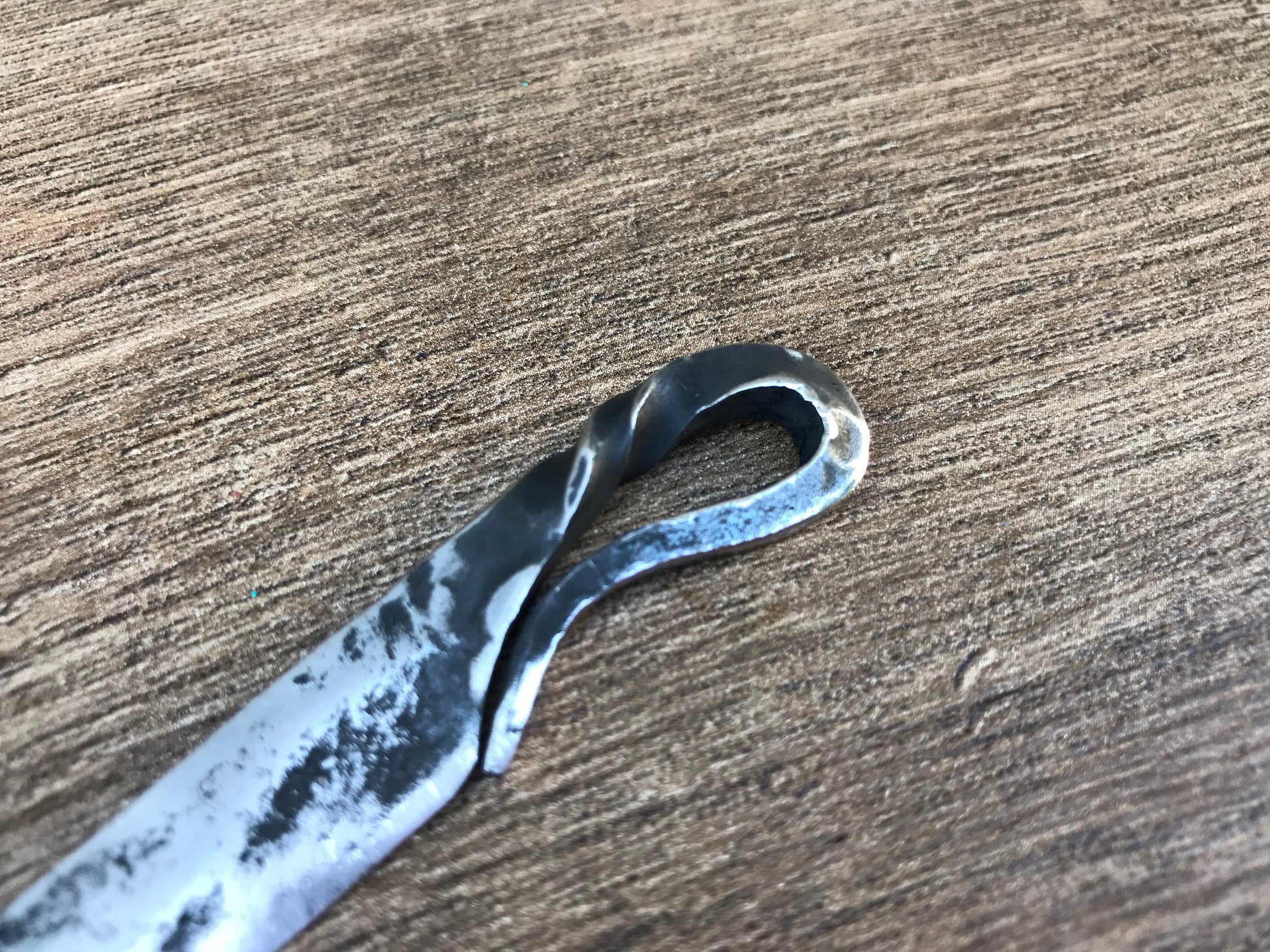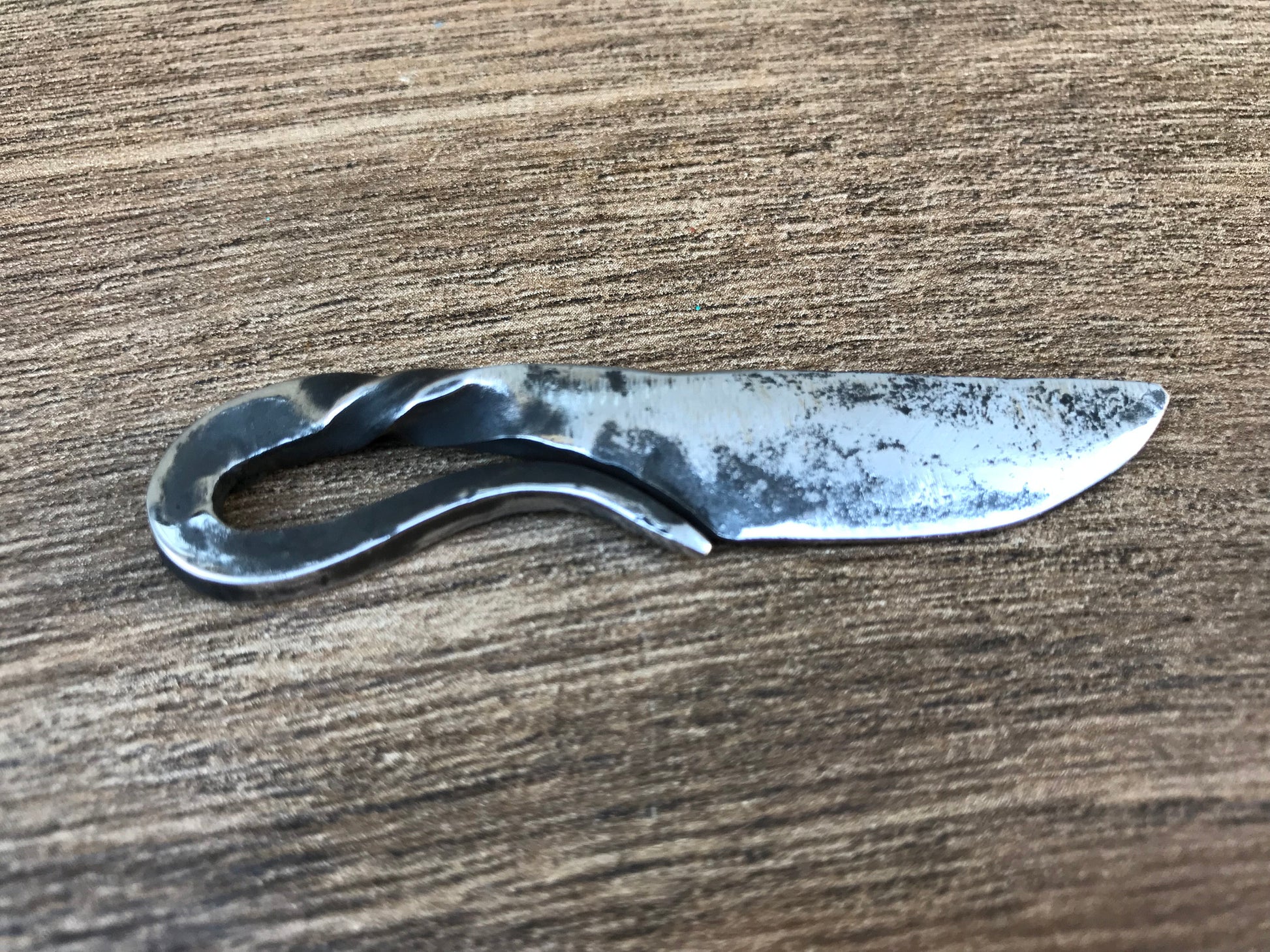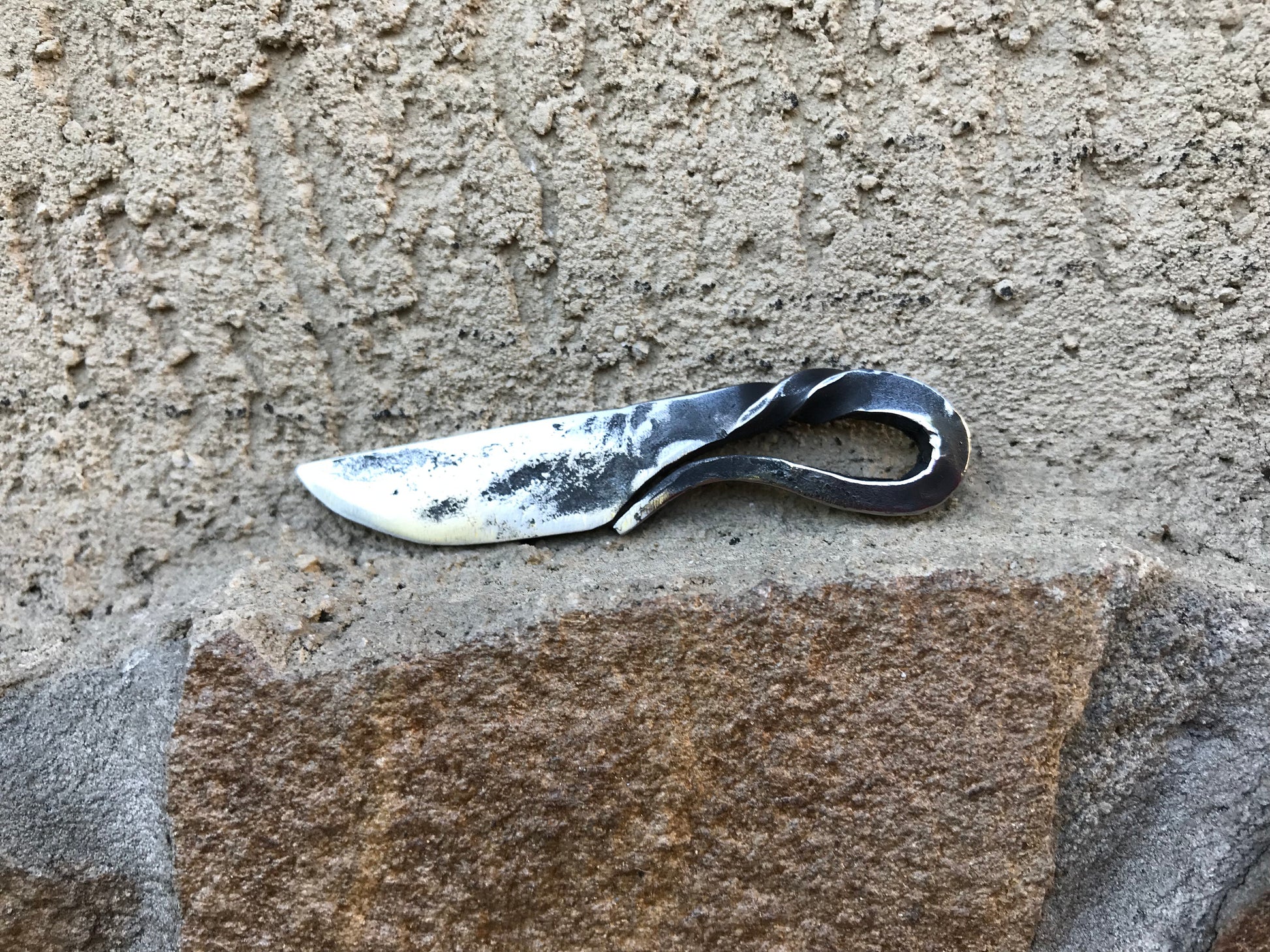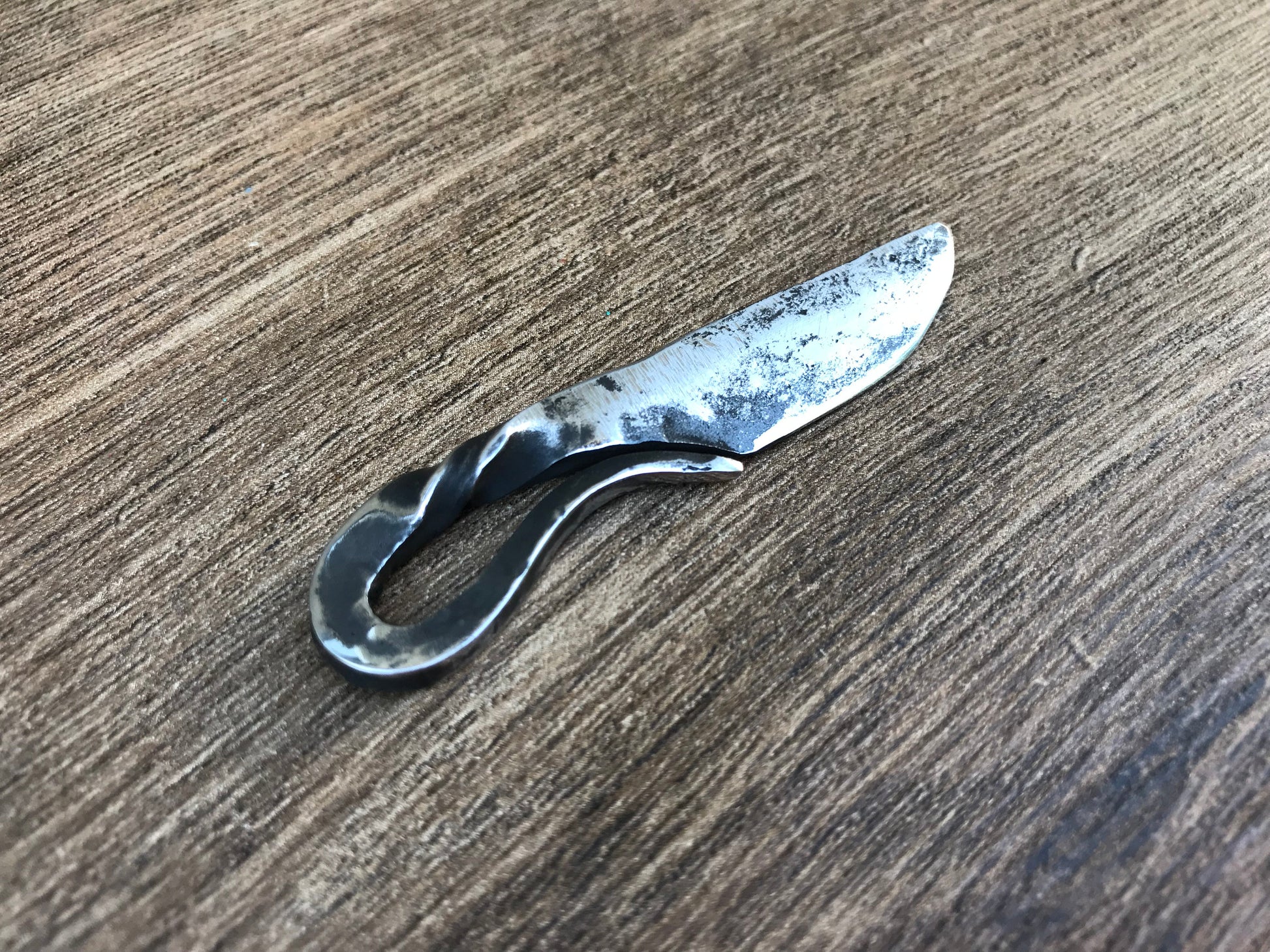 A perfectly shaped finger-knife / neck-knife, based on historical models from the Middle Ages (Iron Age), masterfully forged from a single piece of a stainless steel, twisted handle.
