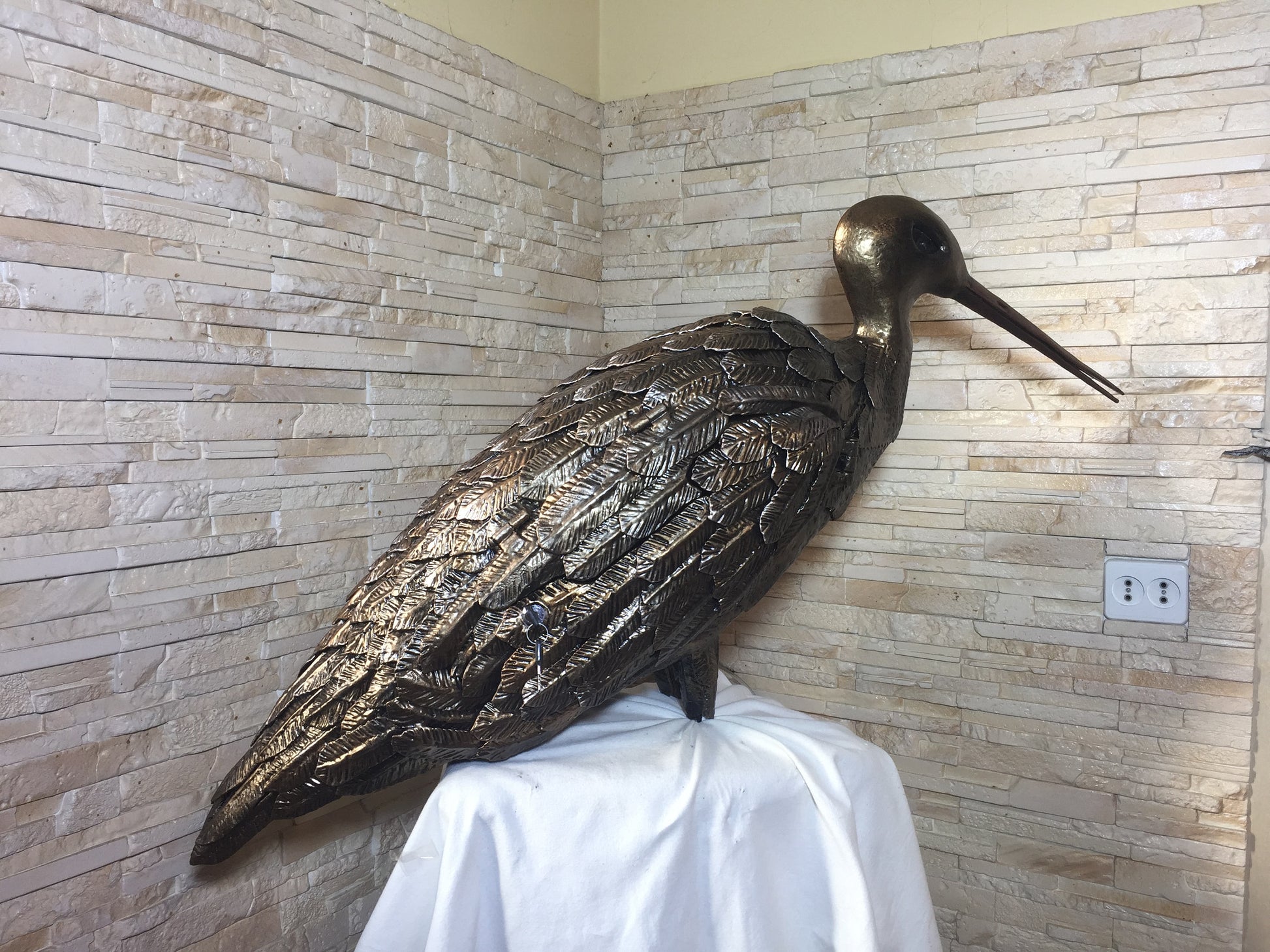 Here is a hand made forged metal post box in a view of a bird (stork/heron). It is for outdoor placing. It is water proof, made from sturdy metal, which is perfect for outdoor use. It will decorate your exterior. The bird stays on a metal plate. Two legs of the bird are fixed with screws to this metal sheet. Under the metal sheet there are 4 metal bars with screws (20 cm) be fixed with the metal sheet. You put these four metal bars into cement for stabilizing the bird. It is easy to cement it.