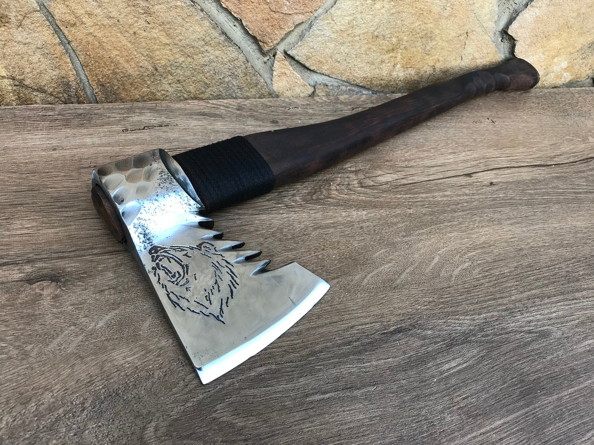 Free of charge engraving on the handle to make it personal (date, names, others ...). It can be other head of any aninal engraved on the axe head.