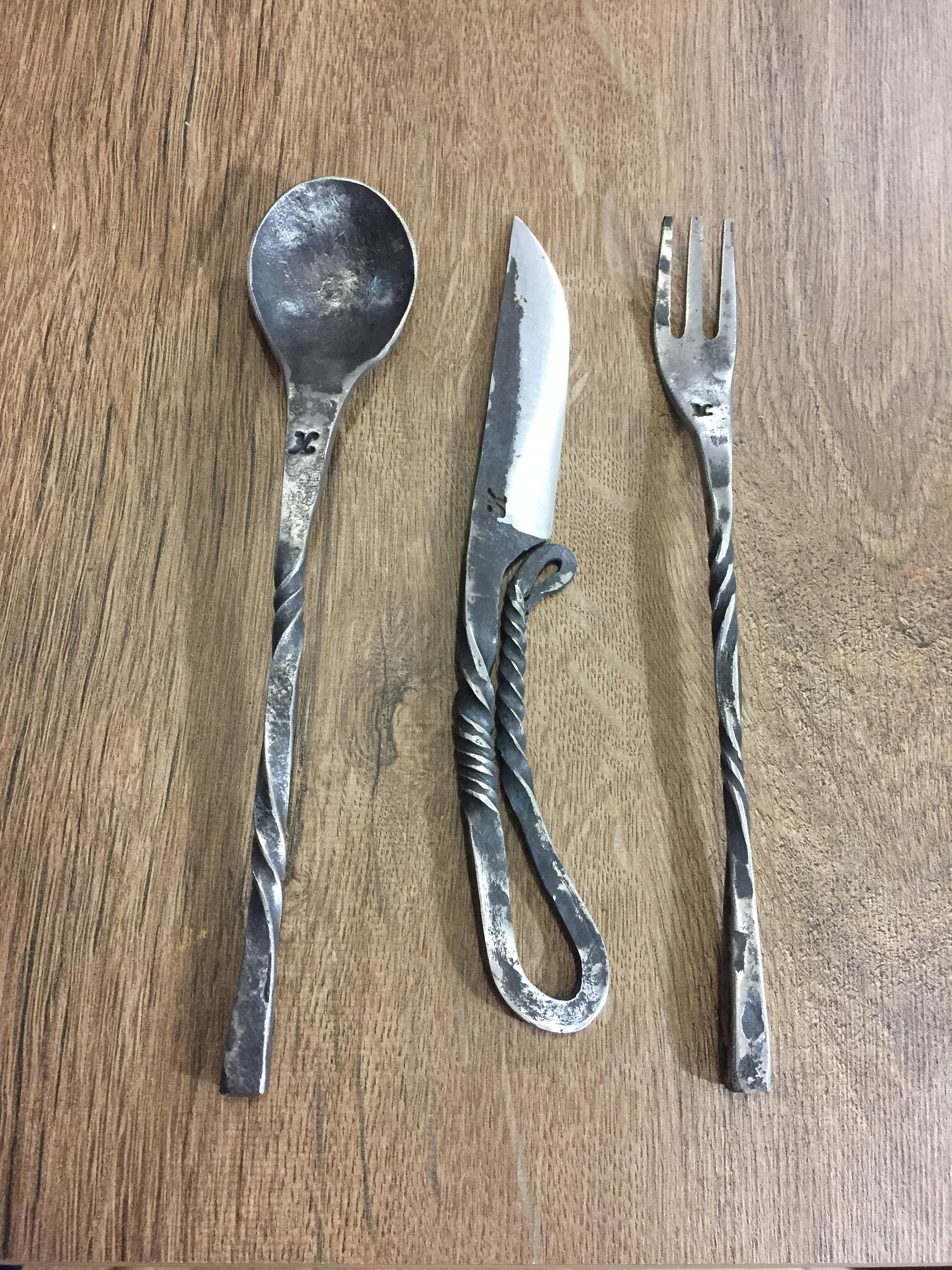 This flatware set (knife, fork & spoon) is made for every-day use or special occasions such as camping or renaissance reenactments.