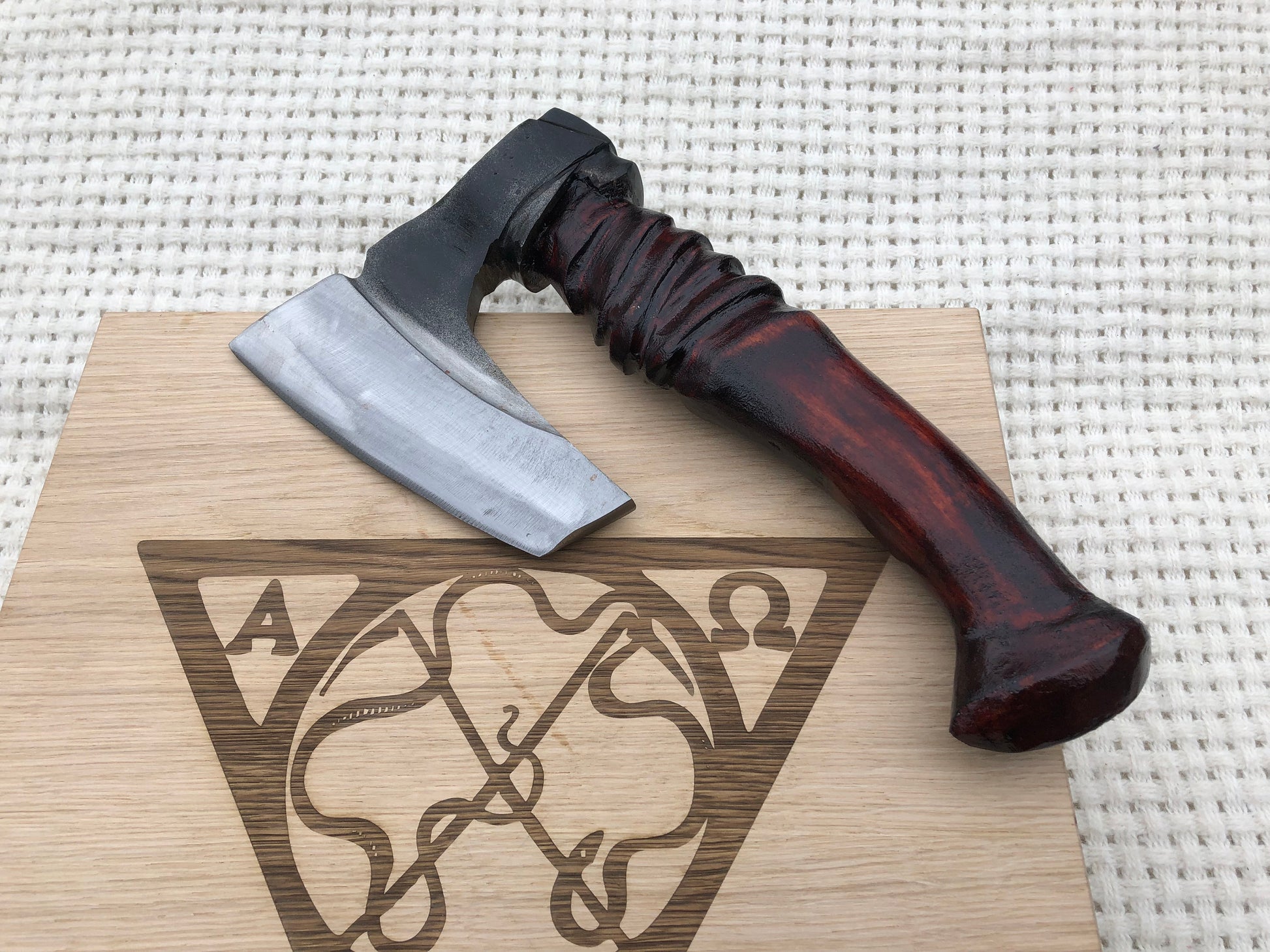 Price of the listing includes a wooden gift box, any engraving on a top of the wooden gift box (logo, image, name/date, message - please send me this info while ordering), a knife with an engraved blade (please send me the info on name/date, initials, short message - for blade engraving), the axe.