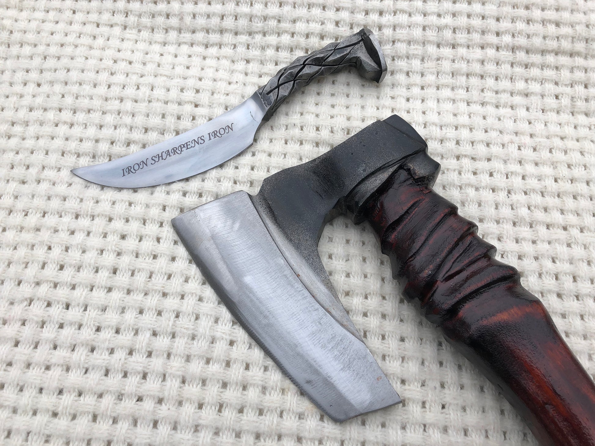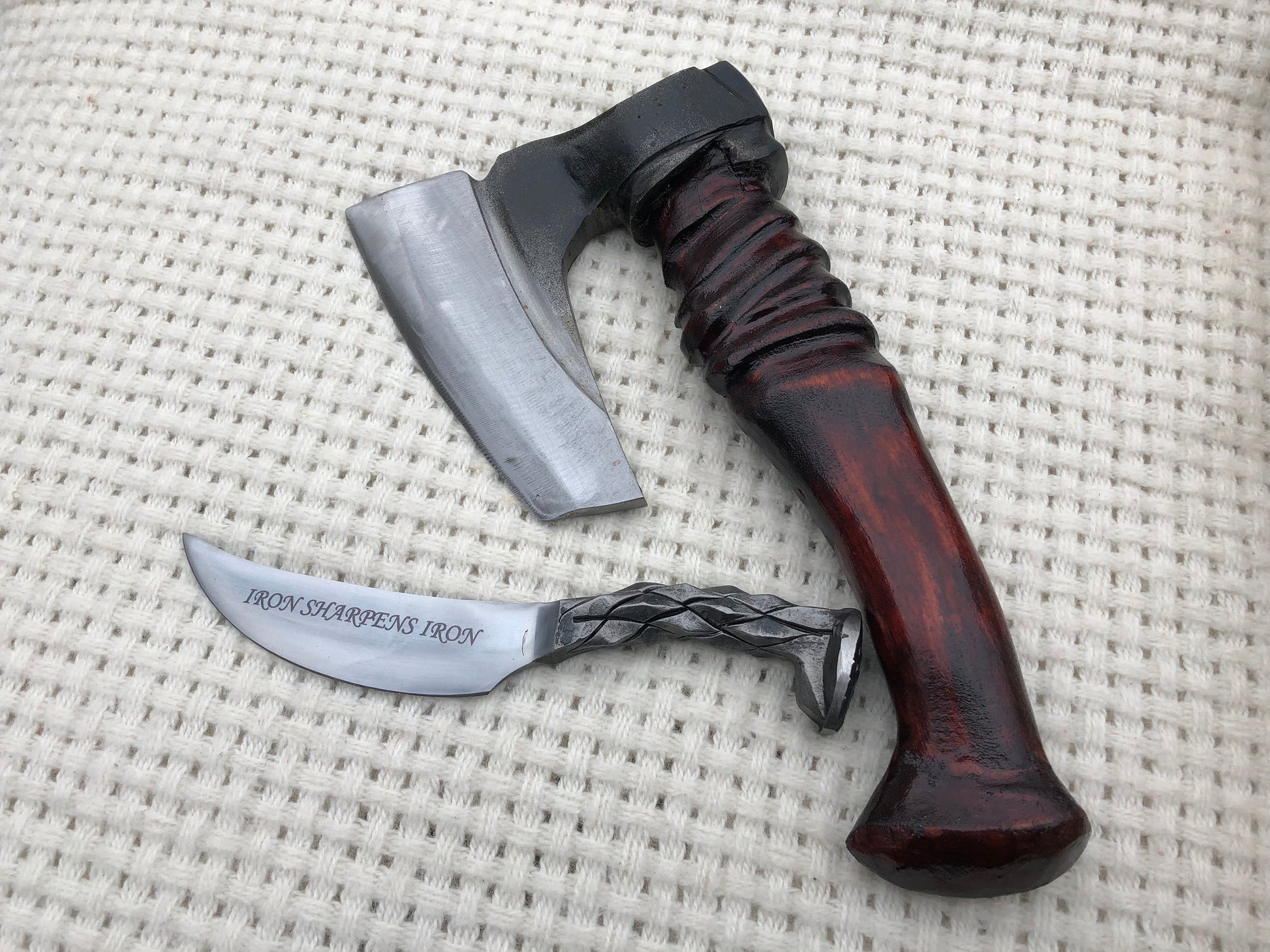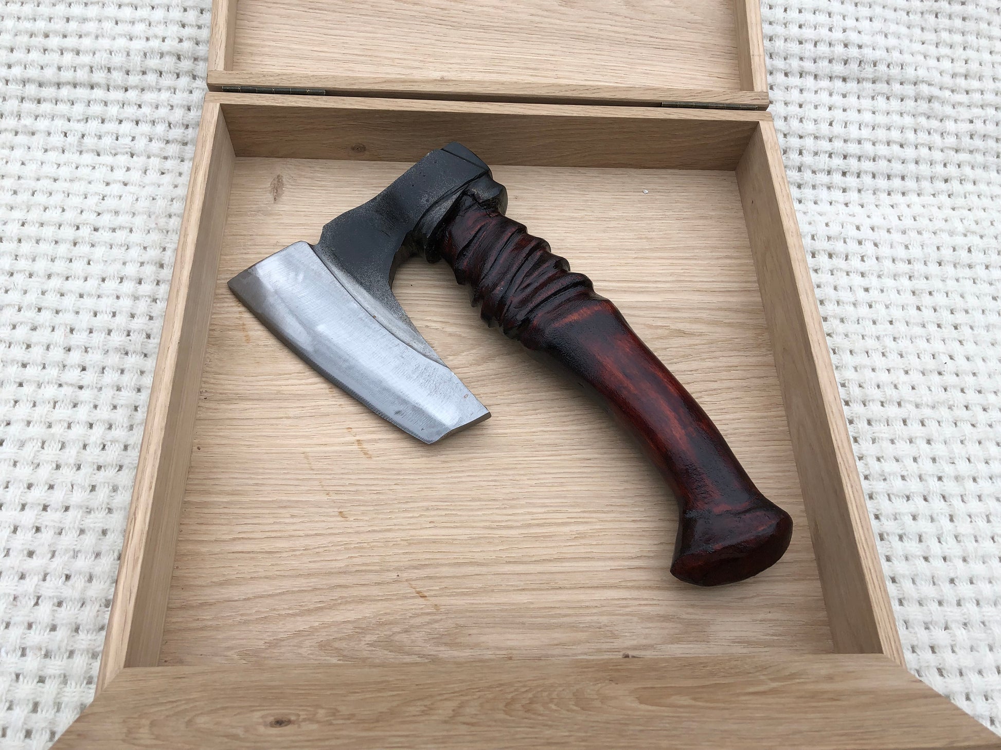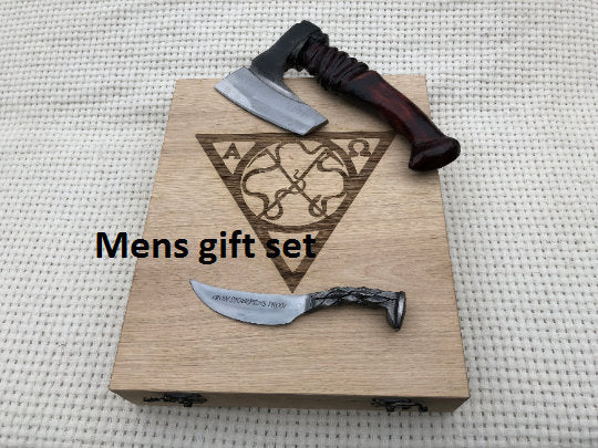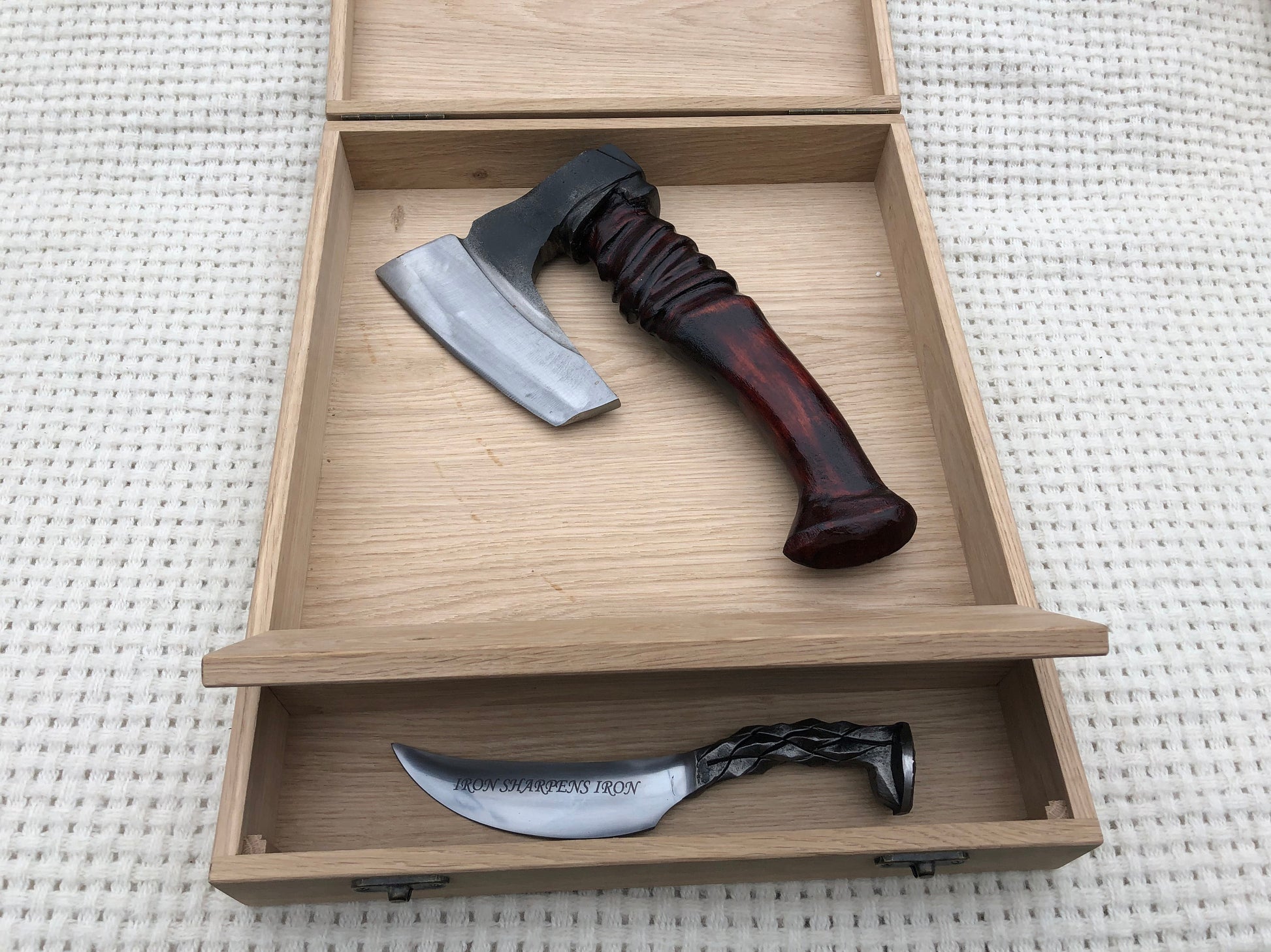 Mens gift box, railroad spike knife, axe, viking axe, mens gift set, mens gift birthday, iron anniversary, 6 year anniversary, steel anniversary