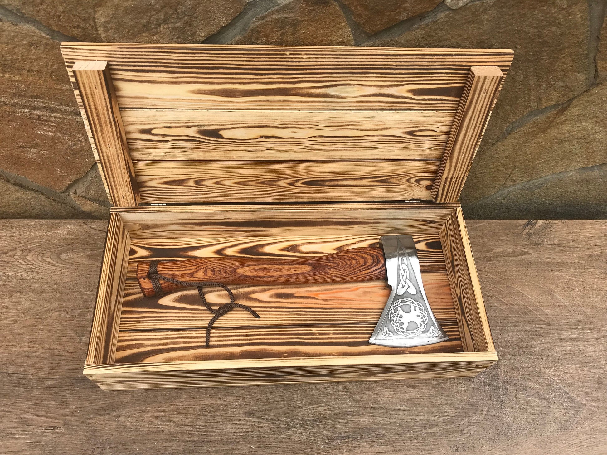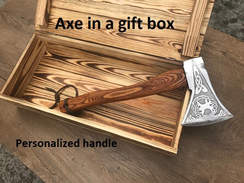 Mens gift, tree of life, viking axe, gift box, celtic, hatchet, wooden gift, handyman tool, groomsman gift, tree of life decor, viking gift