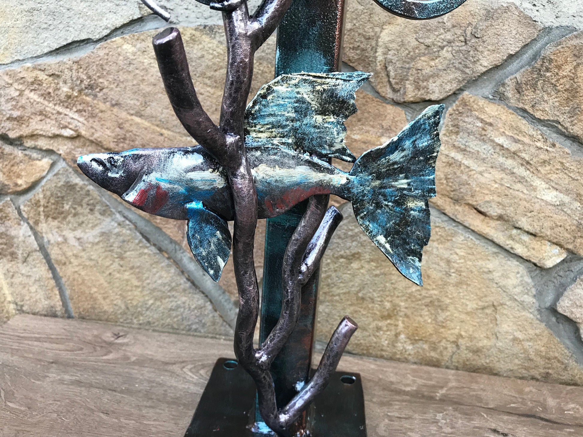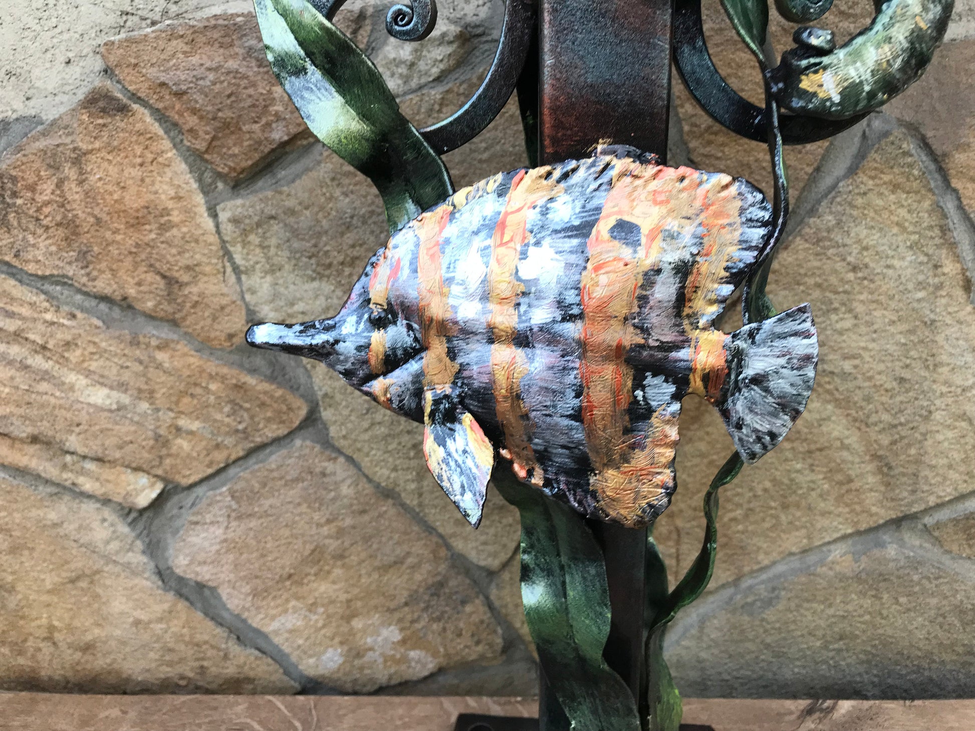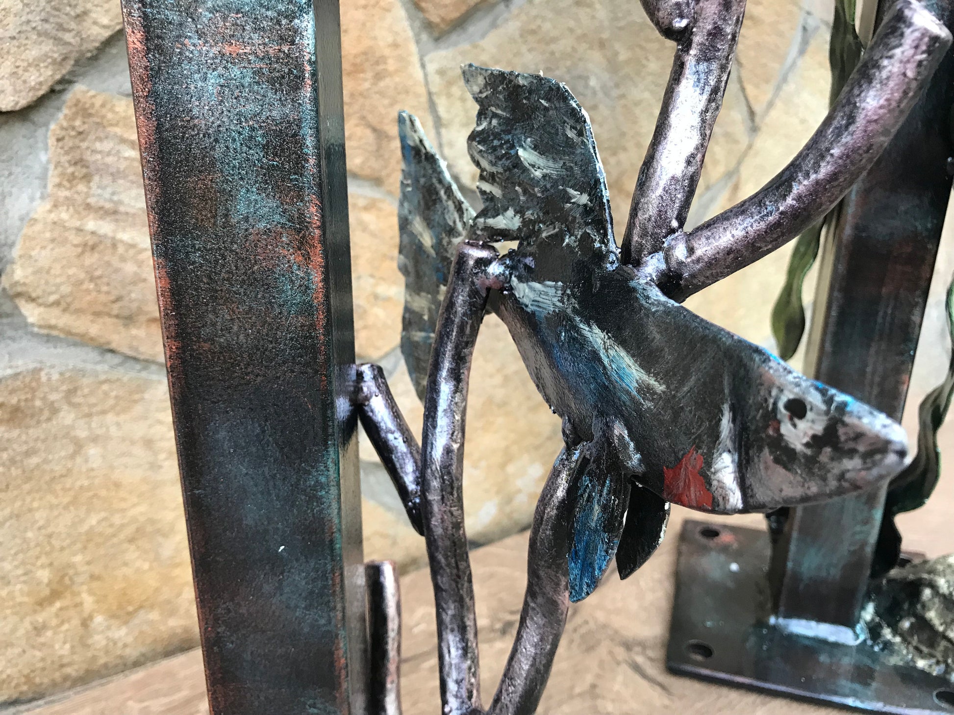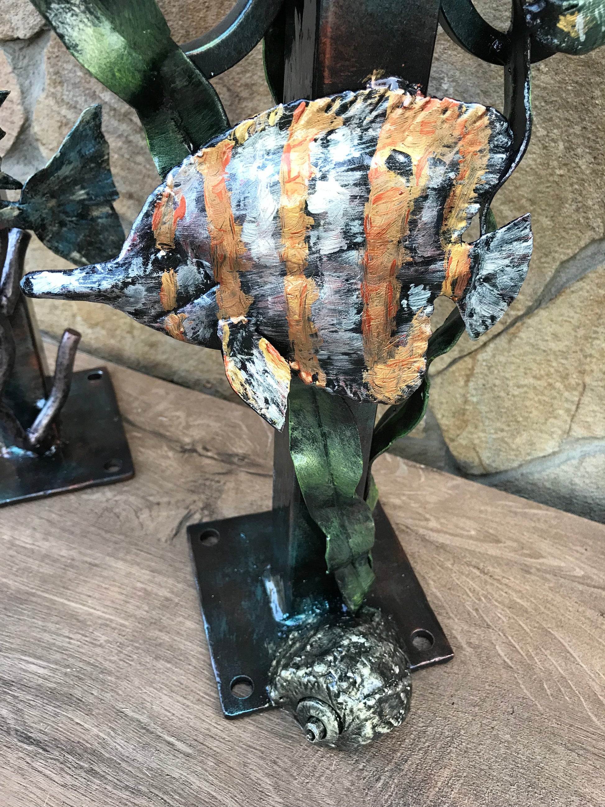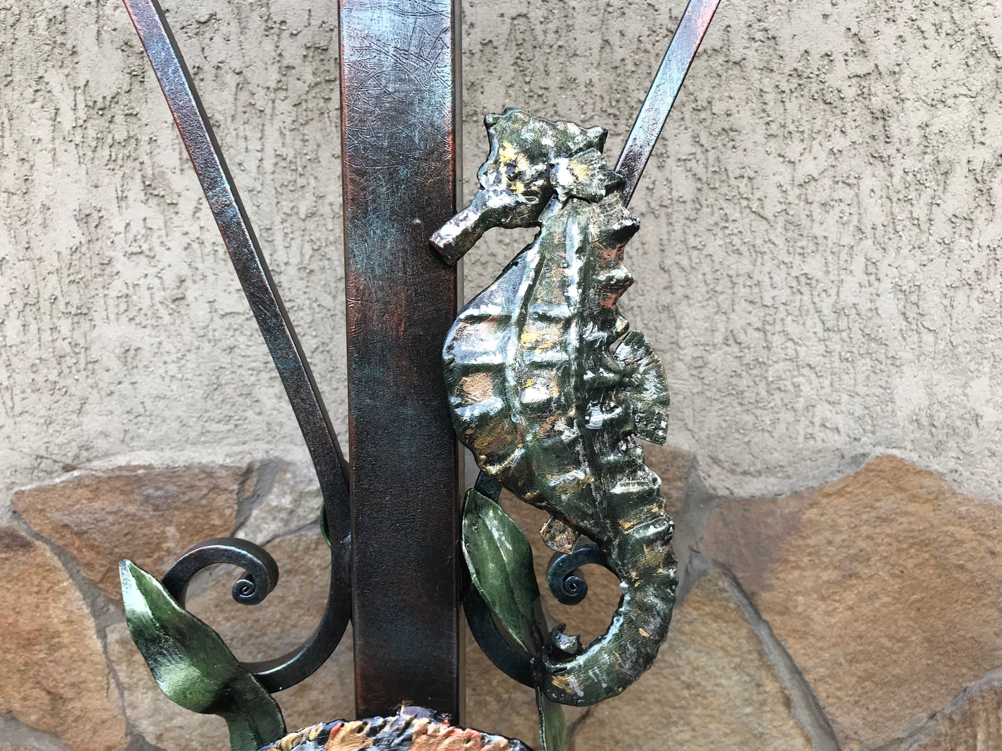 Here is a a set of two hand forged table legs in the ocean theme. You can put on it a table top to use it as a kitchen table, dinner table. You will not find anything similar to it. It is made in the technique of the artistic forging (with jellyfish, seahorse, seaweeds, 2 different fishes, shell, a branch of coral). It will decorate any place where it stands. It is a high quality forging work!