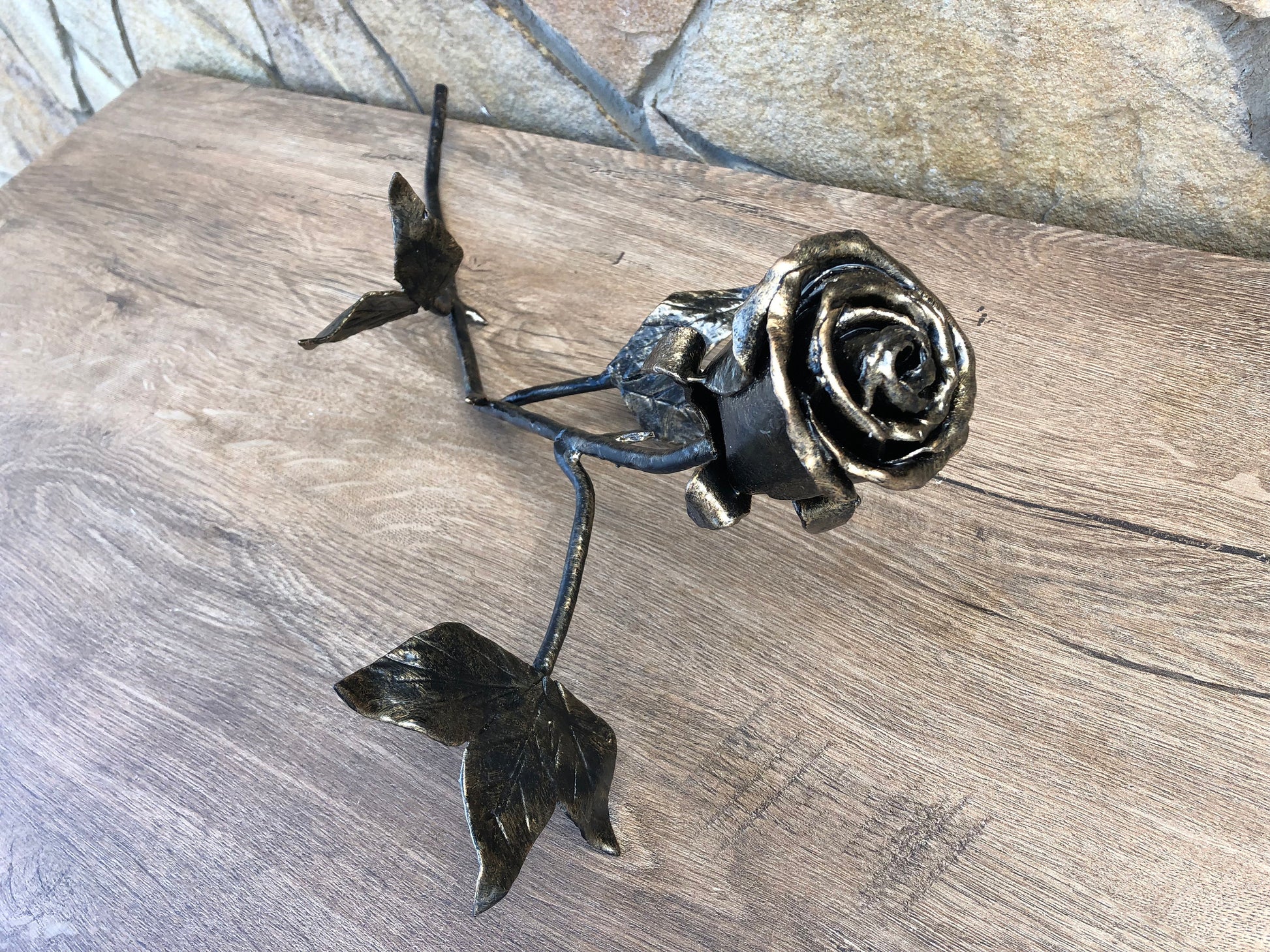 Are you looking for a nice wedding anniversary gift? Valentine's day gift? Wedding gift? Birthday gift? Or just a home decor? Here is a forged metal rose which could be a nice gift for your girl/woman/wife. It looks very festive and decorative! It deserves to be a cool gift!