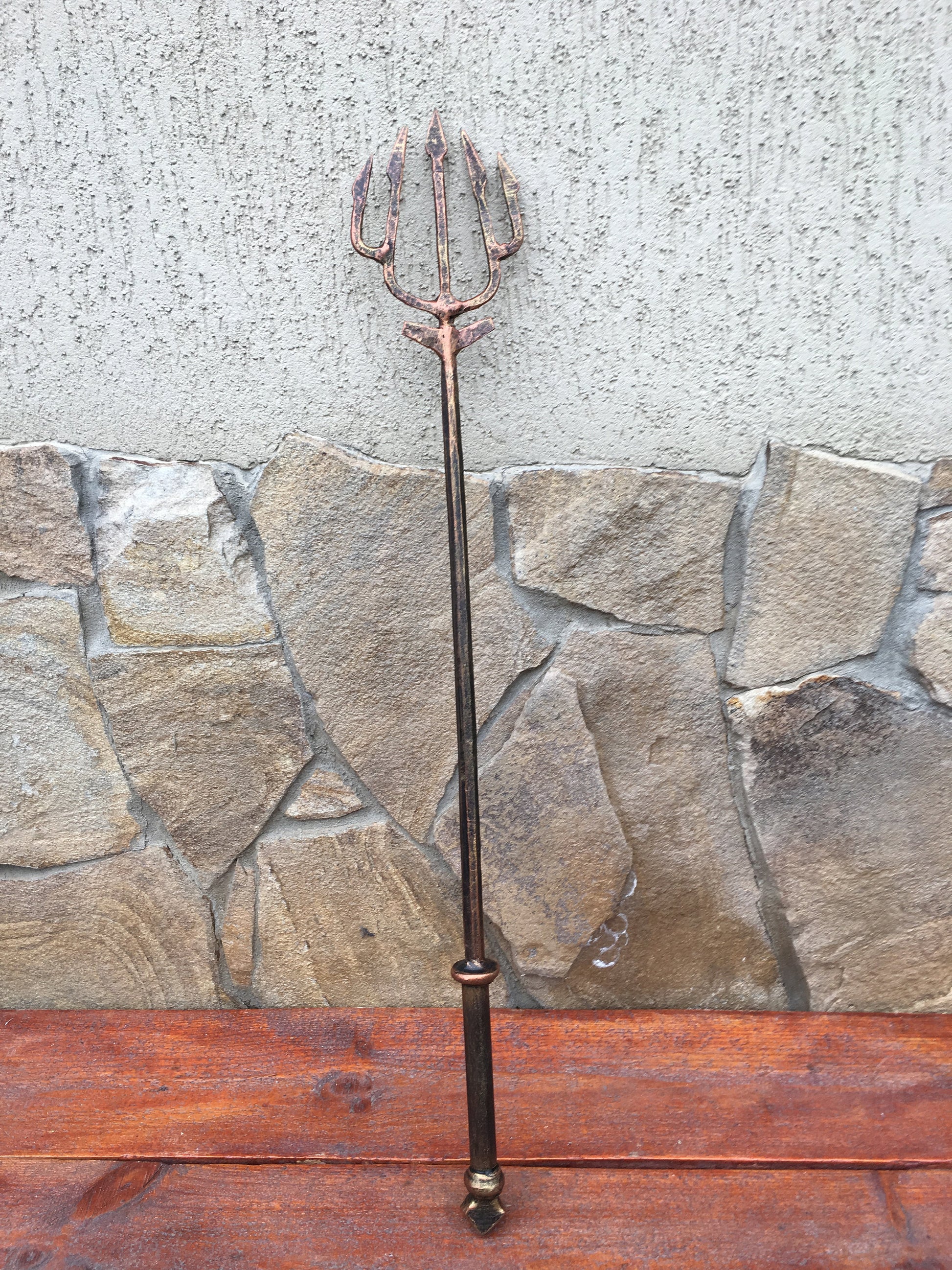 Here is a hand forged trident. You can use it in a cosplay or as a home decor.