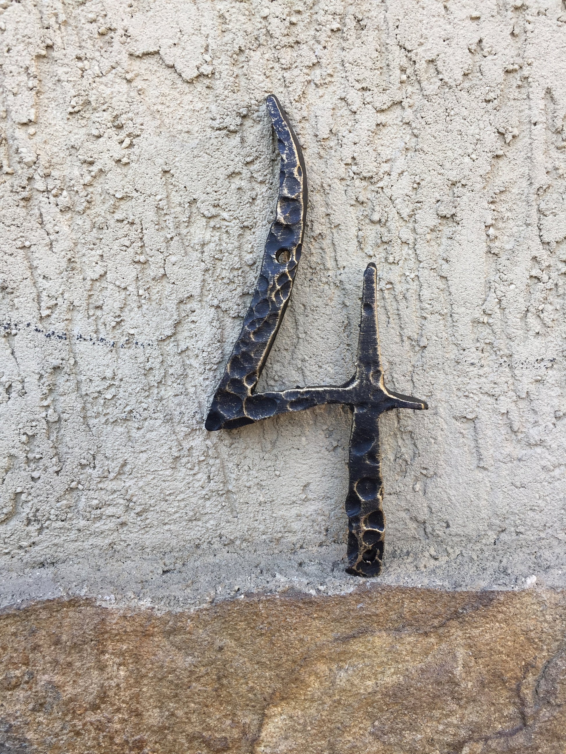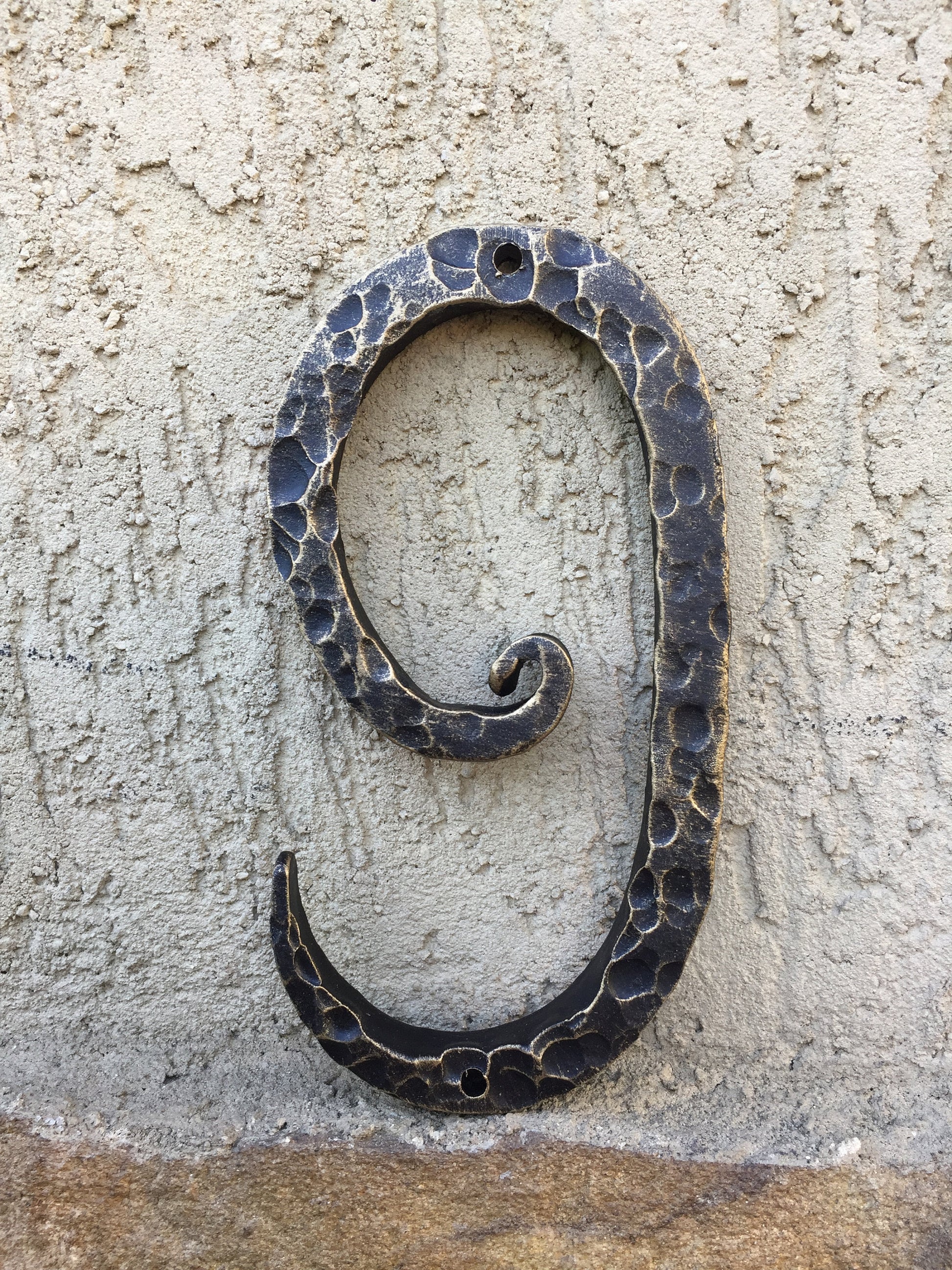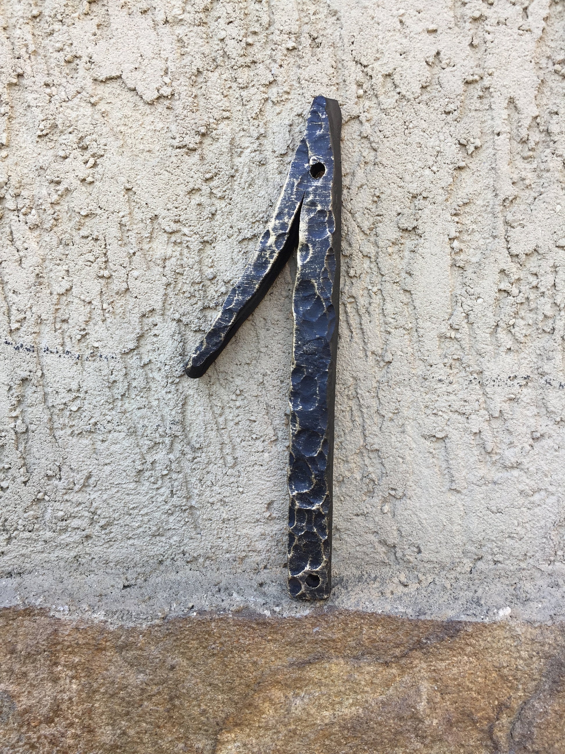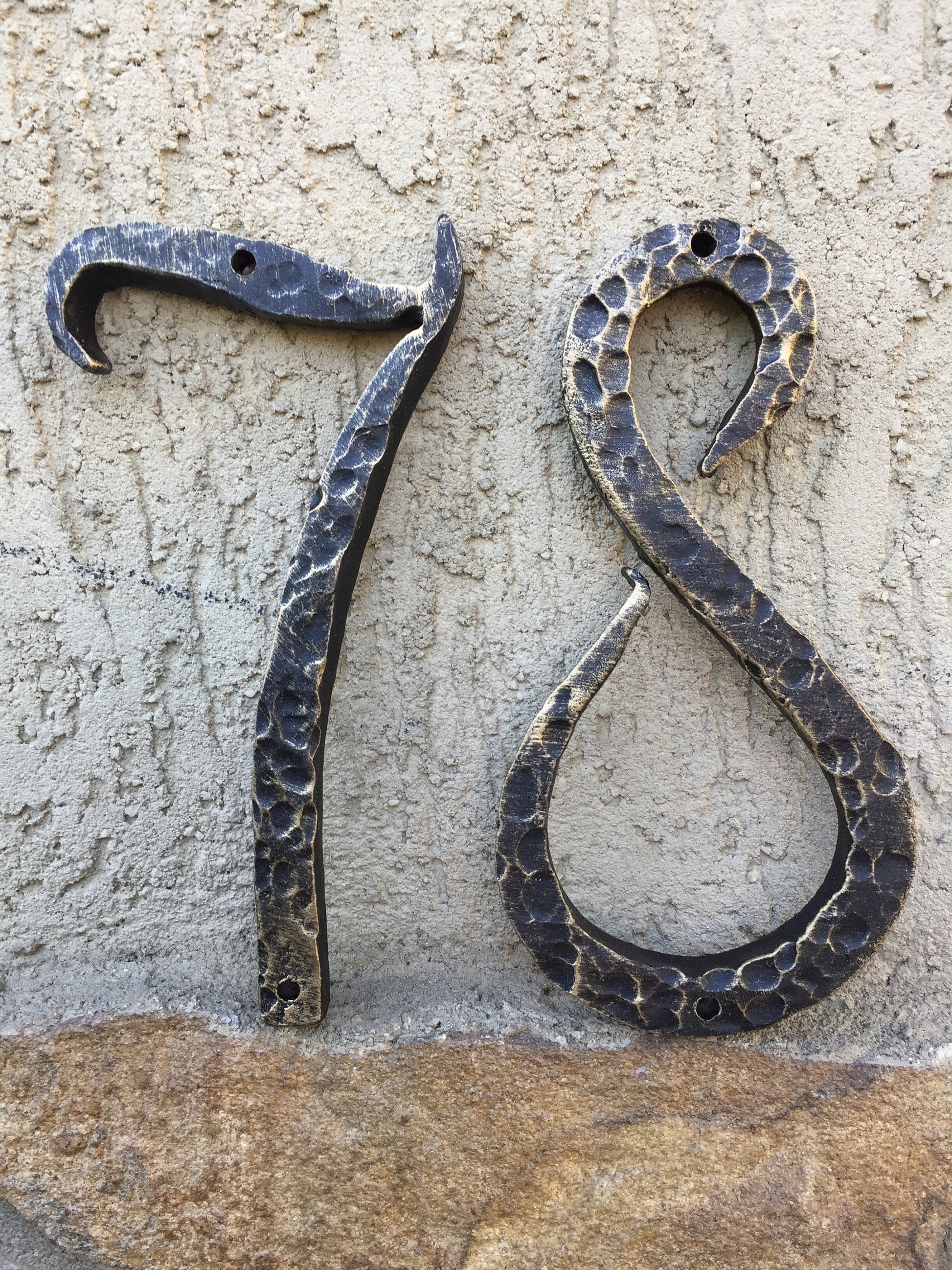 Here are hand forged house numbers which gives much more beauty to your house and outlines its the exterior features. It is done very artistically. Numbers are nicely forged! It is handmade, art forged. Each number has two wholes to screw it to a wall. Every detail reveals the character of original, hand hammered pieces!