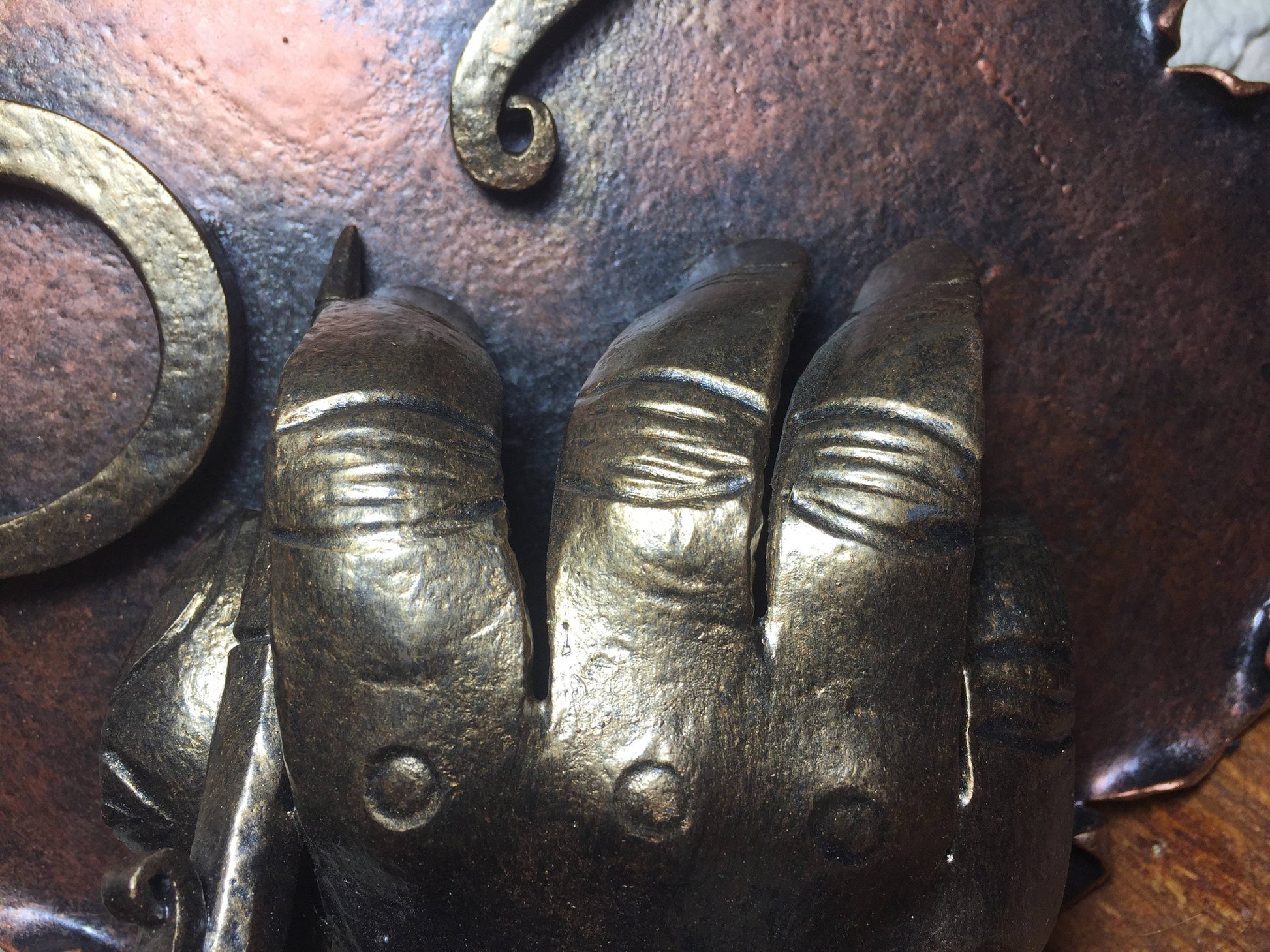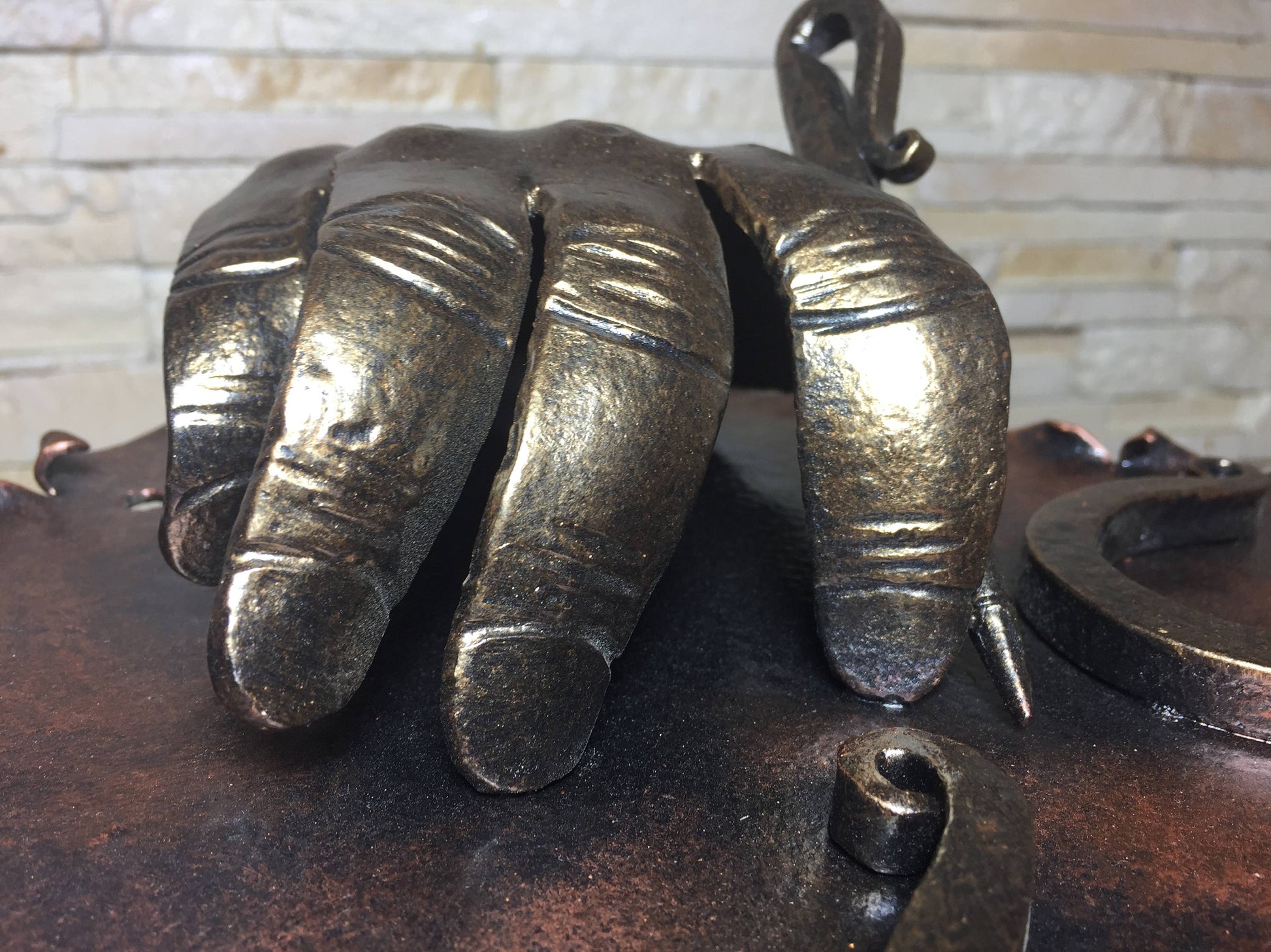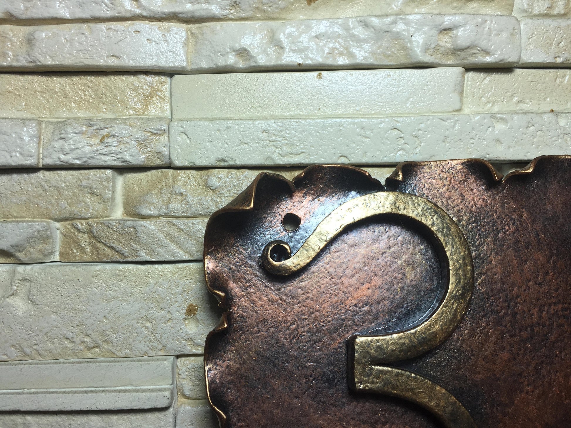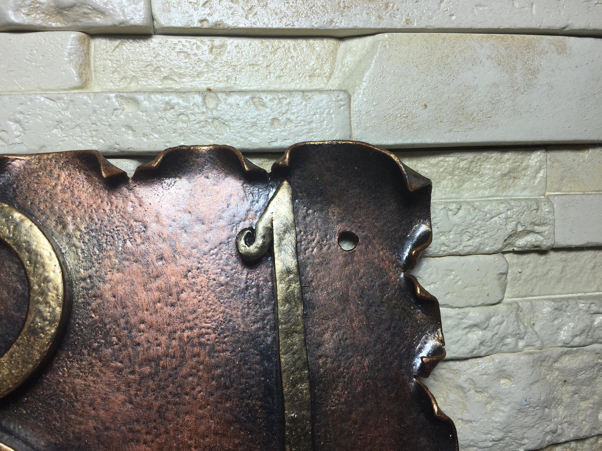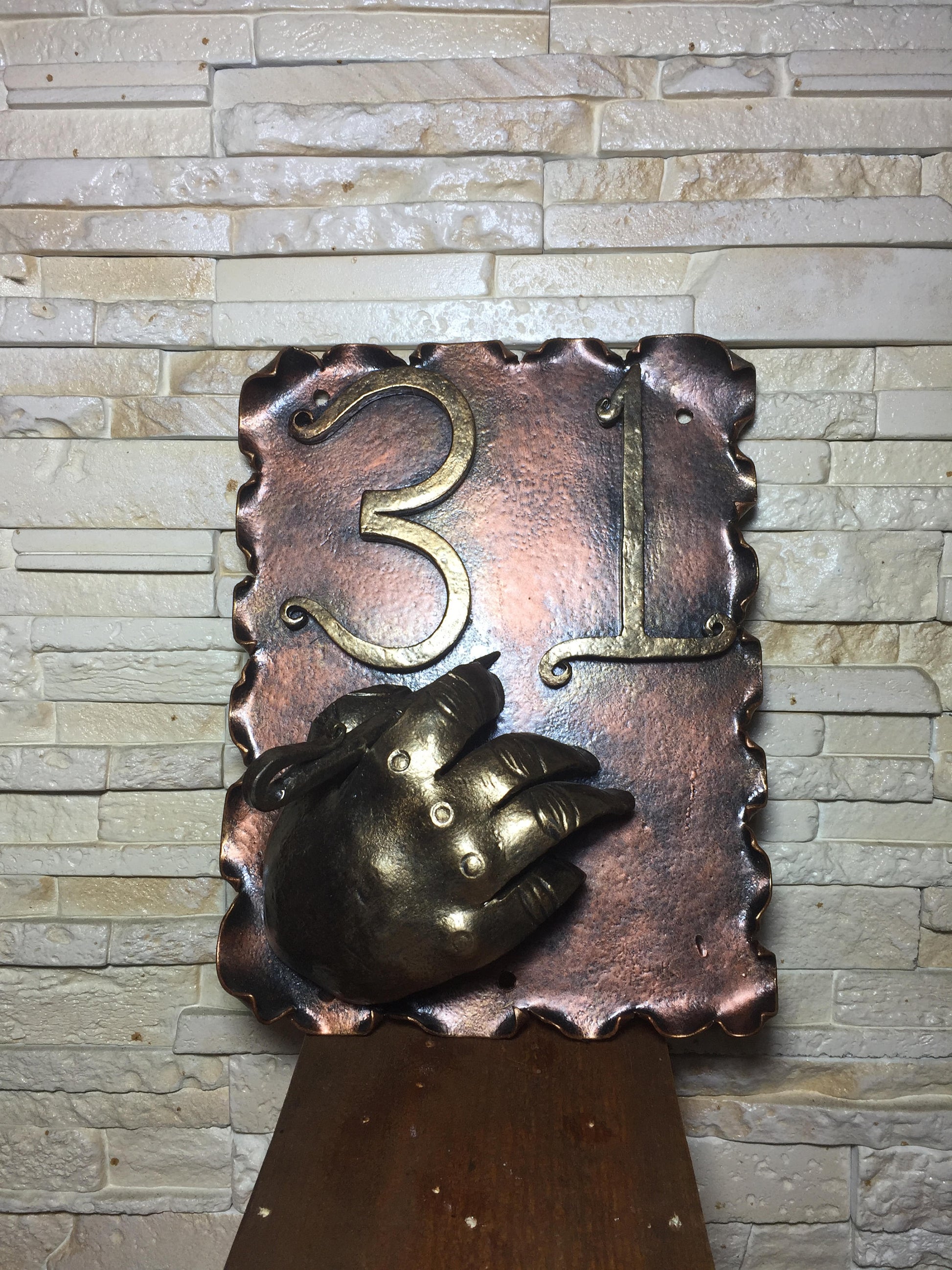 Here is an address sign decor which gives much more beauty to your house and outlines its the exterior features. It is done in a view of a writing hand. It is handmade, art forged. It is a functional piece of art! You will be unique with such an address plaque!