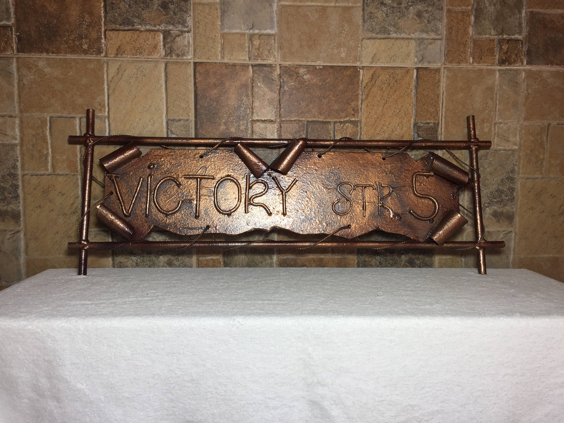 Here is an address sign decor which gives much more beauty to your house and outlines its the exterior features. It is handmade, art forged, lacquered with a special water resistant lacquer and resistant to any outdoor weather conditions. The sign will not rust or stain and therefore will not require any significant maintenance or routine cleaning. Simply wipe clean with a damp non-abrasive cloth.
