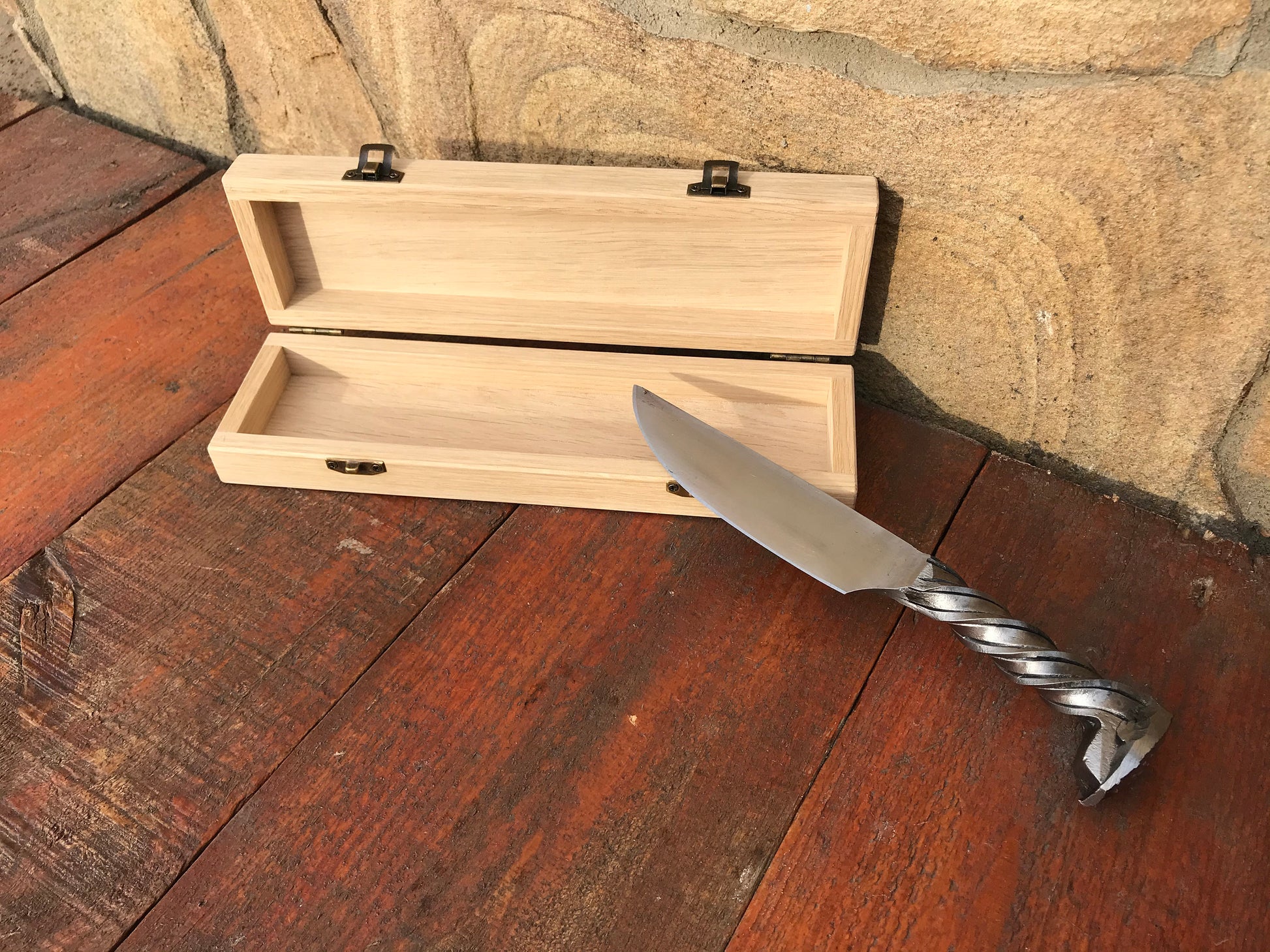 Here is a hand crafted knife (a handle - in a view of small twisted waves) in a wooden gift box (casket). This is a great groomsmen gift, corporate gift, usher gift, groom gift, father of the bride gift, 6th anniversary gift (iron year), 11th anniversary gift (steel year), Father's Day, Christmas gift for a grandfather or any other gifting occasion.