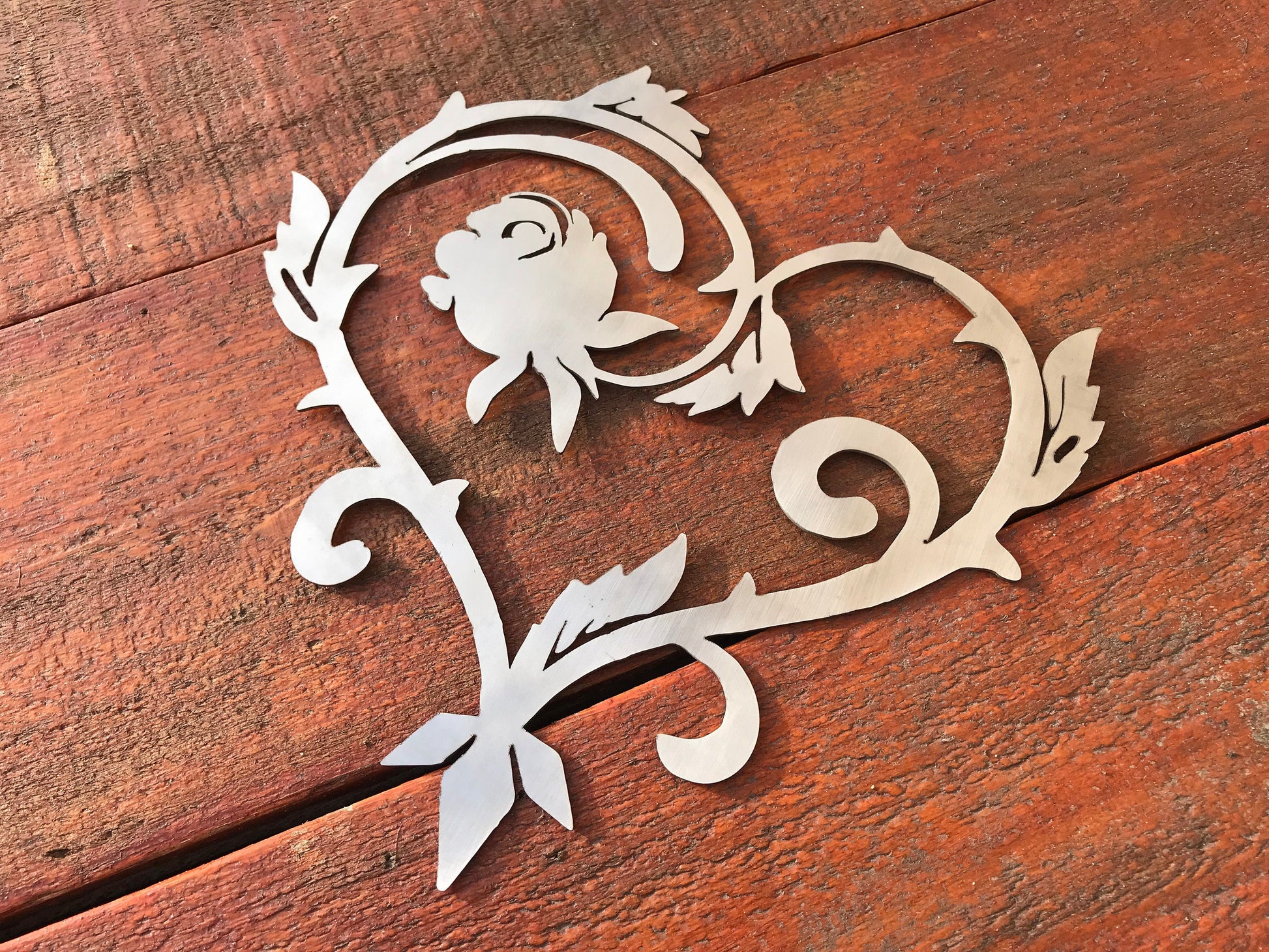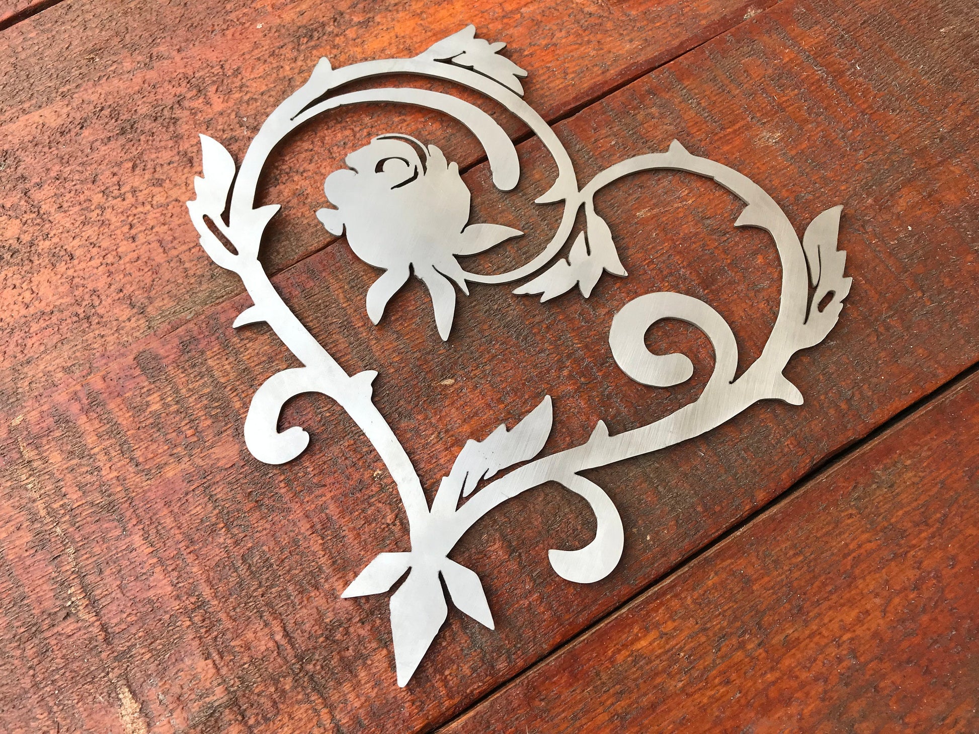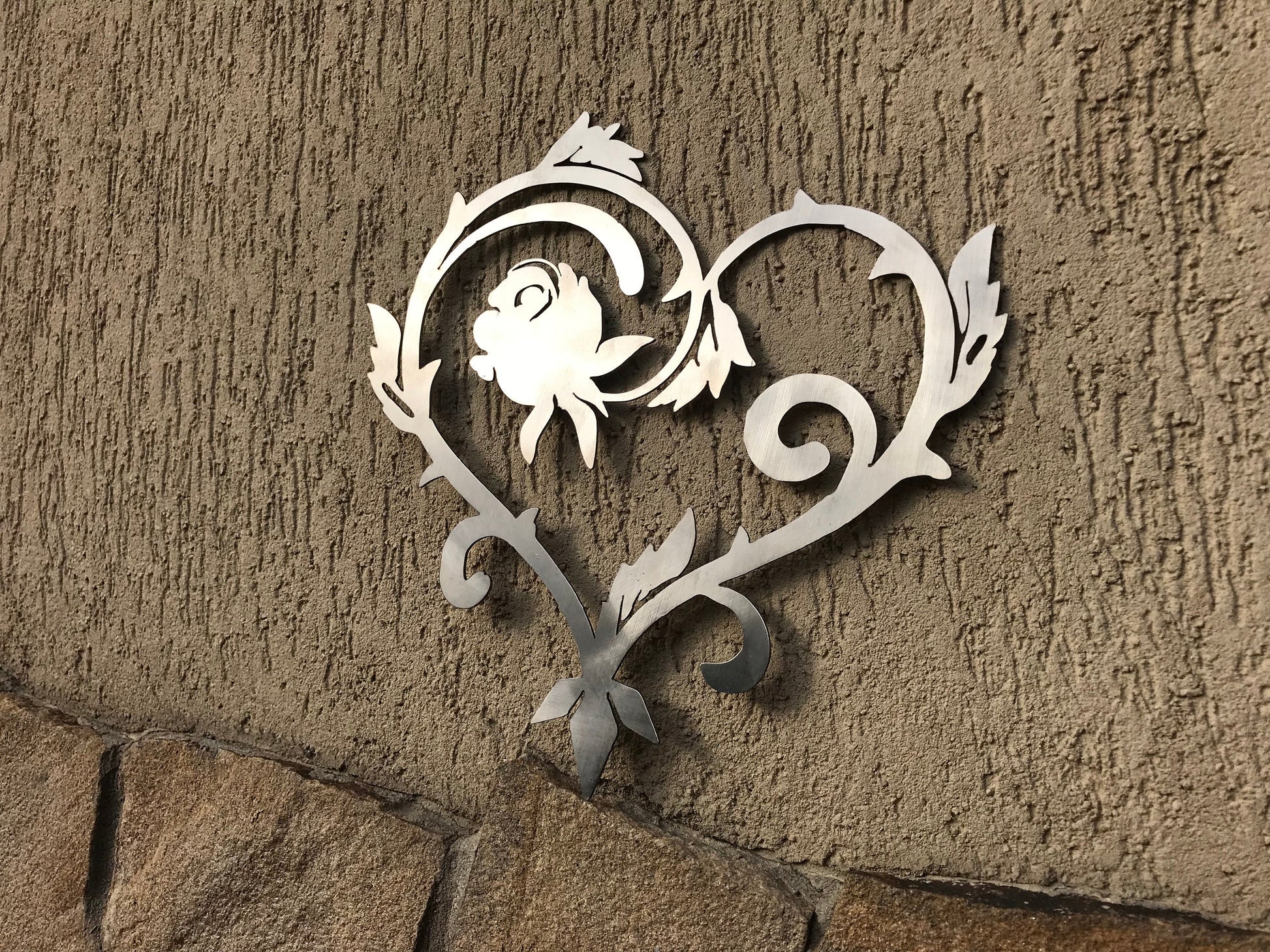Here is a custom heart decor with a rose made of stainless steel. This is a great 11th anniversary gift (steel year, steel anniversary), Christmas gift, engagement gift and a gift for any other gifting occasions.