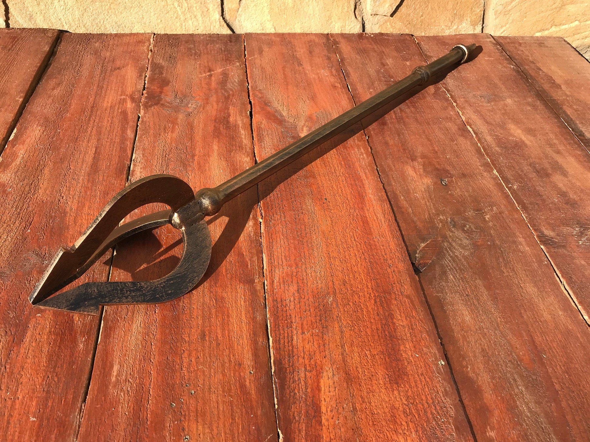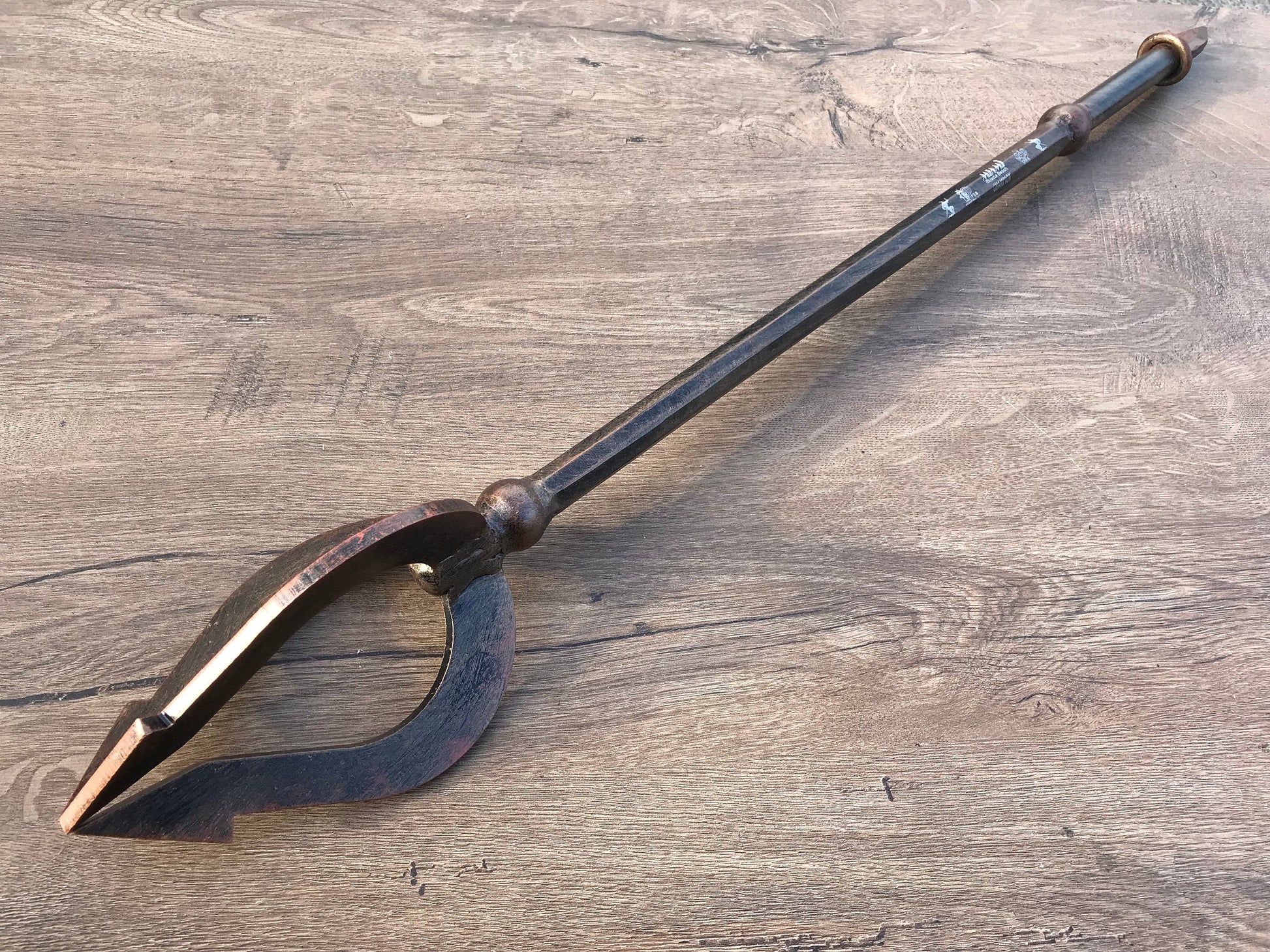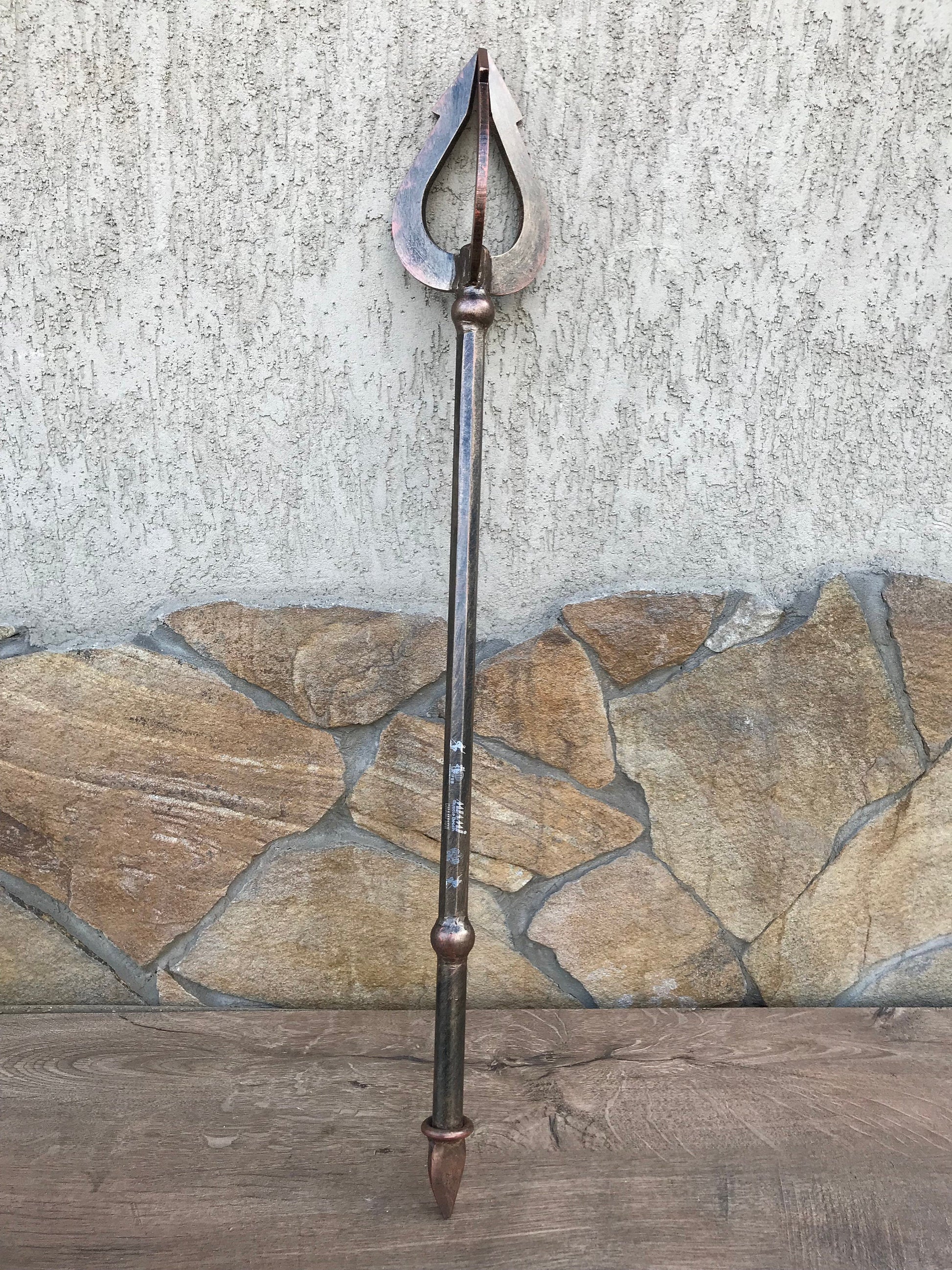 Here is a hand forged trident with an engraved handle. You can use it in a cosplay or as a home decor.