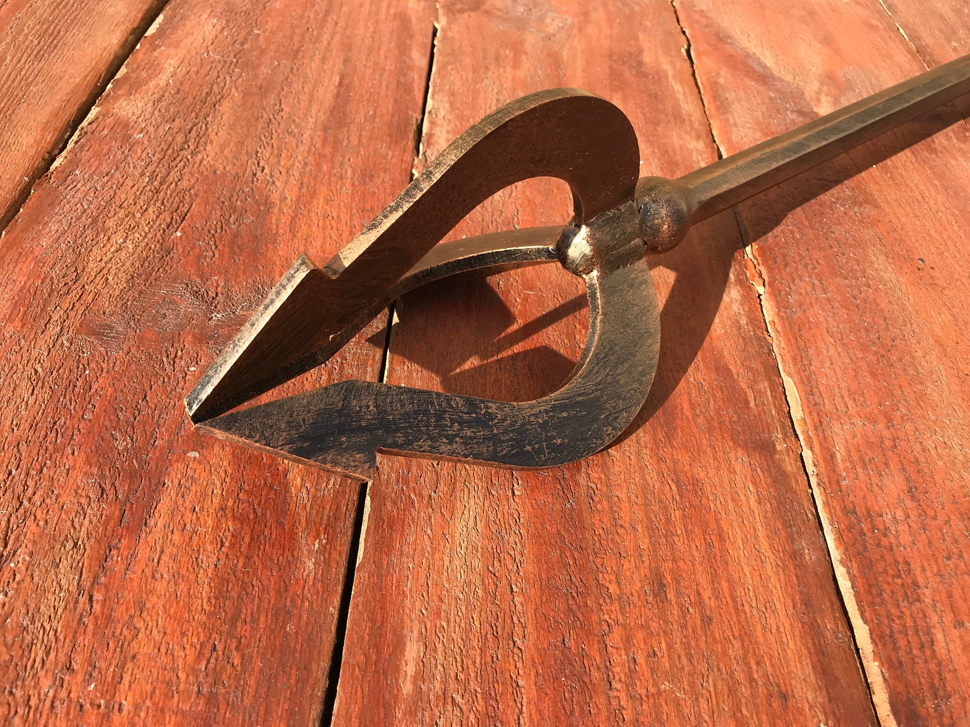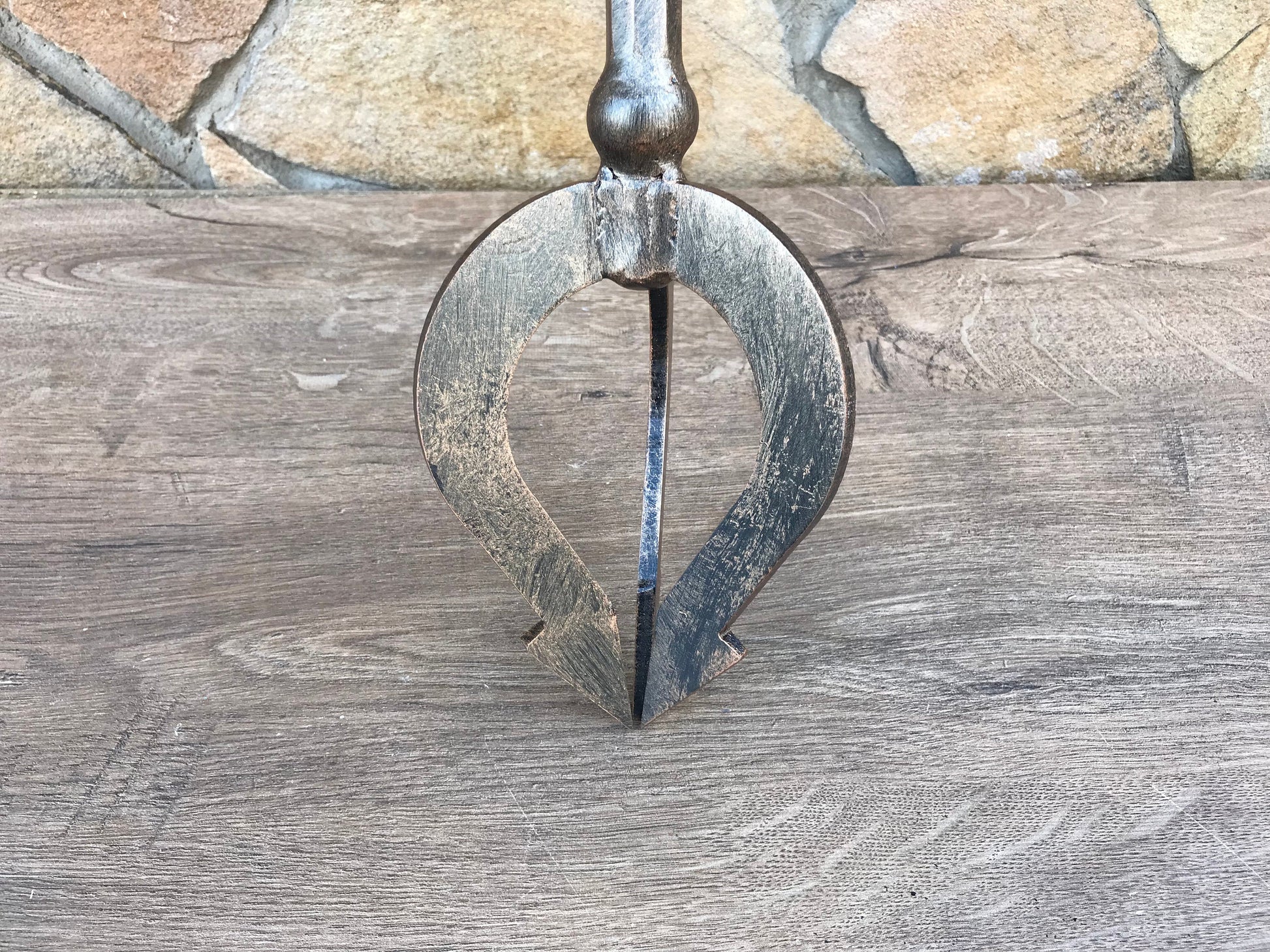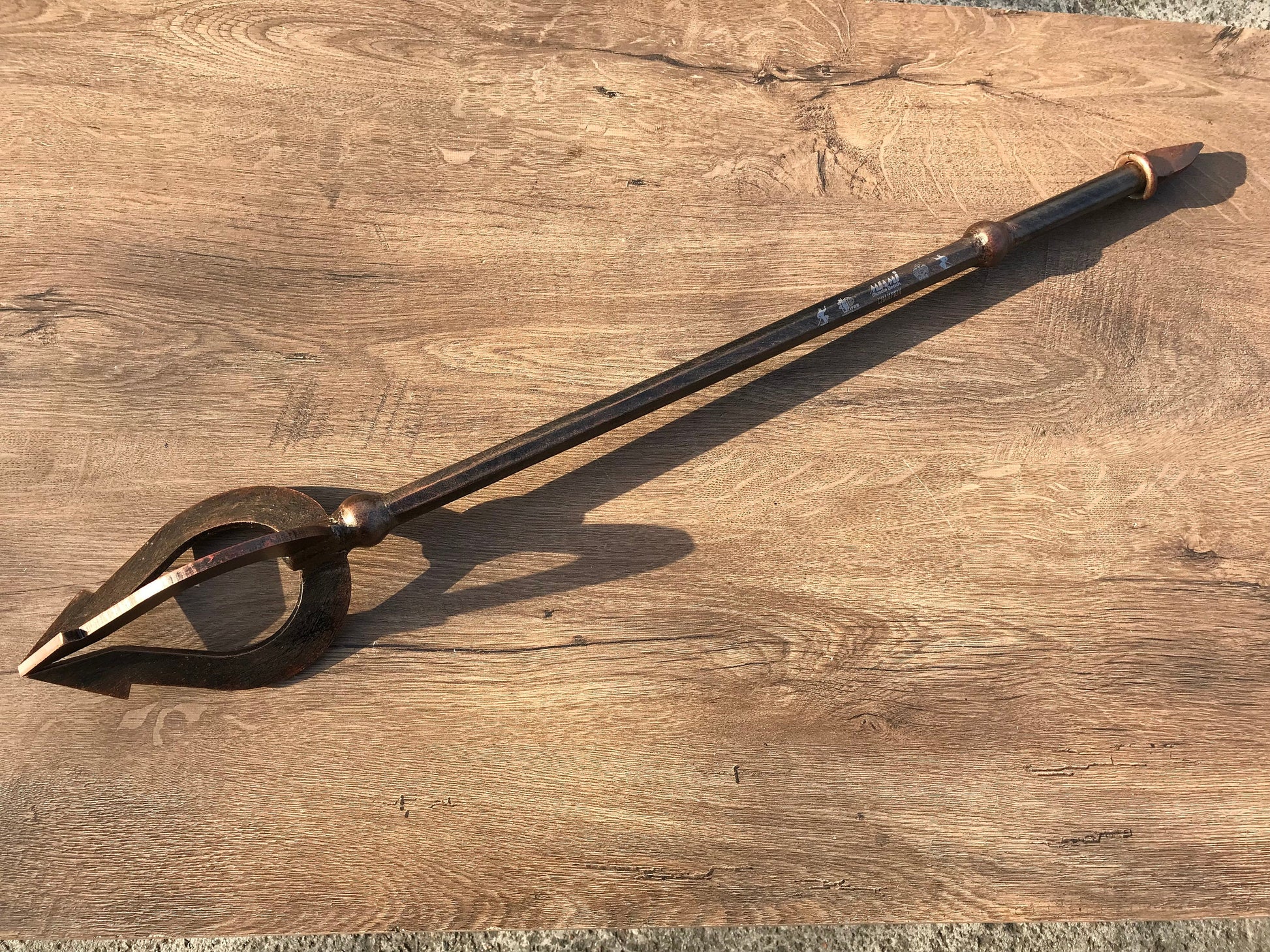 Here is a hand forged trident with an engraved handle. You can use it in a cosplay or as a home decor.