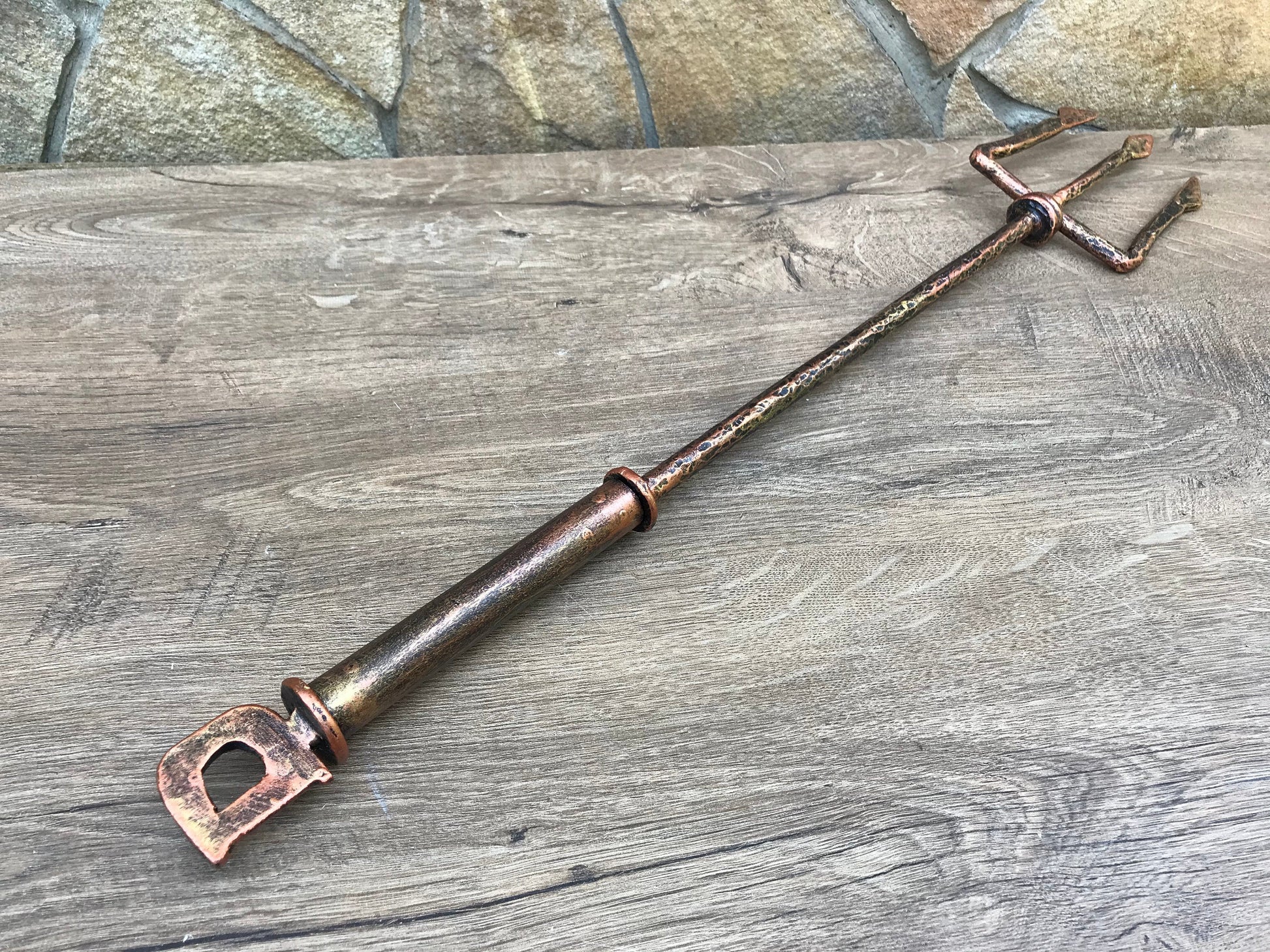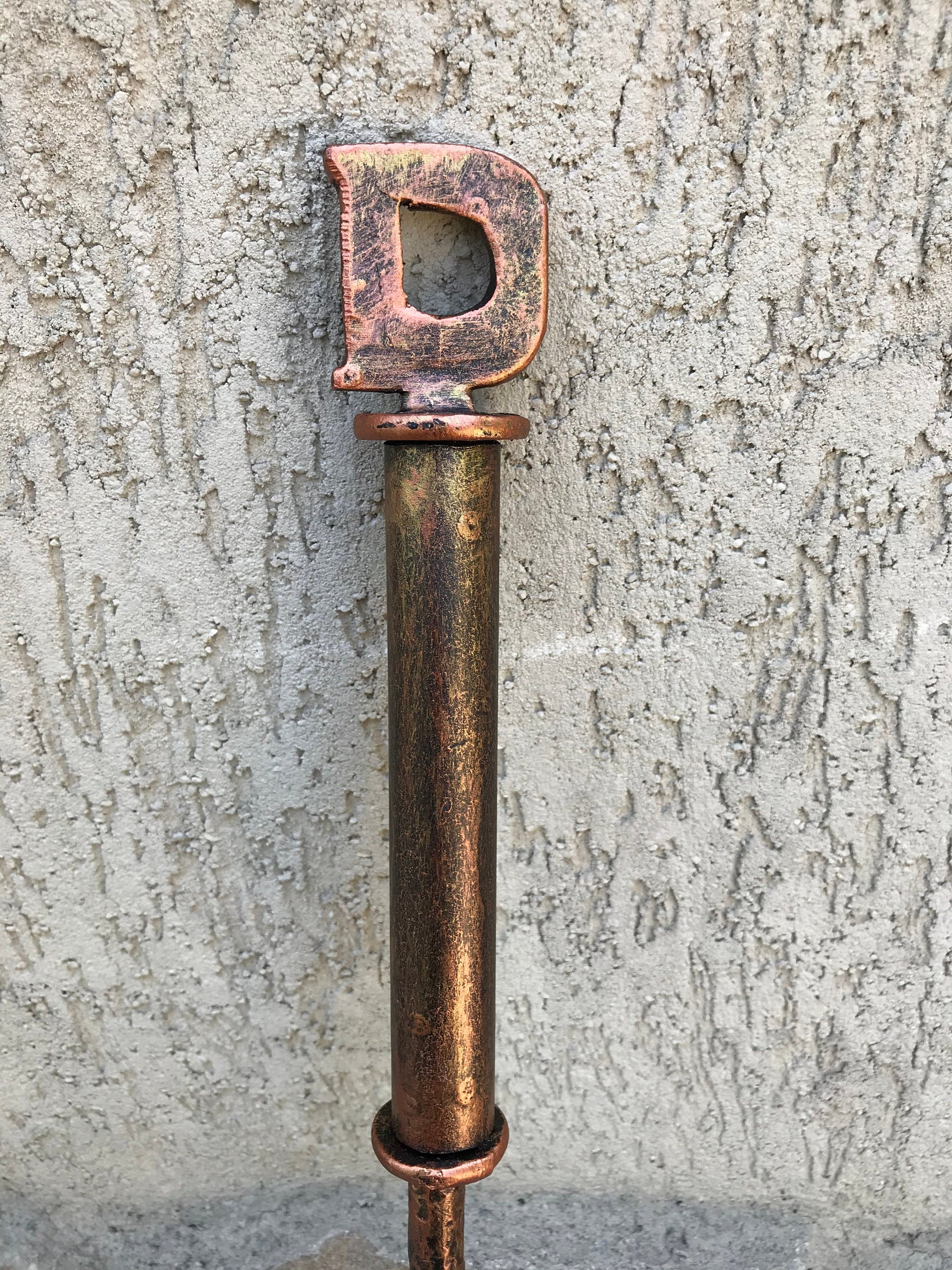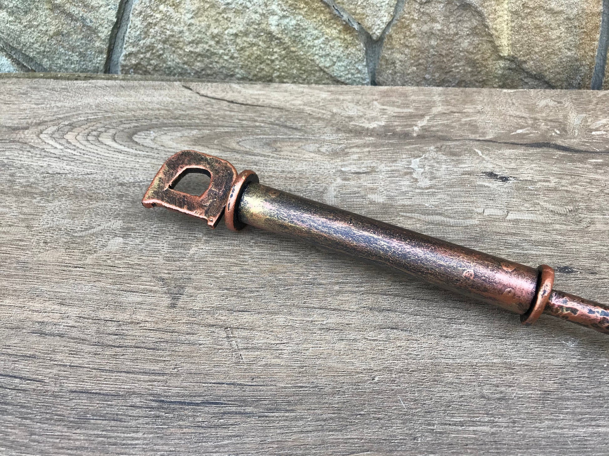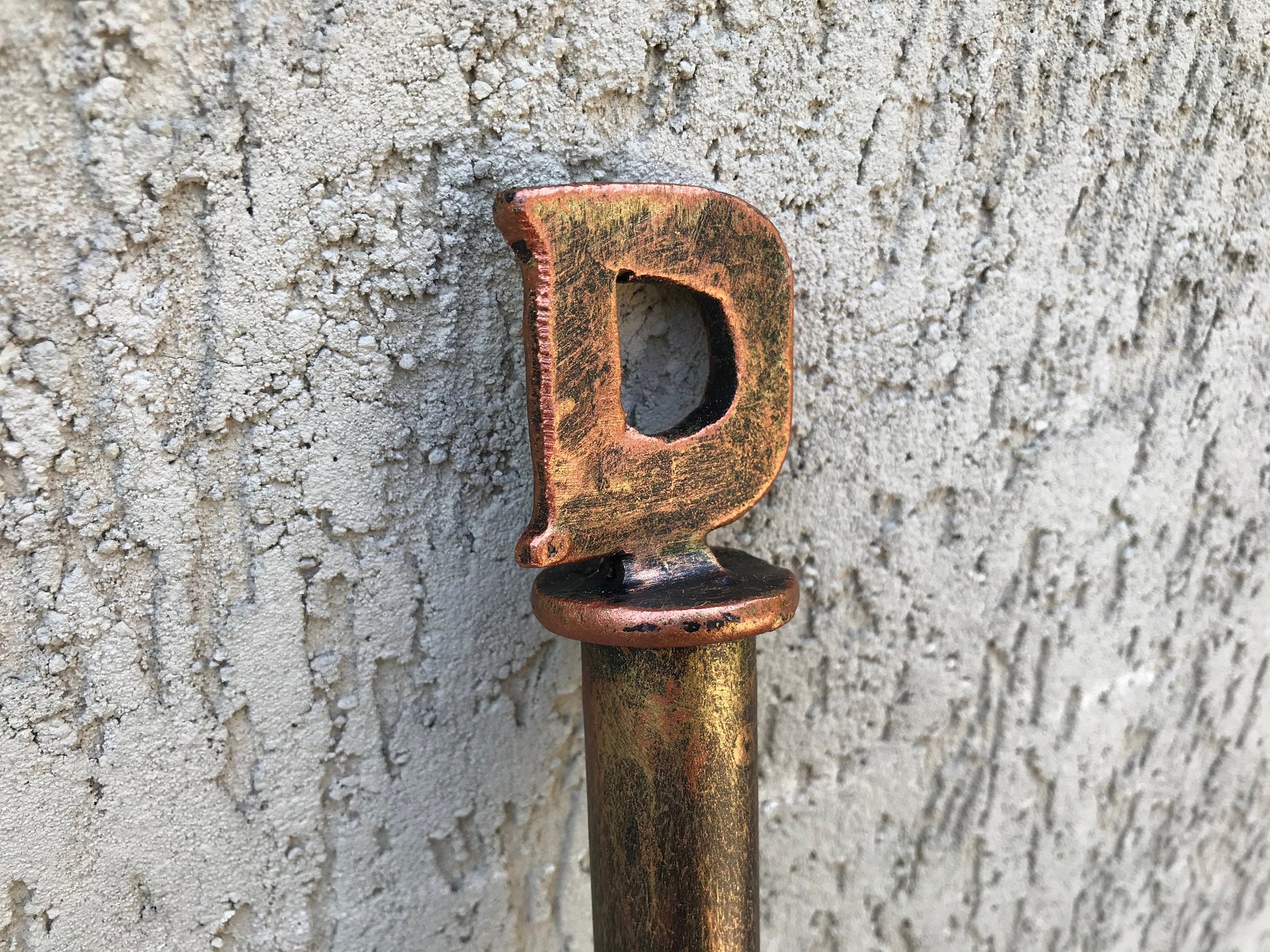 Here is a hand forged trident with one initial on a handle top (any initial can be done). You can use it in a cosplay or as a home decor.