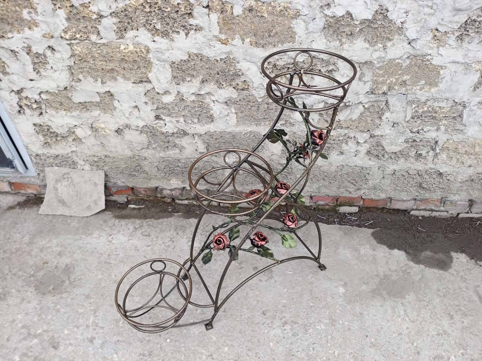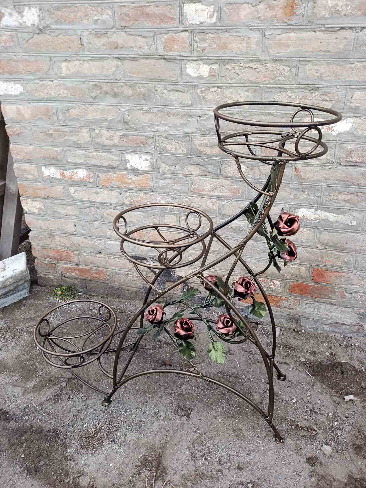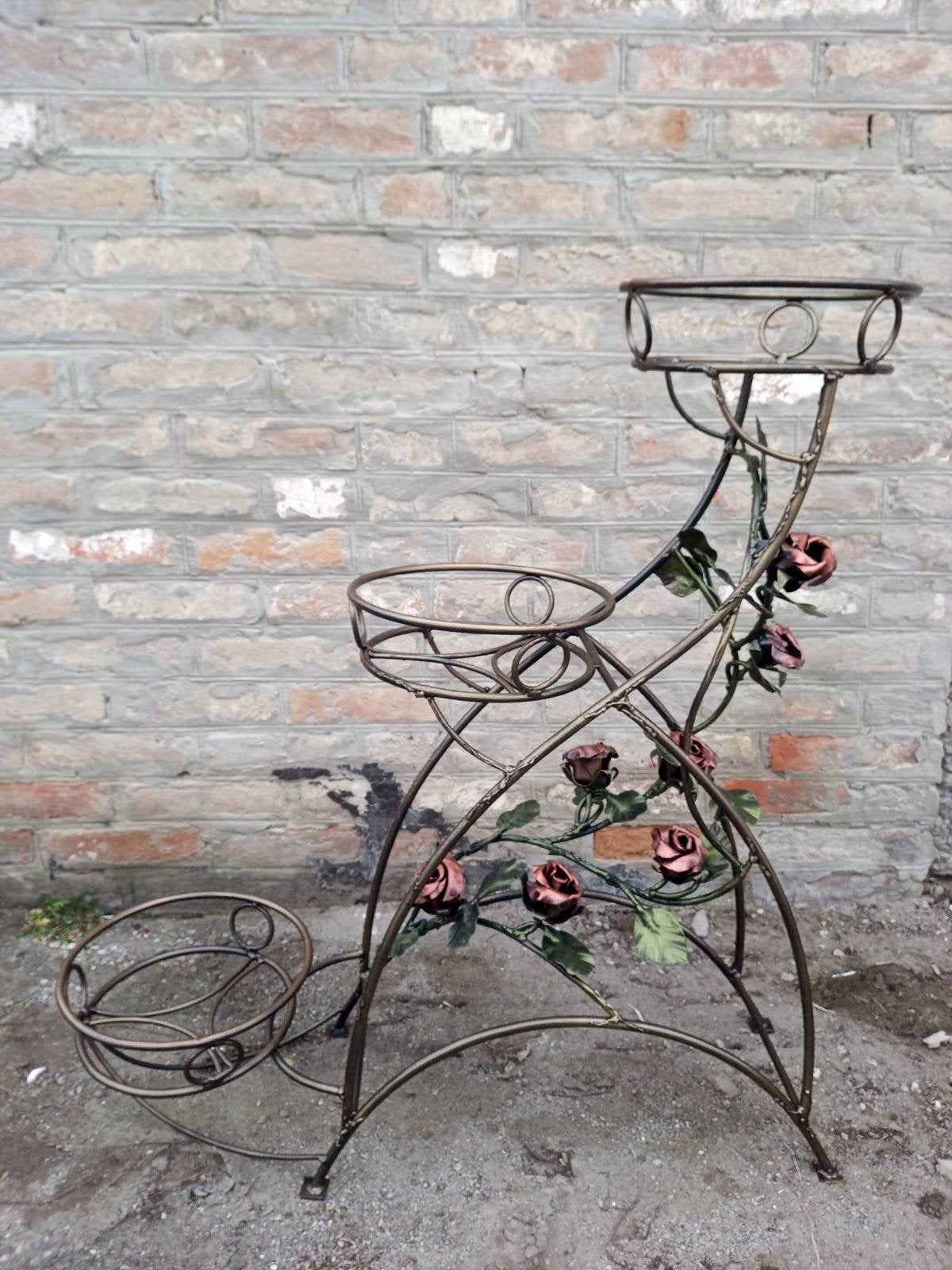 A hand forged stand for house plants with floral decor (hand forged roses) for three flower pots. Perfect piece to display your favorite house plants! It is a very decorative piece of a home interior. It is done in the technique of the artistic forging.