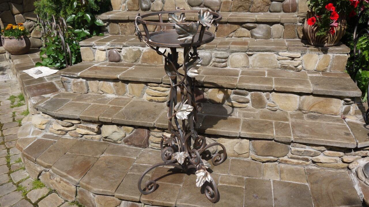 A hand forged plant stand for house plants for one flower pot, with many leaves. Perfect piece to display your favorite house plants! It is a very decorative piece of a home interior. Forged art. Functional piece of art!