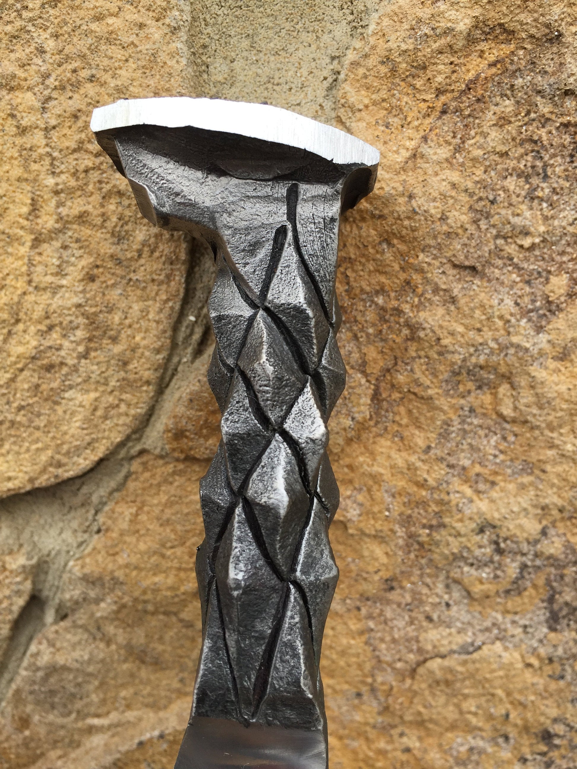 Railroad spike knife is 100% forged by hand and hammer. The knife blade is of hardened steel and it is very hard, the knife is sharpened. Each knife is unique and unrepeatable.