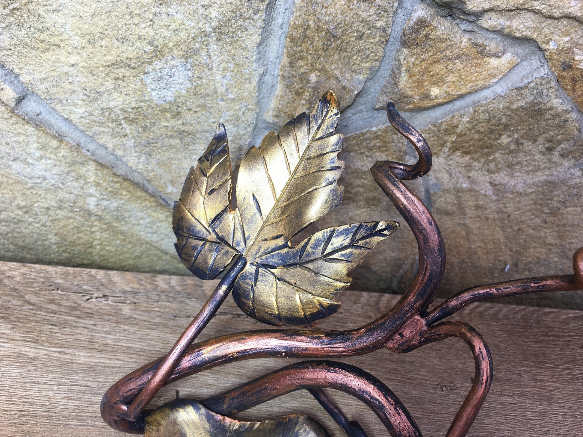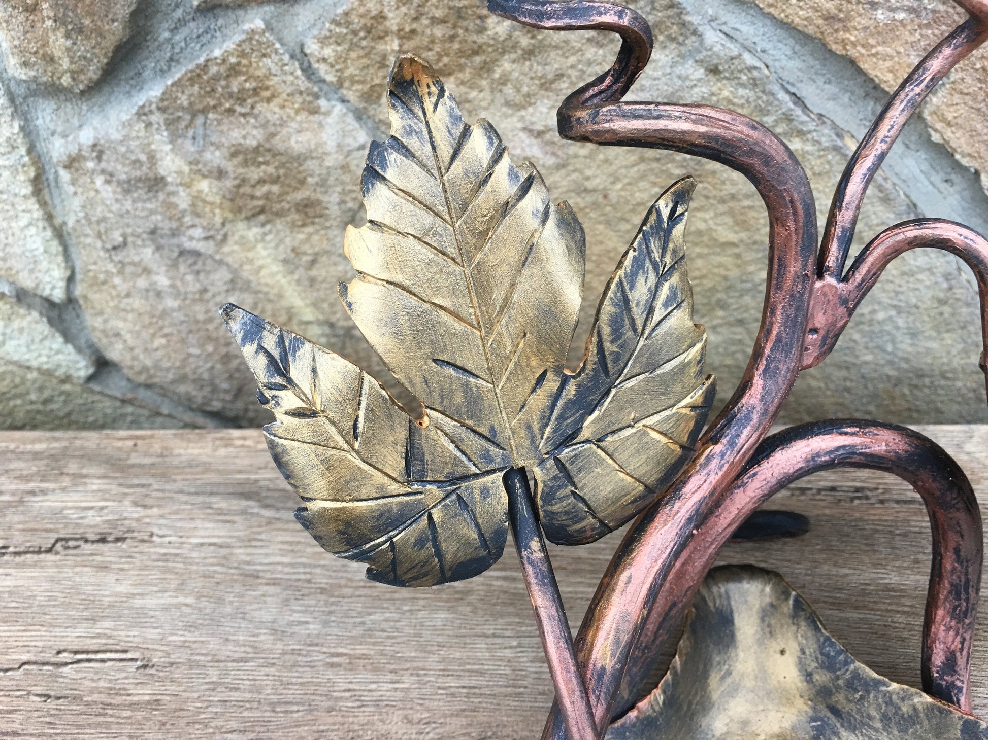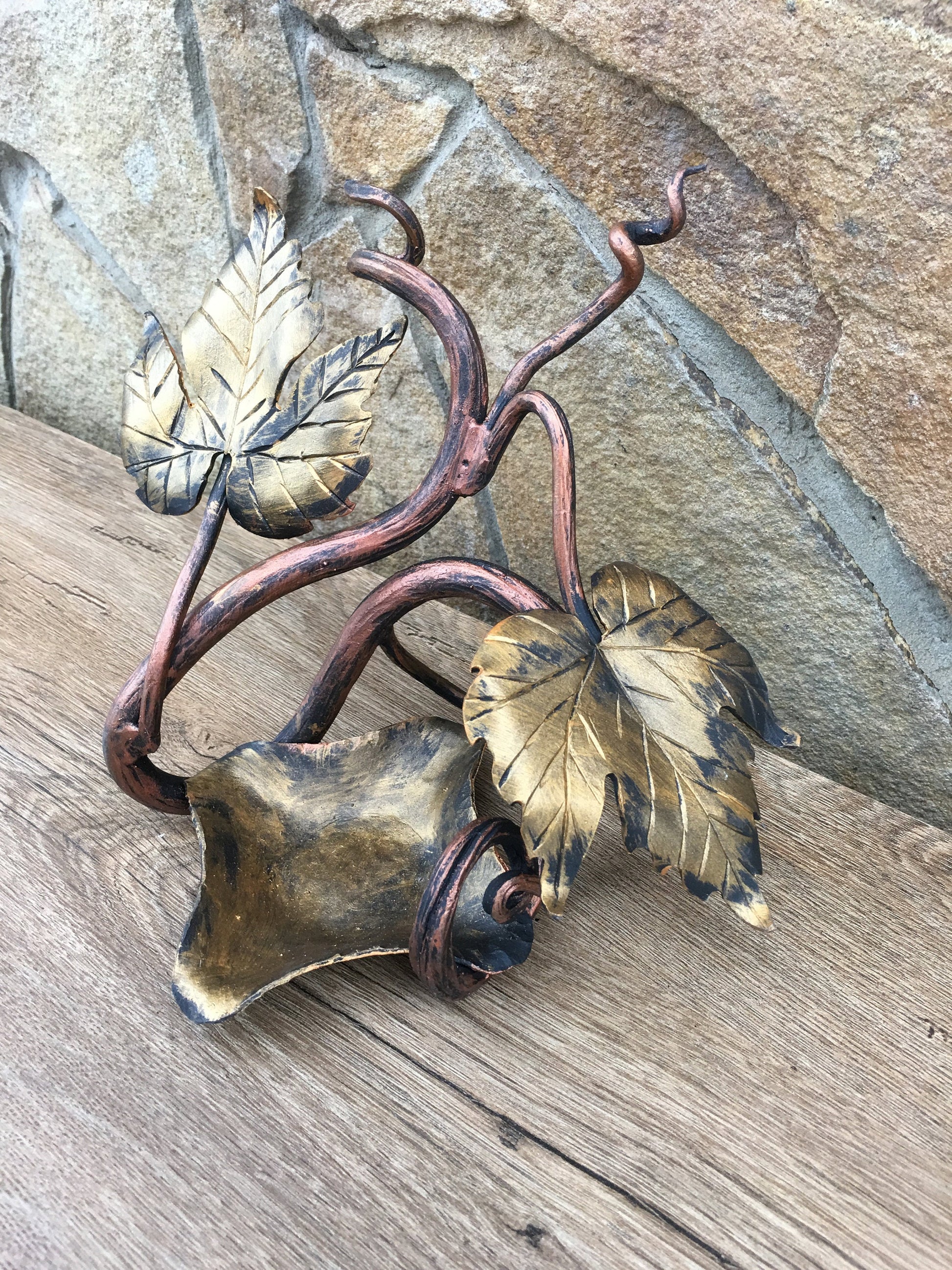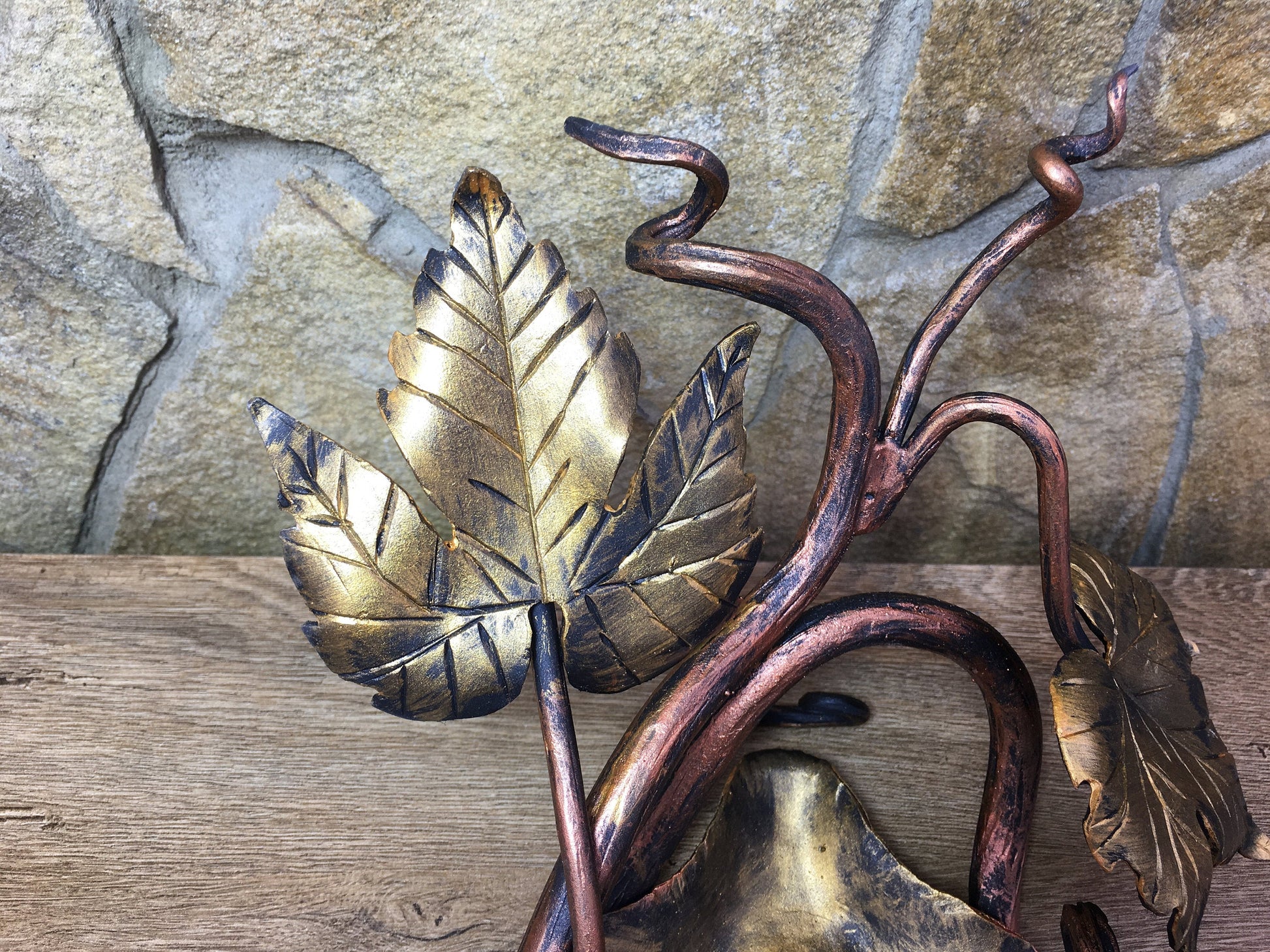 Colour: black covered with copper and gold patina.
