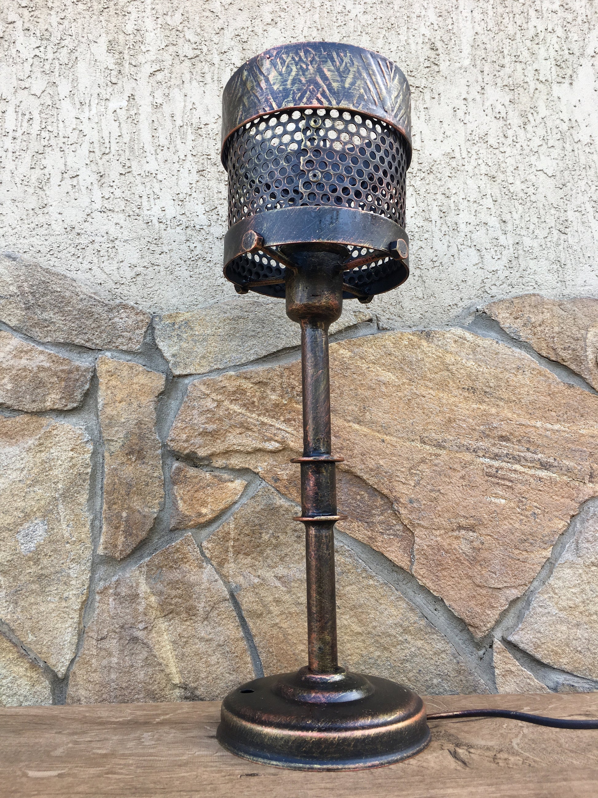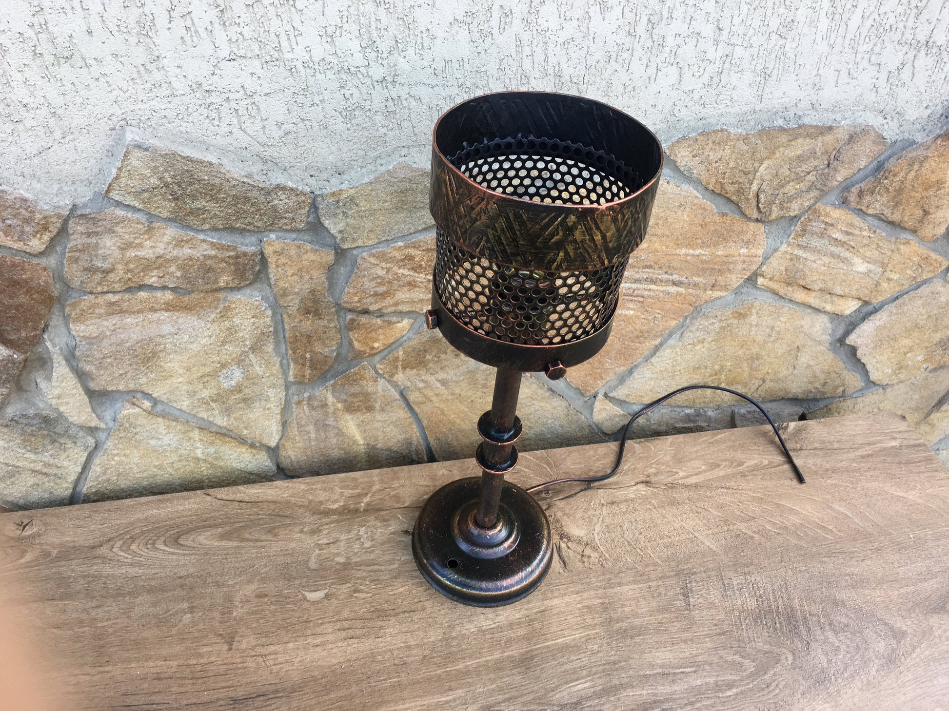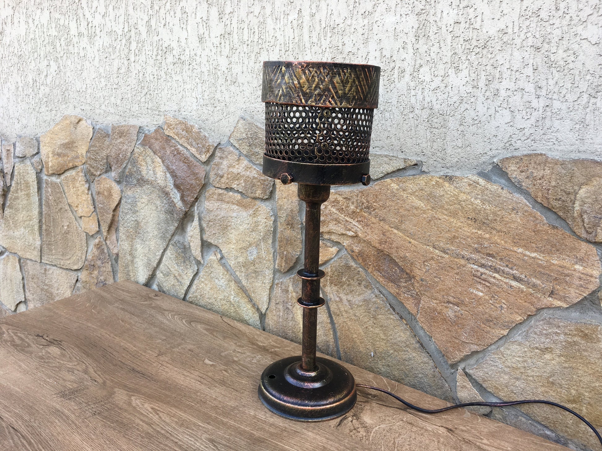A table lamp can be not a usual lamp but a masterpiece which can decorate your home and outlines the features of your home interior/exterior. Here is a hand forged table lamp, hand made, in a view of a torch. You will not find anything similar to it. It is very decorative! It can serve as a lamp for your porch or entryway lamp or inside house lamp. This lantern creates a medieval atmosphere of old viking times!