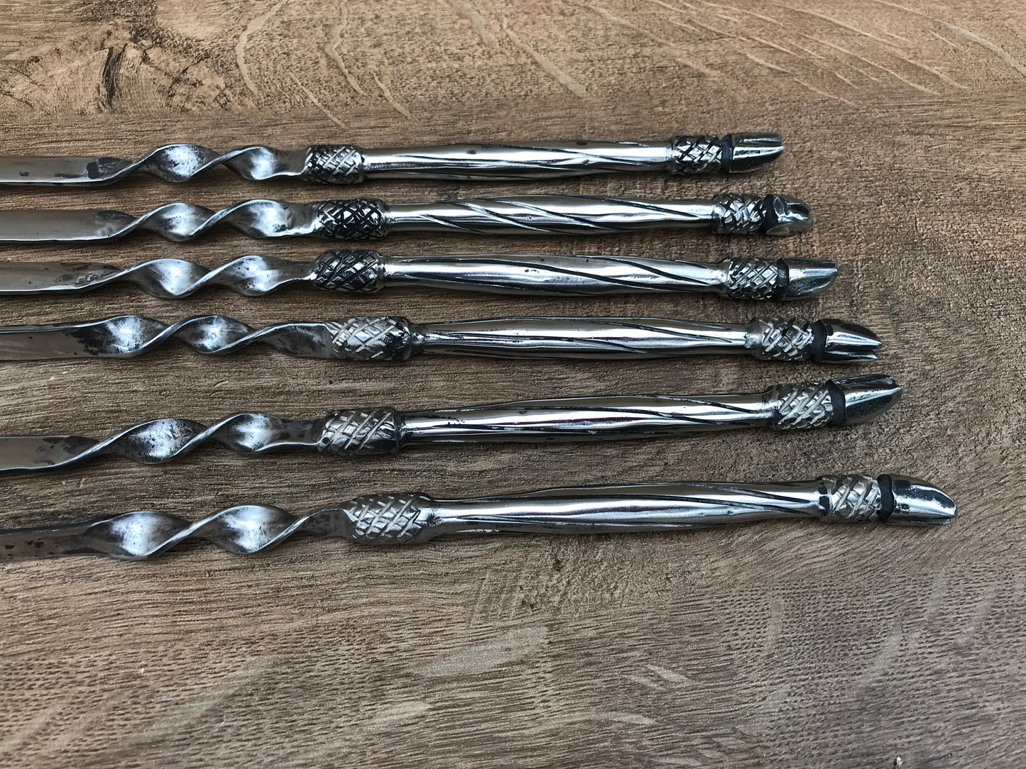 Stainless steel skewers can be not only usual skewers but a masterpiece which give you new feelings and emotions. Here is a hand forged set of skewers (6 pcs) made of stainless steel with very nice handles in a view of a hoof. It is a functional piece of art! .