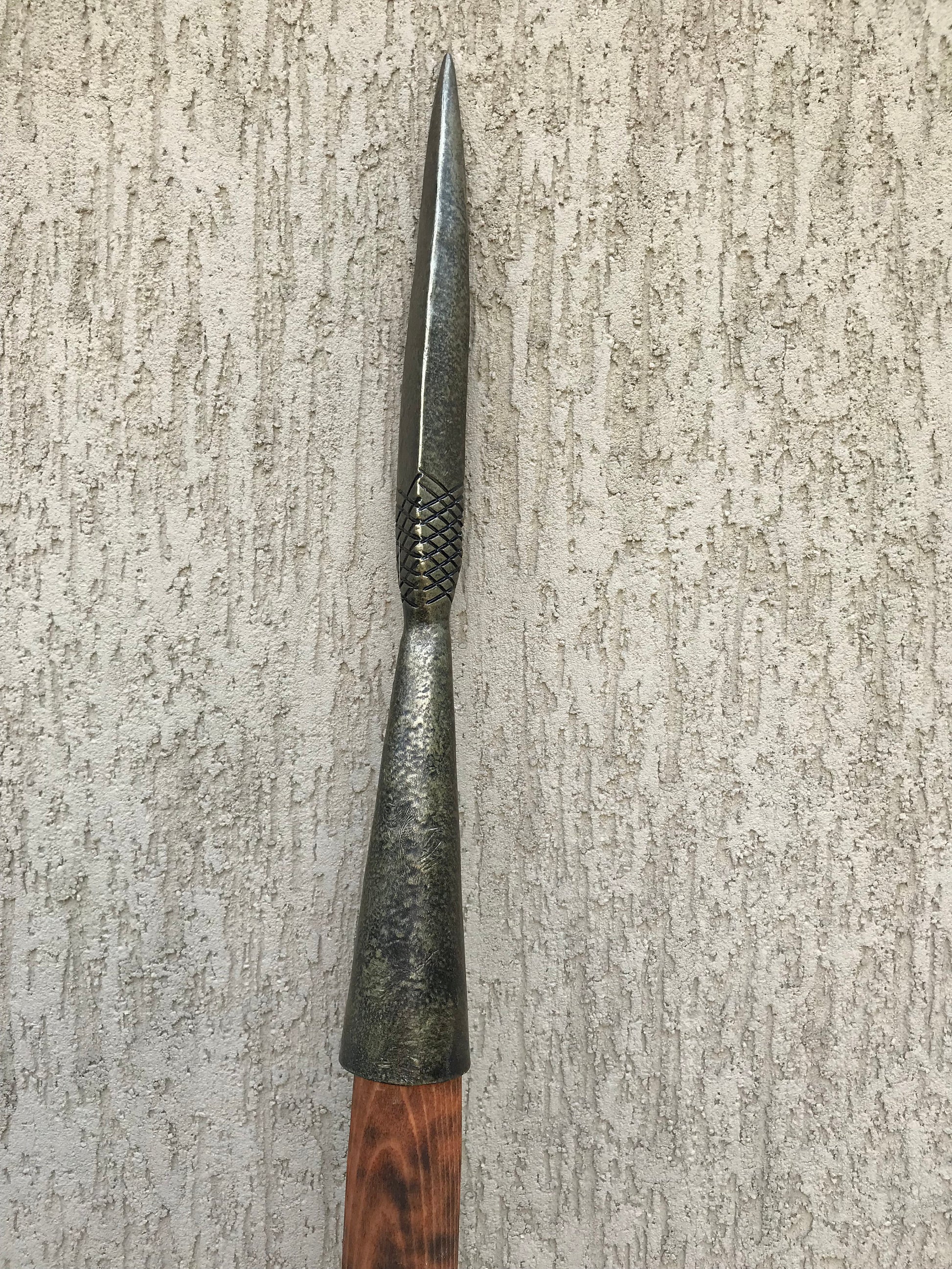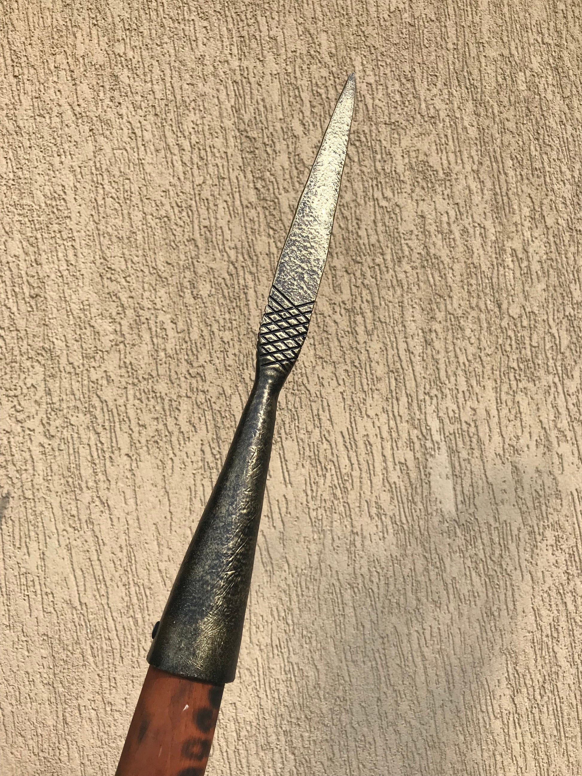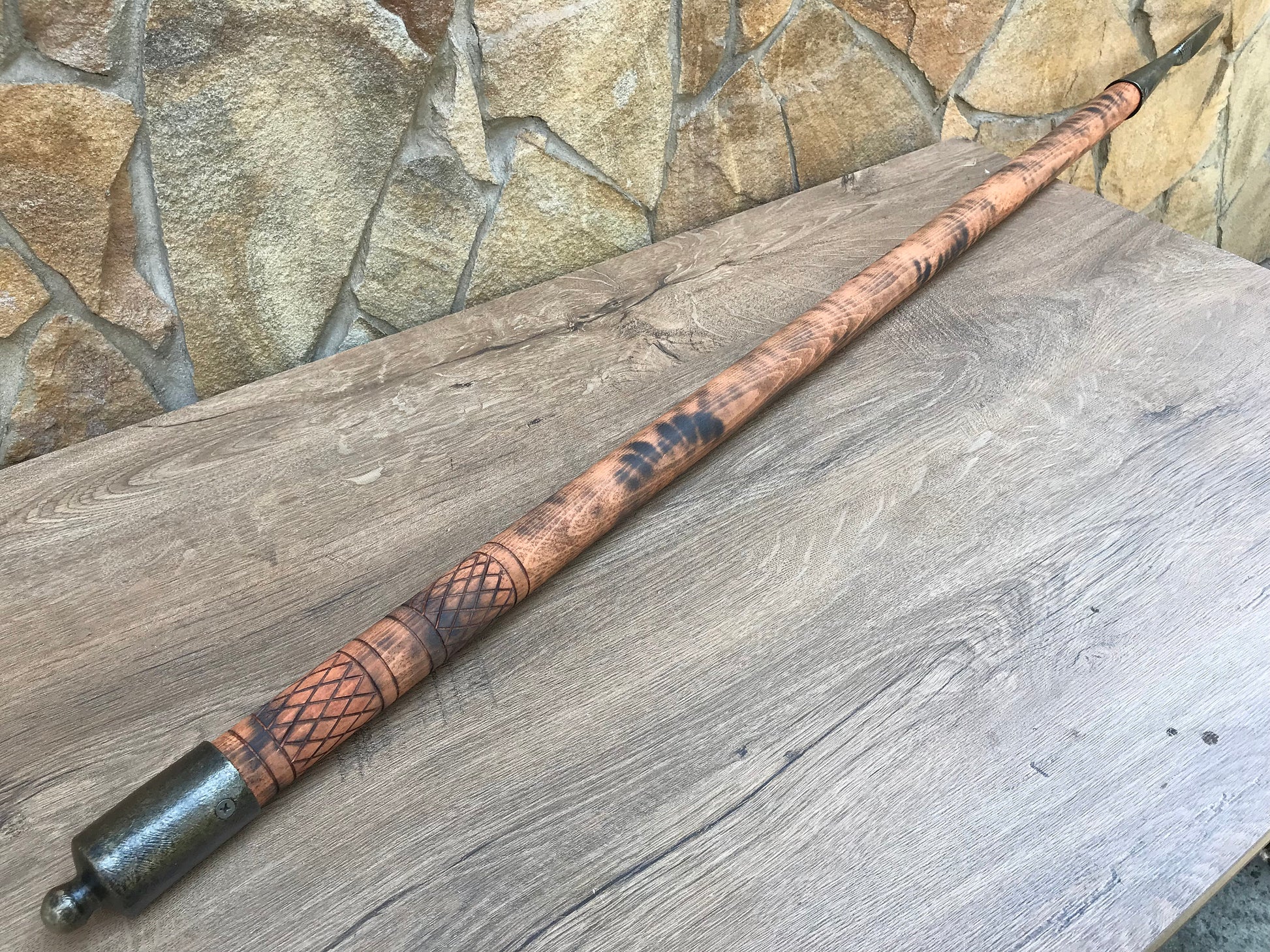Looking for an unusual hand crafted spear? Here it is. A spear with a spear head and end cap.