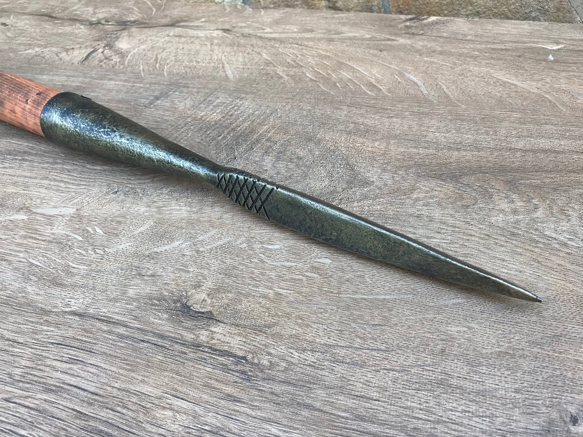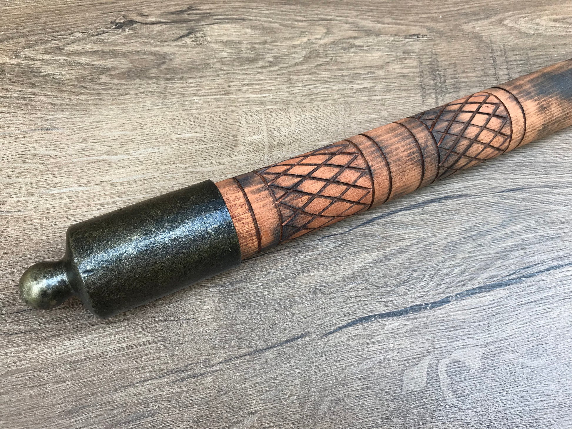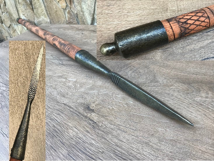 Looking for an unusual hand crafted spear? Here it is. A spear with a spear head and end cap.