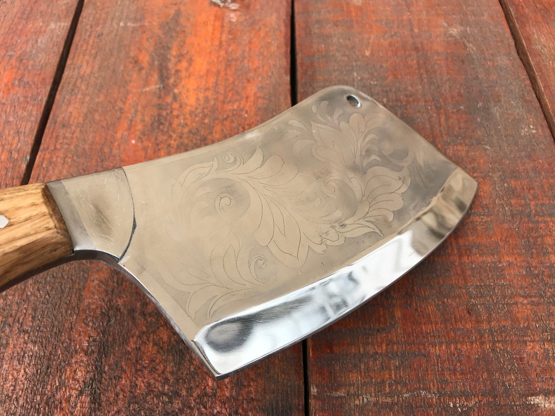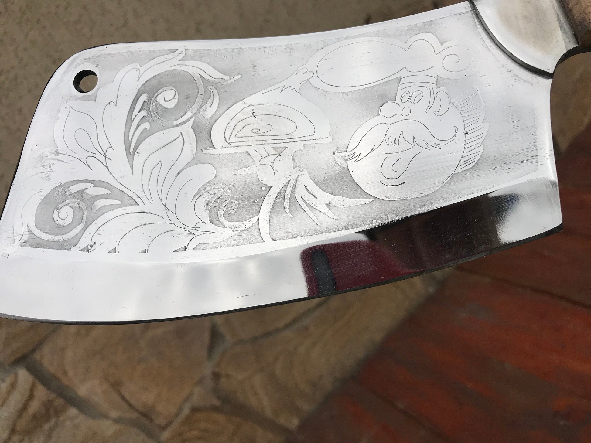 It has a nice engraving from both sides of a blade (on one side - flowers and leaves, on the other side - a cooker holding a plate with a chicken and some flowers) . It looks very decorative and it is a universal cool gift! It will be your best kitchen knife!