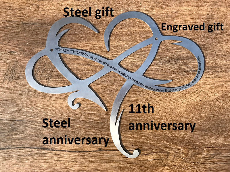 Steel gift, 11 year anniversary, 11th anniversary, engraved steel gift, infinity sign,steel anniversary gift,steel heart,steel infinity sign