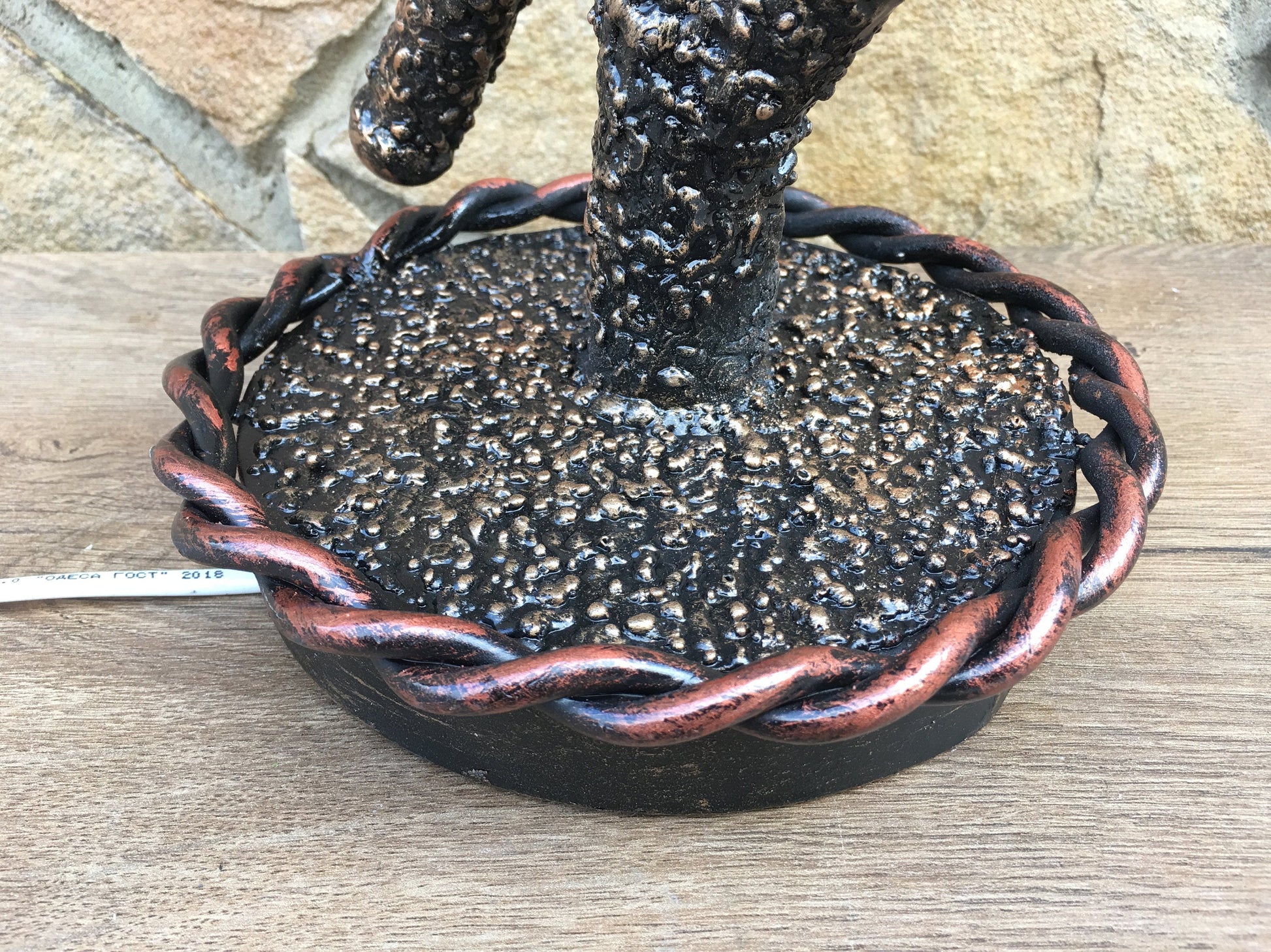 A table lamp can be not a usual lamp but a masterpiece which can decorate your home and outlines the features of your home interior. Here is a hand forged table lamp, hand made. It is done in a view of branches with leaves.