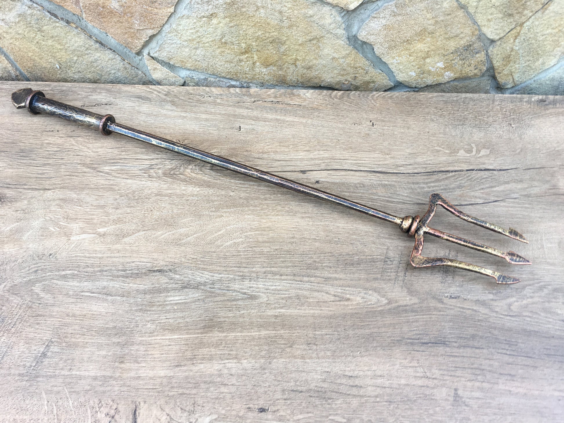 Here is a hand forged trident. You can use it in a cosplay or as a home decor.
