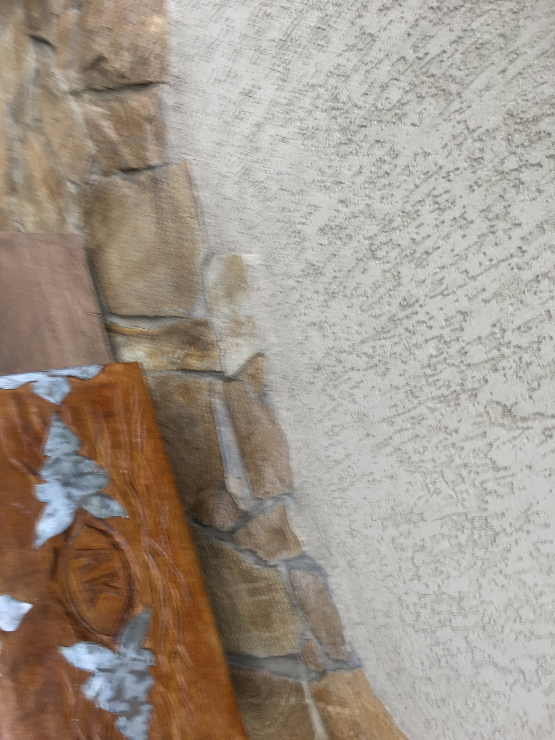 There is a leather under the axe head and a leather rope on the handle (the rope goes via a copper pipe). The carved stripes on the handle with cherry color makes it beautiful. It looks awesome in such a color with such a texture of the axe head!