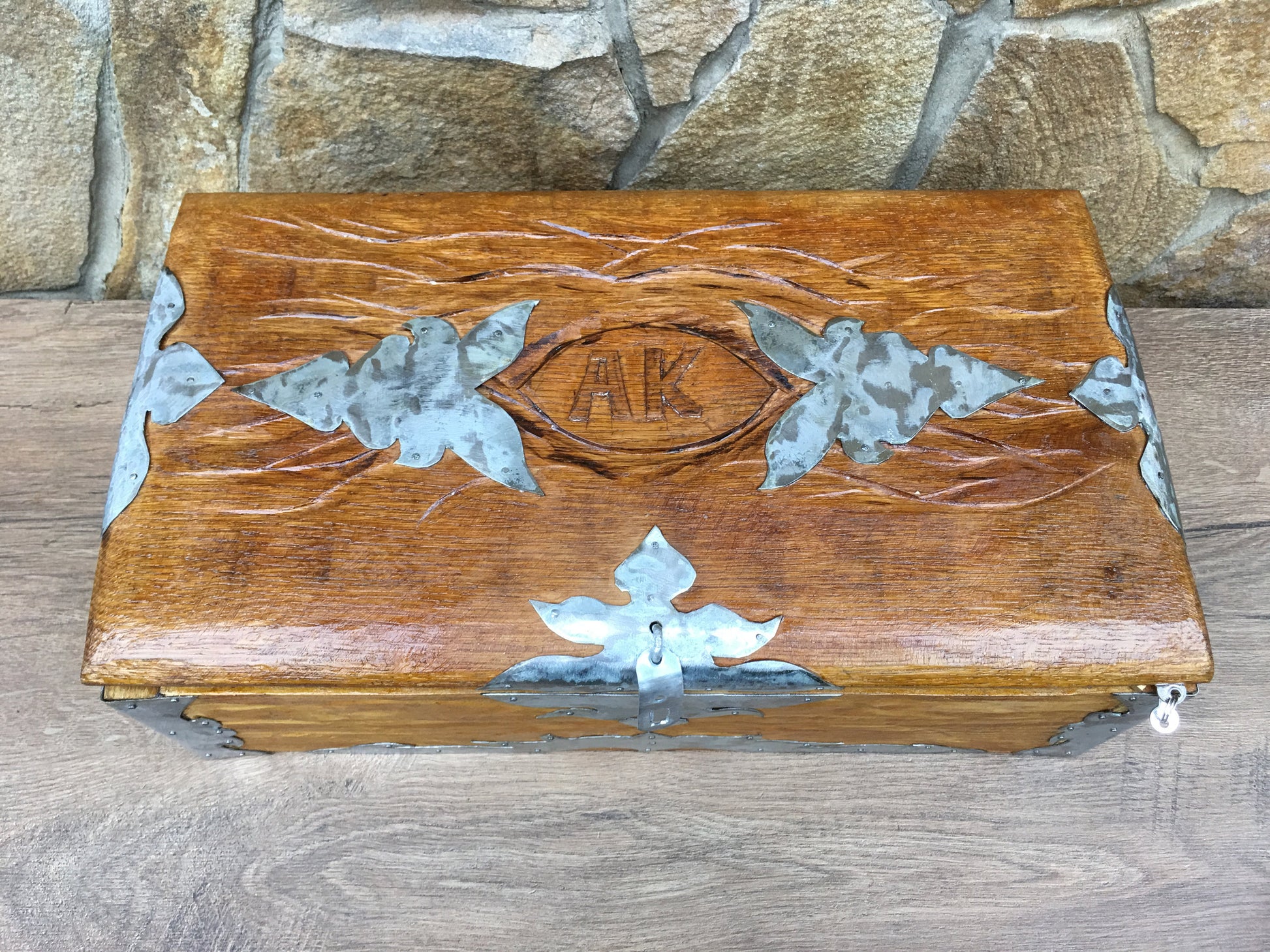 There are two initials on the top of a wooden box (here can be your 2-3 initials).