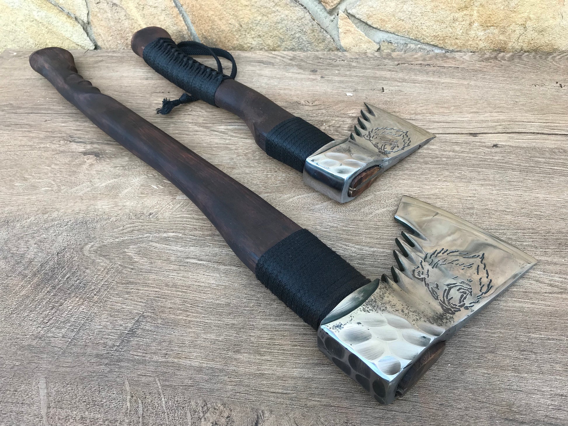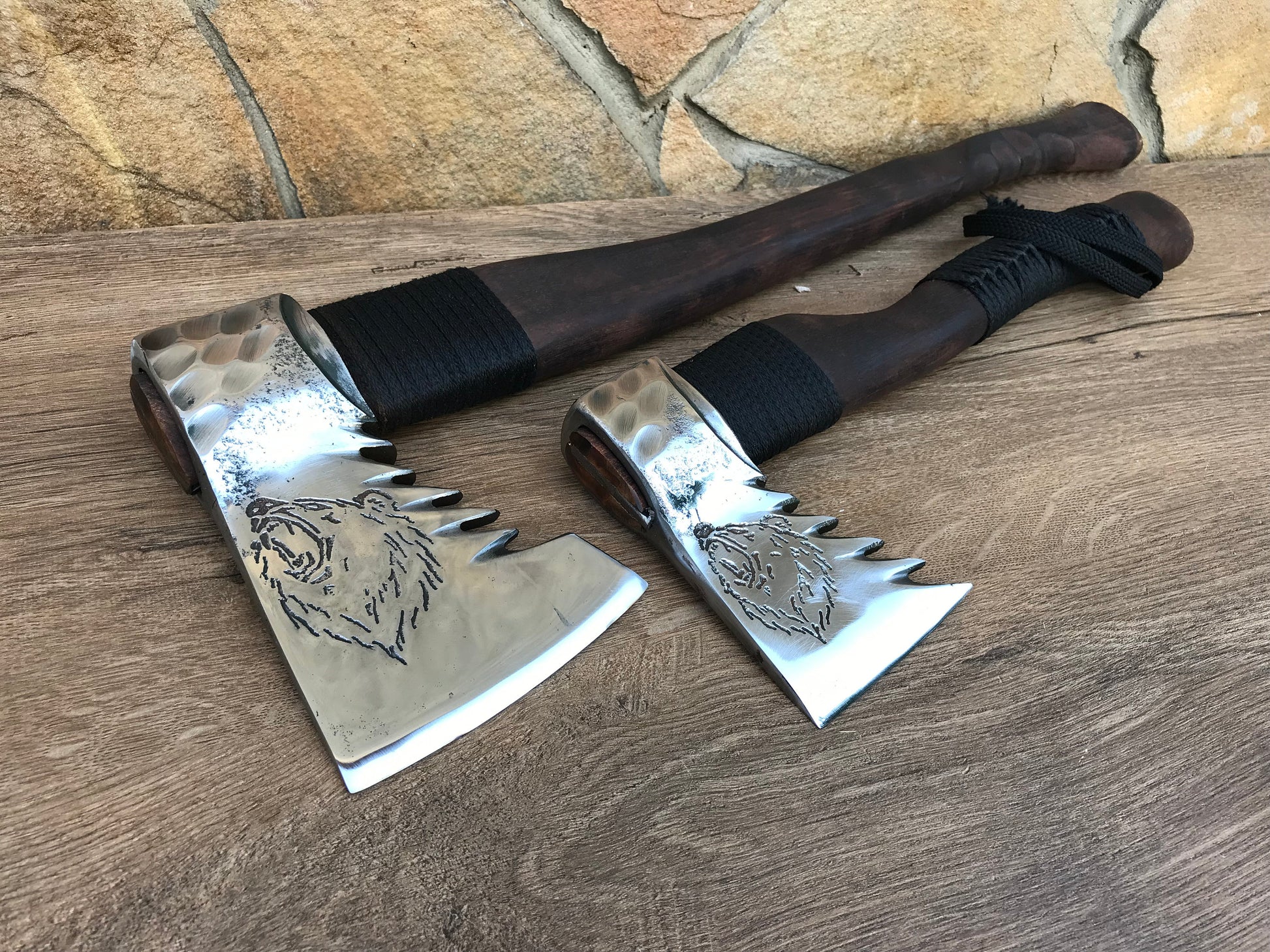 Looking for an unusual hand forged axe? Here it is! A set of two axes (bigger axe and smaller axe).