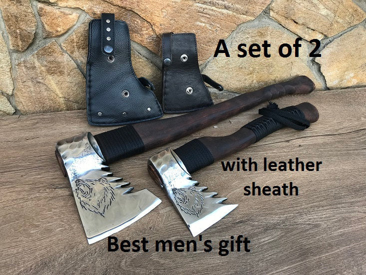 Viking axe, leather sheath, his birthday gift,mens anniversary gift, gift for dad, gift for men, Christmas gift, Fathers day gift, bear, axe