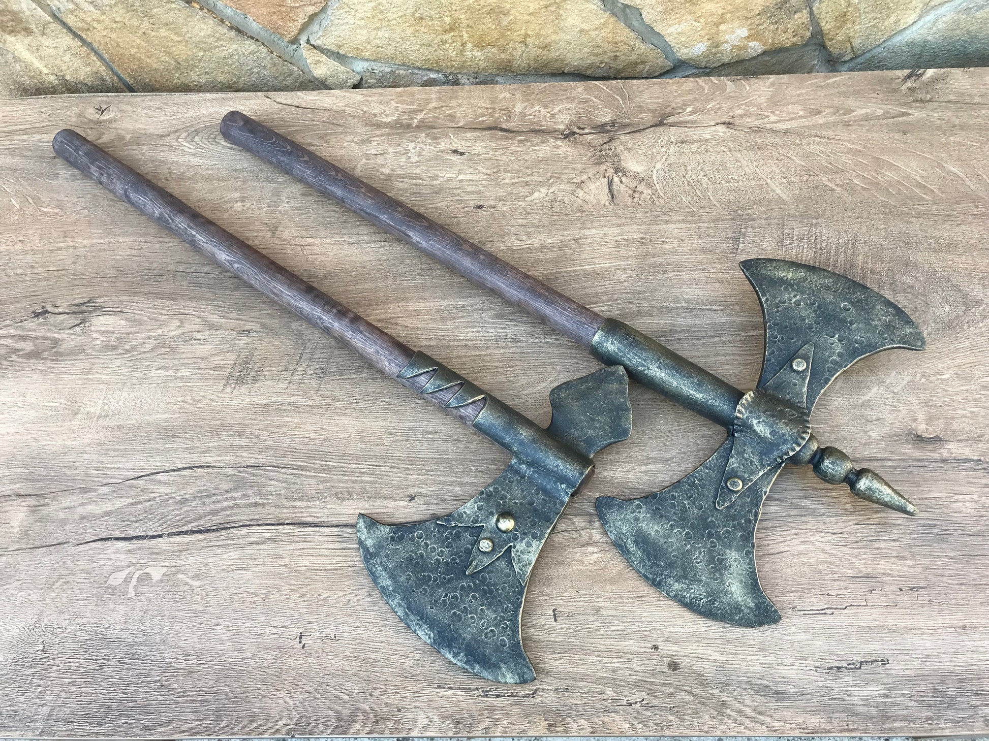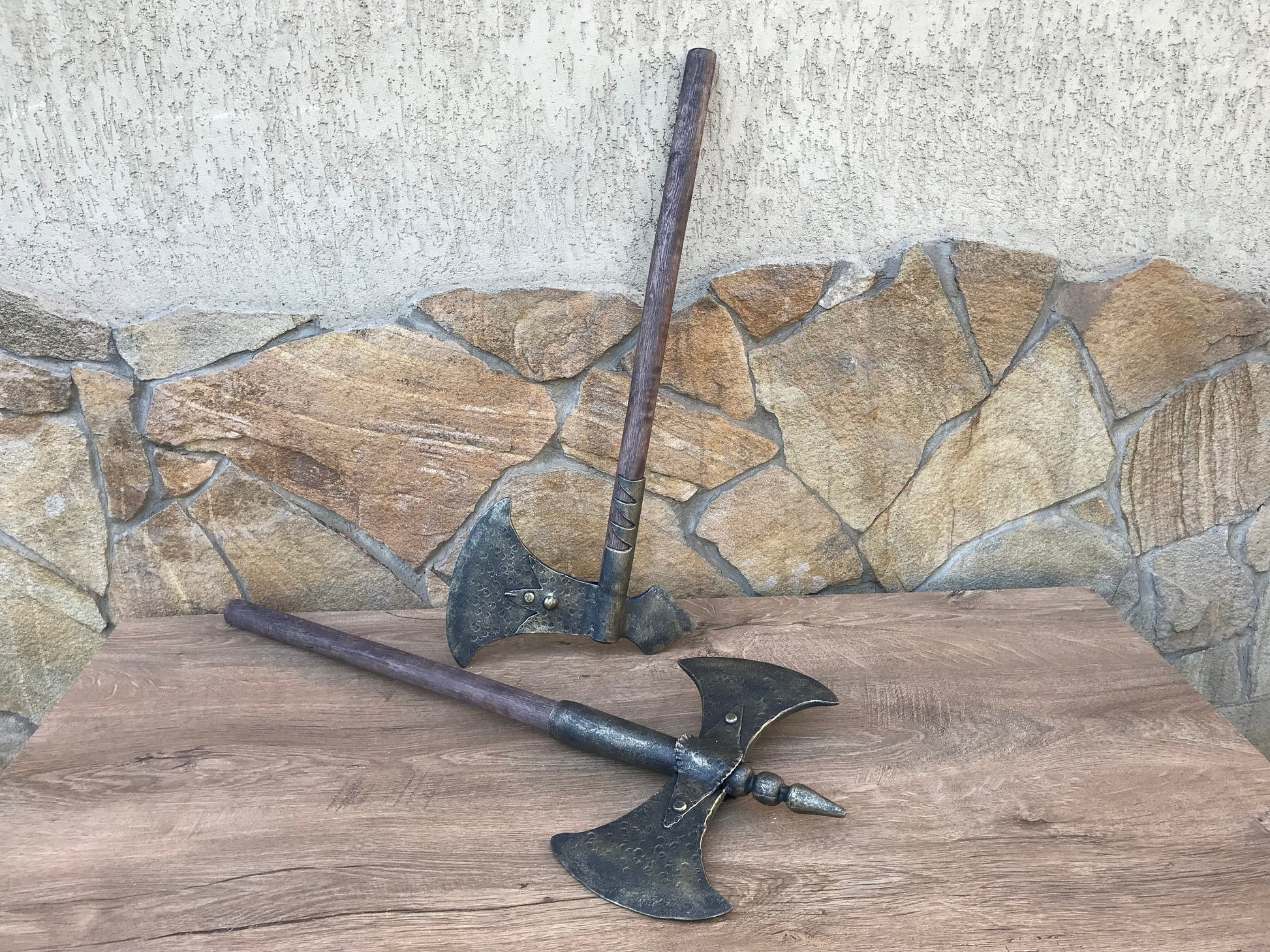 Here is a set of 2 hand forged medieval axes. A good addition to your medieval theme!