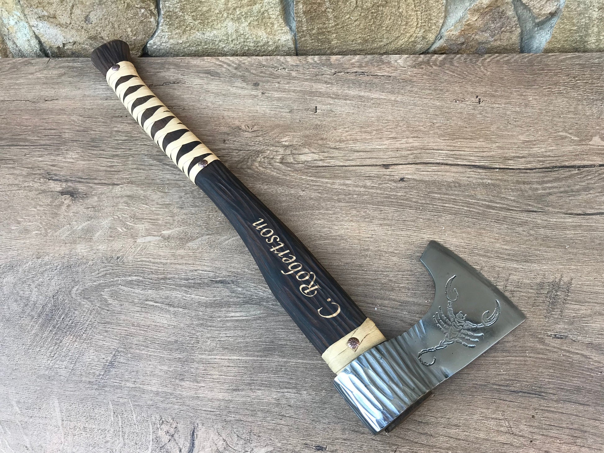 The price of the listing includes engraving of the handle (both normal letters and runic letters). Please specify how to engrave a handle in either "Personalization" line or in "Note to seller" line while paying/checking out. Also other any your preferred creatures can be etched on an axe head (like beetles, frogs, insects, birds, creature from video games etc...) but it will cost additional 20 Euro - please ask me for a custom listing if you want other creature to be etched on an axe head.